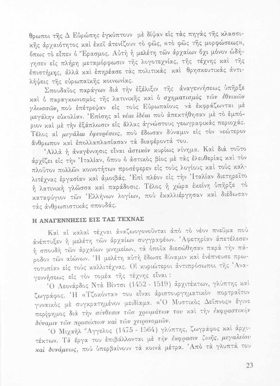 Σχολικό εγχειρίδιο Ιστορίας Γ΄ Γυμνασίου που καλύπτει την περίοδο της Αναγέννησης και του Διαφωτισμού στην Ευρώπη και την προετοιμασία της Ελληνικής Επανάστασης. Συνοπτικά αναφέρεται στο διάστημα από τη βασίλεια του 'Όθωνα ως τους δύο Παγκόσμιους Πολέμους και τον Ψυχρό Πόλεμο. Παρουσιάζει και την πνευματική κίνηση κατά τον 19ο και 20ο αιώνα.