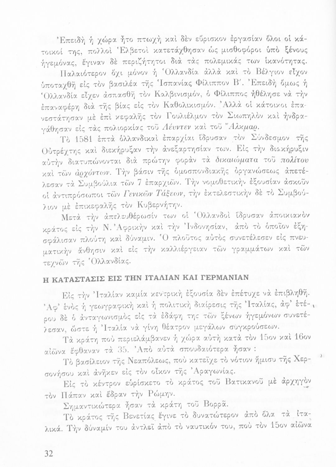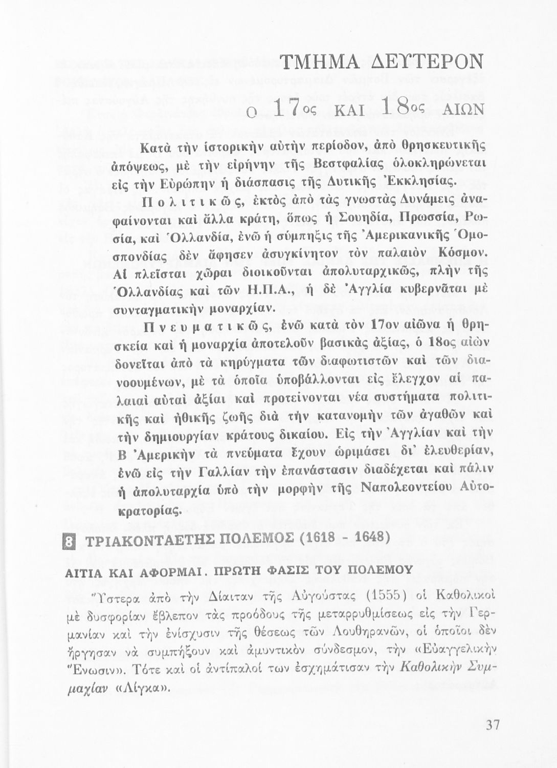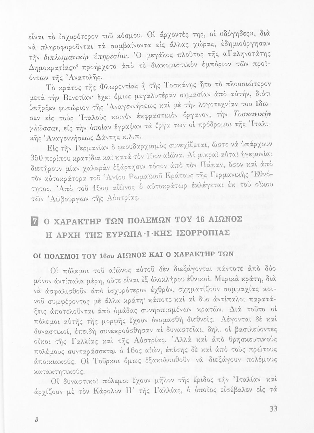 520 ## _aΣχολικό εγχειρίδιο Ιστορίας Γ΄ Γυμνασίου που καλύπτει την περίοδο της Αναγέννησης και του Διαφωτισμού στην Ευρώπη και την προετοιμασία της Ελληνικής Επανάστασης. Συνοπτικά αναφέρεται στο διάστημα από τη βασίλεια του 'Όθωνα ως τους δύο Παγκόσμιους Πολέμους και τον Ψυχρό Πόλεμο. Παρουσιάζει και την πνευματική κίνηση κατά τον 19ο και 20ο αιώνα.