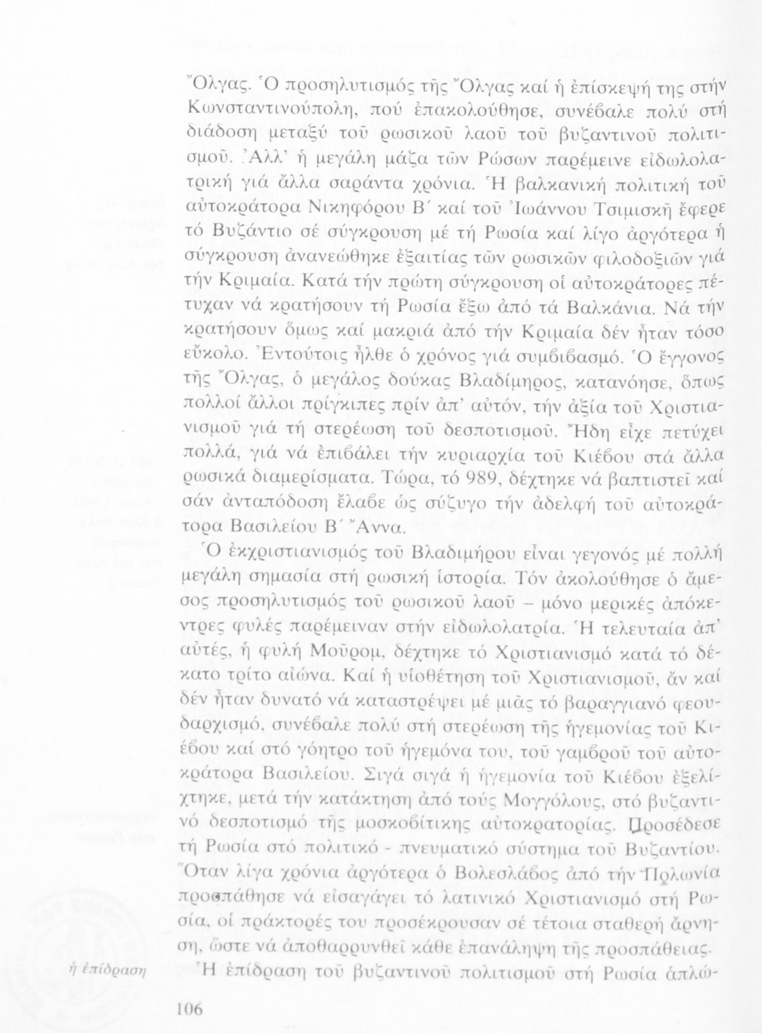 Σχολικό εγχειρίδιο Ιστορίας Λυκείου που εστιάζει στην περίοδο της Βυζαντινής Αυτοκρατορίας και πραγματεύεται τη διοίκηση, τη θρησκεία, το στρατό, την οικονομική ζωή, την εκπαίδευση και την πνευματική κίνηση.