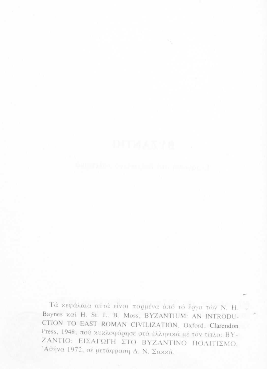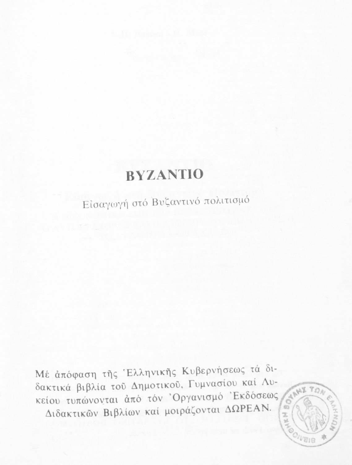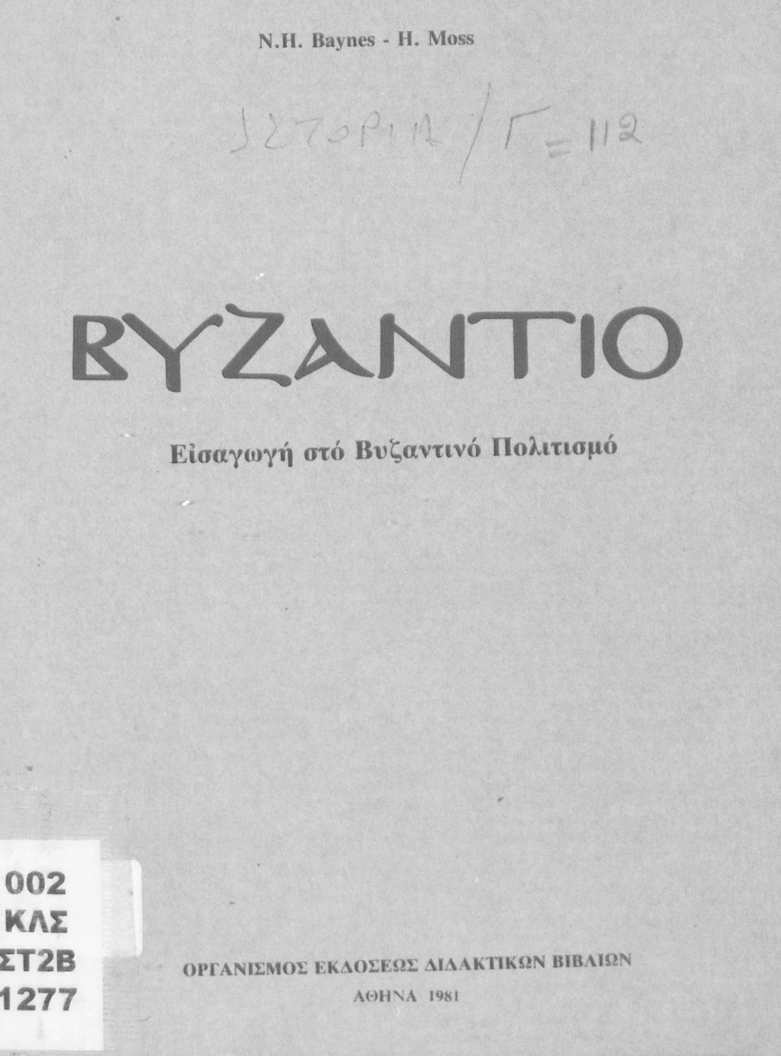 Κωδικός αναγνώρισης: 03-20557369 Τίτλος: Βυζάντιο, εισαγωγή στο Βυζαντινό πολιτισμό Συγγραφέας: N. H Baynes, H. Moss, Δ. Ν. Σακκάς (μετάφραση) Μέγεθος και υπόστρωμα: Σχολικό εγχειρίδιο, μαλακό εξώφυλλο, 126 σελίδες. |
