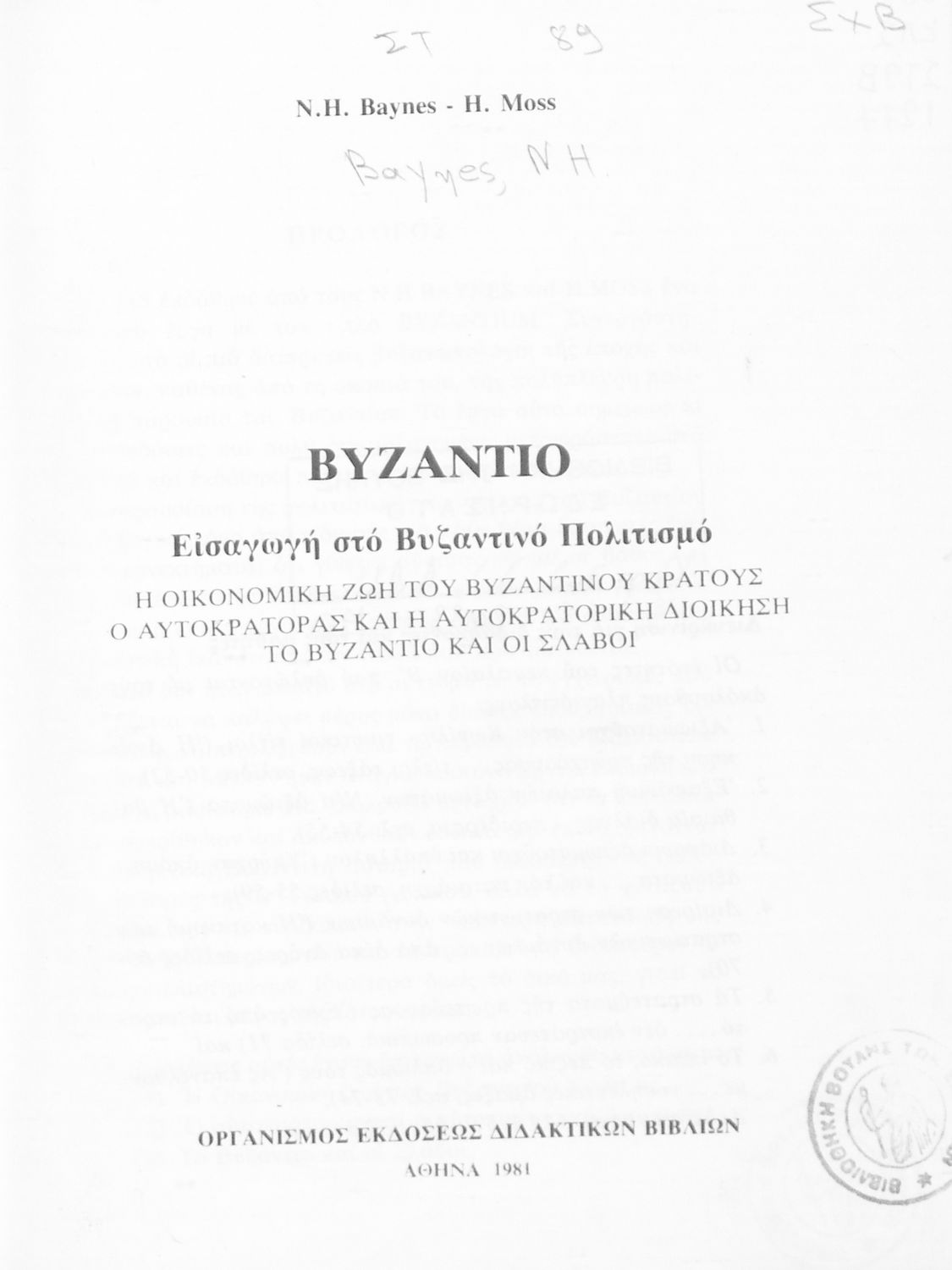 LDR 01157 2200205 4500 035 ## _a03-20557369 040 ## _aΒιβλιοθήκη της Βουλής των Ελλήνων 041 ## _ael 100 ## _aN. H Baynes _aH. Moss _aΔ. Ν. Σακκάς (μετάφραση) 110 ## _a20557369 245 0# _aΒυζάντιο, εισαγωγή στο Βυζαντινό πολιτισμό 250 ## _a3η Έκδοση 260 ## _aΑθήνα _bΟργανισμός Εκδόσεως Διδακτικών Βιβλίων _c1981 300 ## _a126 520 ## _aΣχολικό εγχειρίδιο Ιστορίας Λυκείου που εστιάζει στην περίοδο της Βυζαντινής Αυτοκρατορίας και πραγματεύεται τη διοίκηση, τη θρησκεία, το στρατό, την οικονομική ζωή, την εκπαίδευση και την πνευματική κίνηση. 522 ## _aΕλλάδα 546 ## _aΔημοτική 563 ## _aΜαλακό Εξώφυλλο 583 ## _a219610/6-4-1981 _c1981 650 #4 _aΔιοίκηση _aΕμπόριο _aΘρησκεία _aΠαλαιολόγοι