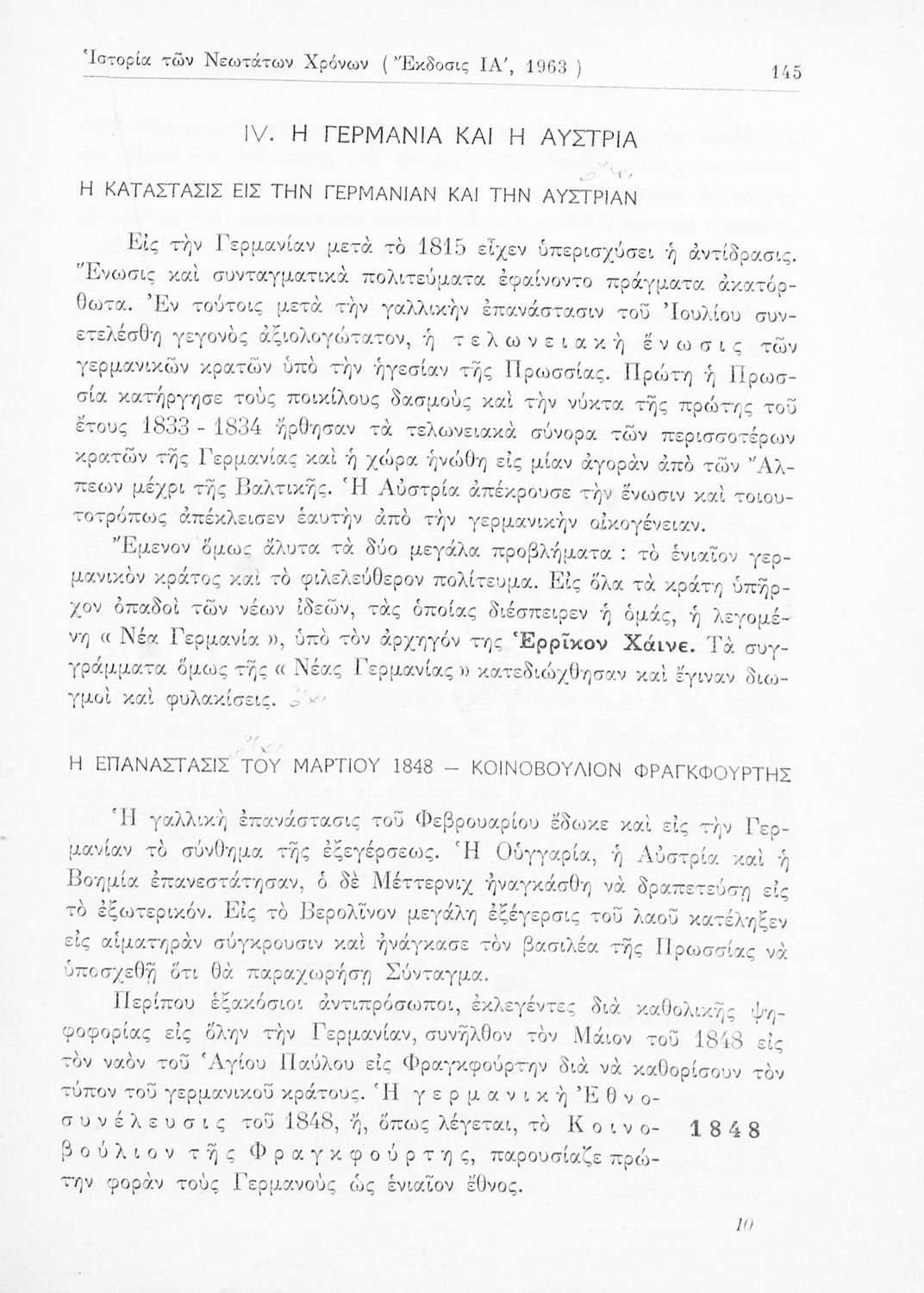 Ιστορία των Νεωτάτων Χρόνων. Από της Συνθήκης της Βιέννης (1815) μέχρι των ημερών μας. ΣΤ΄ Γυμνασίου