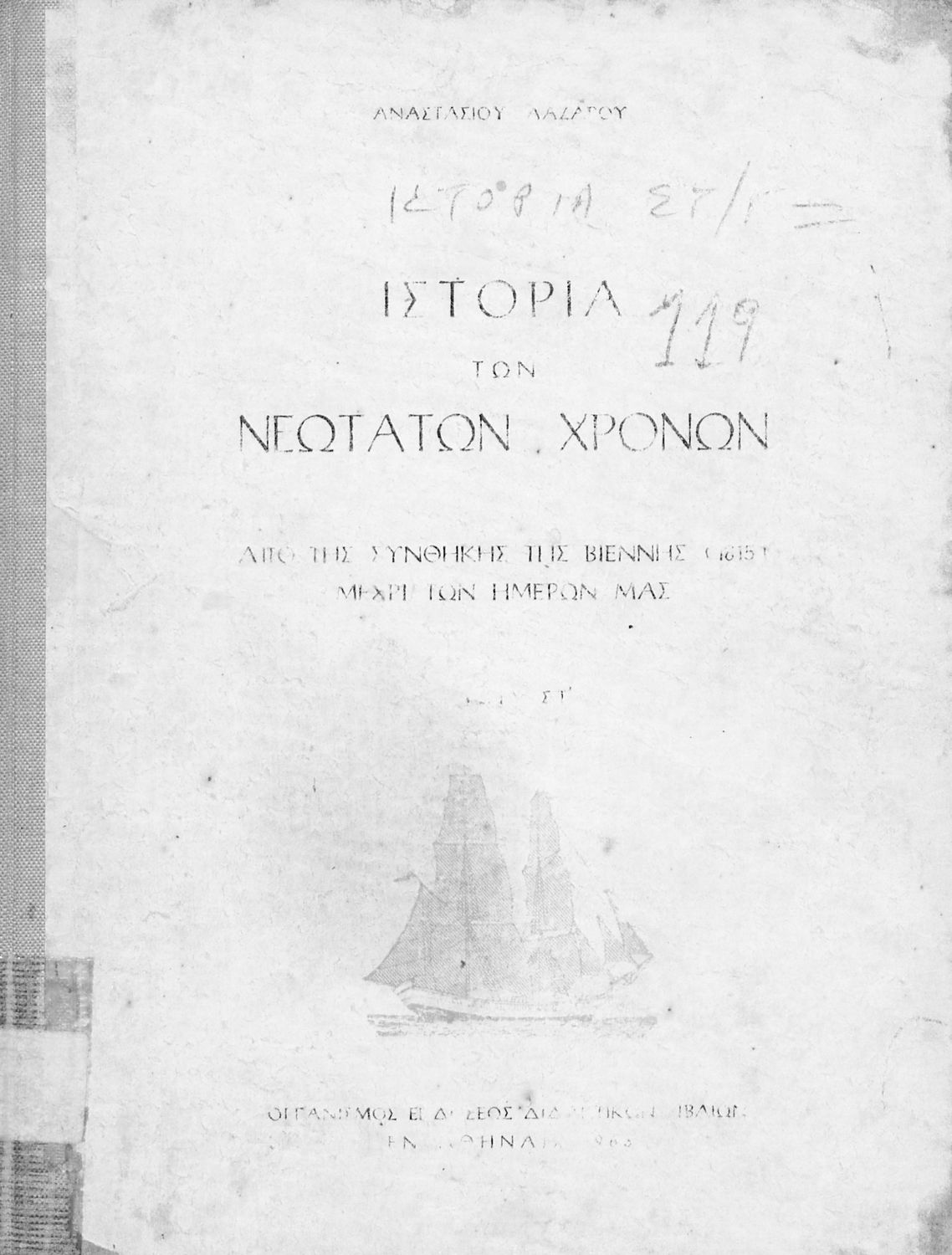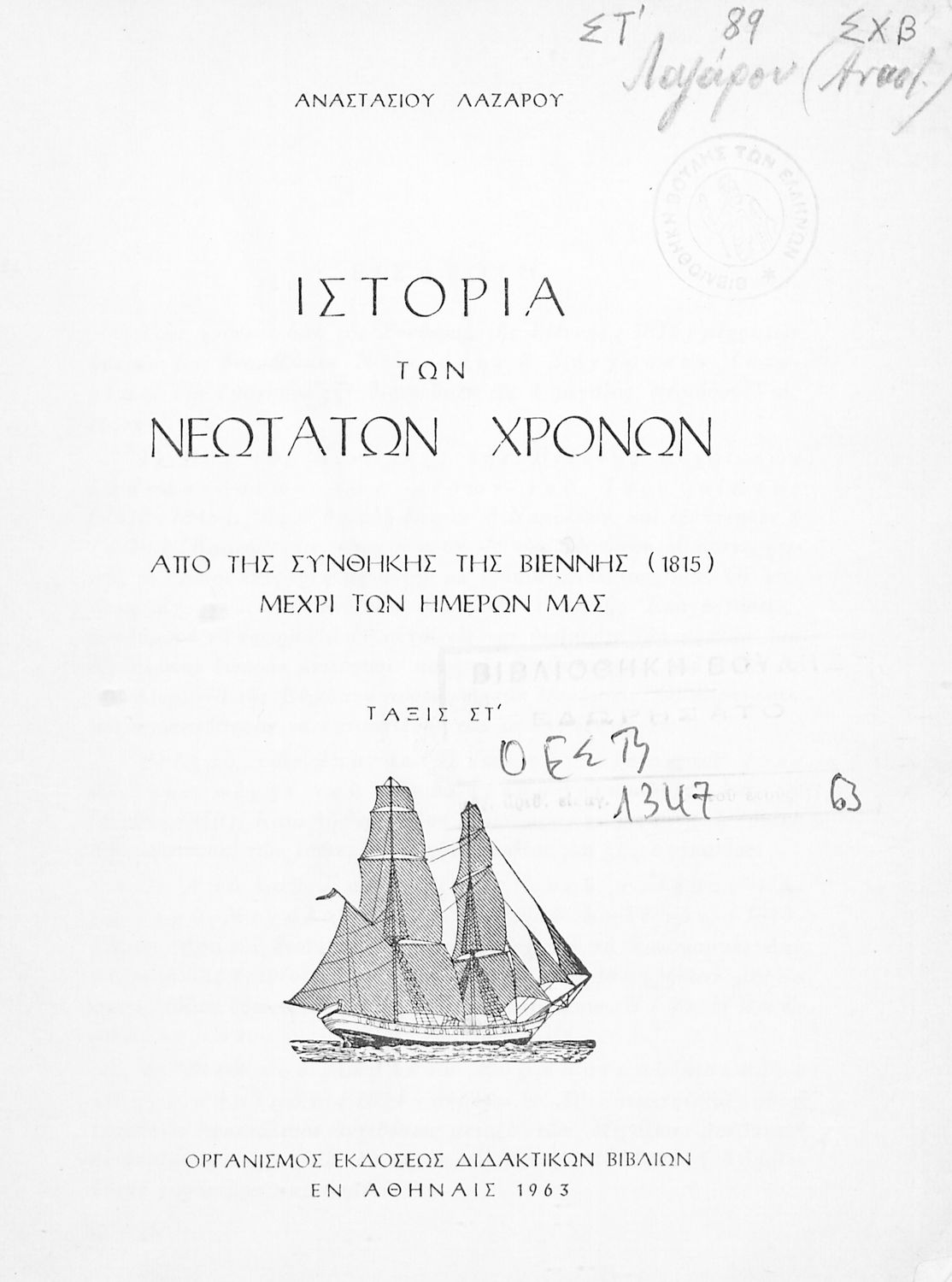 Τίτλος: Ιστορία των Νεωτάτων Χρόνων. Από της Συνθήκης της Βιέννης (1815) μέχρι των ημερών μας. ΣΤ΄ Γυμνασίου
