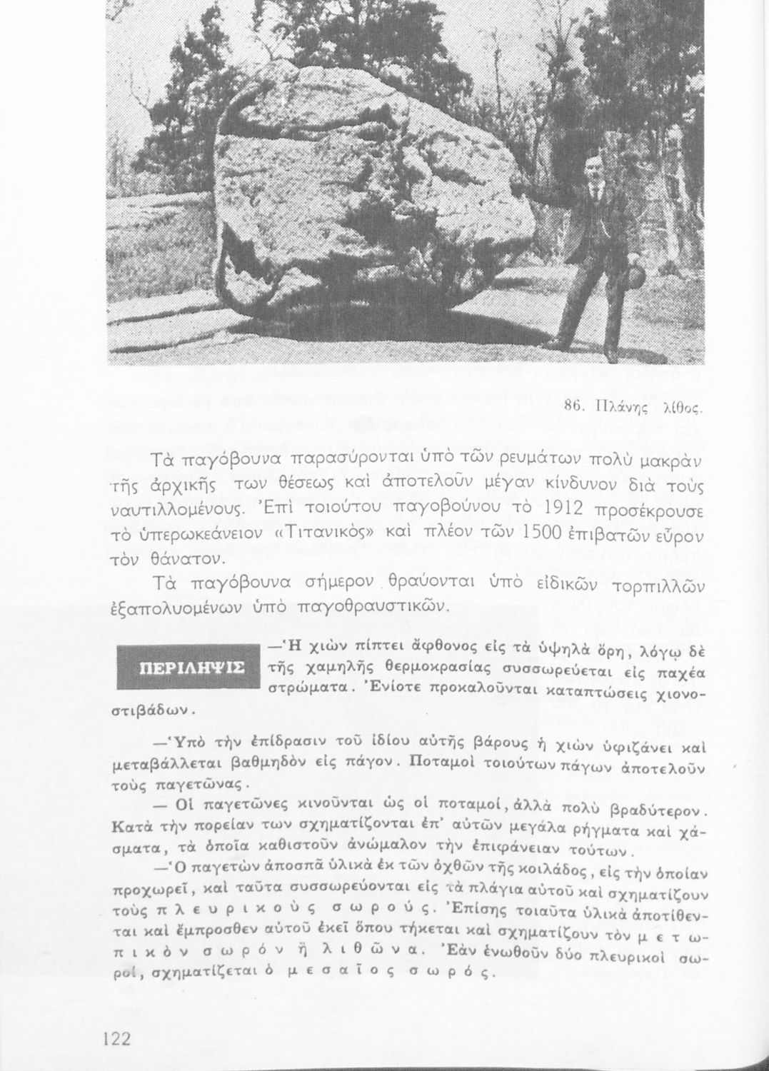 Σχολικό εγχειρίδιο της Δ΄ Γυμνασίου για το μάθημα της Γεωλογίας. Αναφέρεται στα πετρώματα, απολιθώματα, τους γεωλογικούς αιώνες. Στην Ορυκτολογία αναφέρει τα αυτοφυή στοιχεία, τις ορυκτές ενώσεις, τα άλατα, και τις ορυκτές οργανικές ενώσεις.