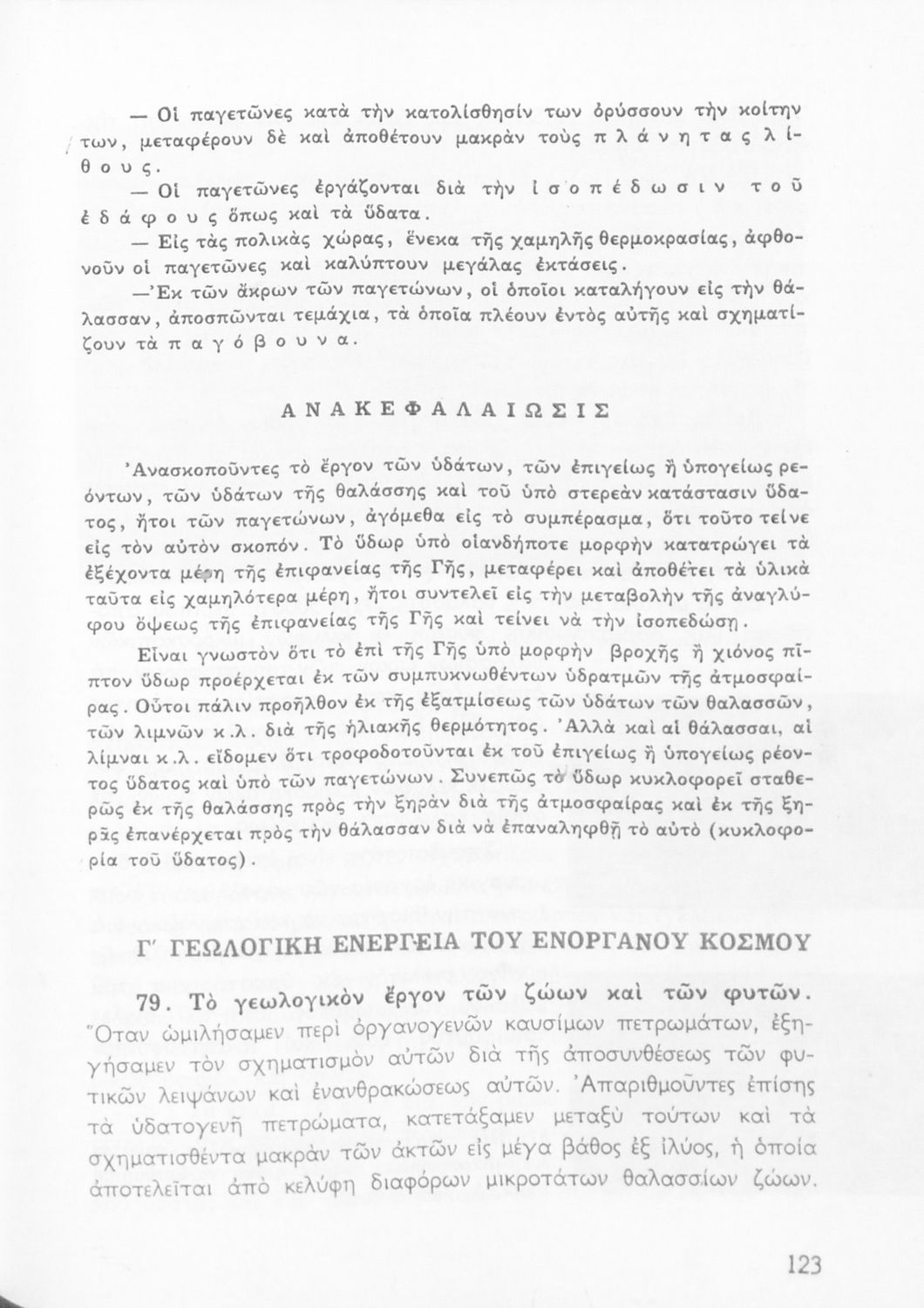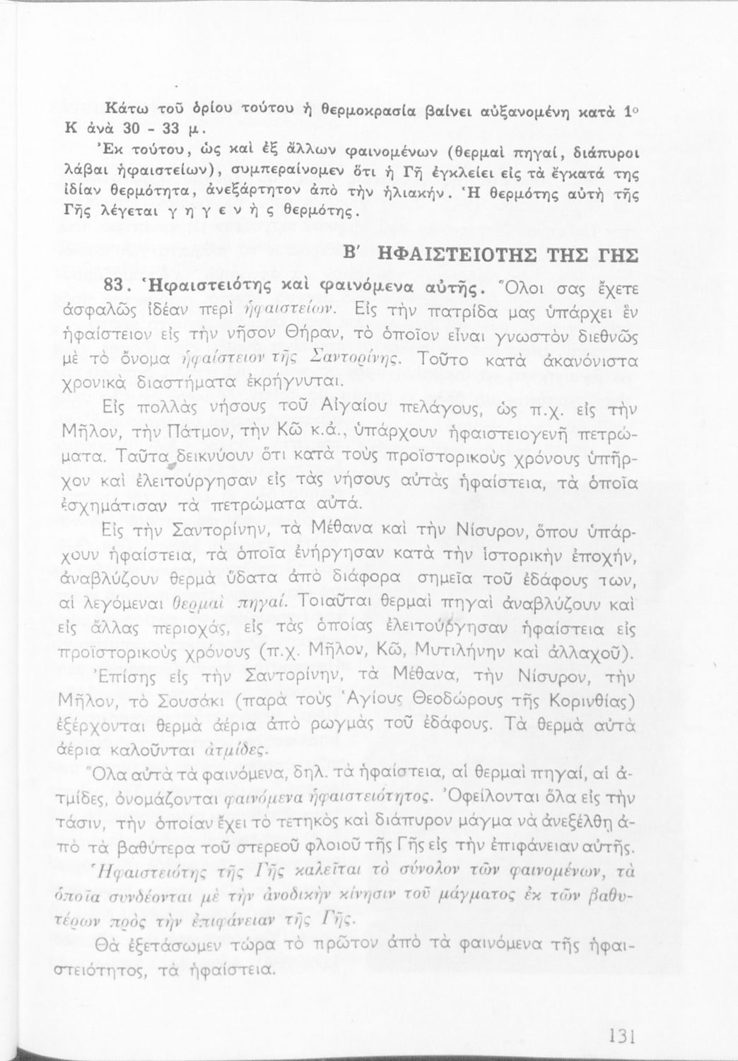 Σχολικό εγχειρίδιο της Δ΄ Γυμνασίου για το μάθημα της Γεωλογίας. Αναφέρεται στα πετρώματα, απολιθώματα, τους γεωλογικούς αιώνες. Στην Ορυκτολογία αναφέρει τα αυτοφυή στοιχεία, τις ορυκτές ενώσεις, τα άλατα, και τις ορυκτές οργανικές ενώσεις.