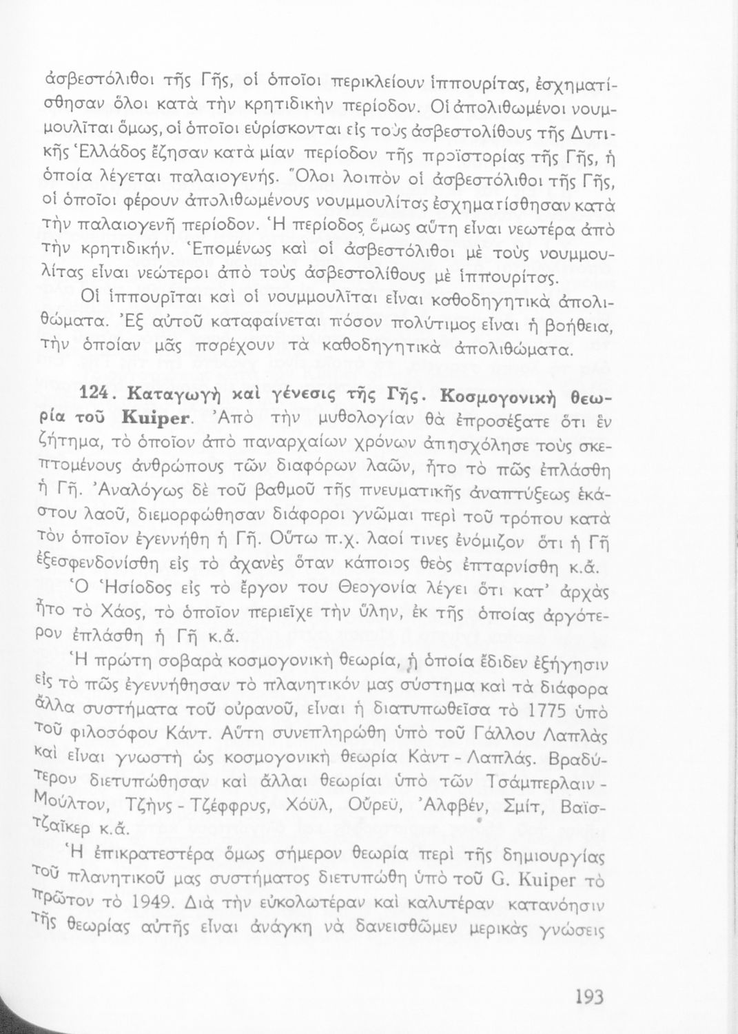 Βιβλίο Γεωλογίας/Ορυκτολογίας για την Δ΄ τάξη των Εξαταξίων Γυμνασίων που παρουσιάζει τα ορυκτά με βάση την κλάση στην οποία ανήκουν. Το τμήμα της γεωλογίας εστιάζει στους γεωλογικούς αιώνες, Ο συγγραφέας ήταν