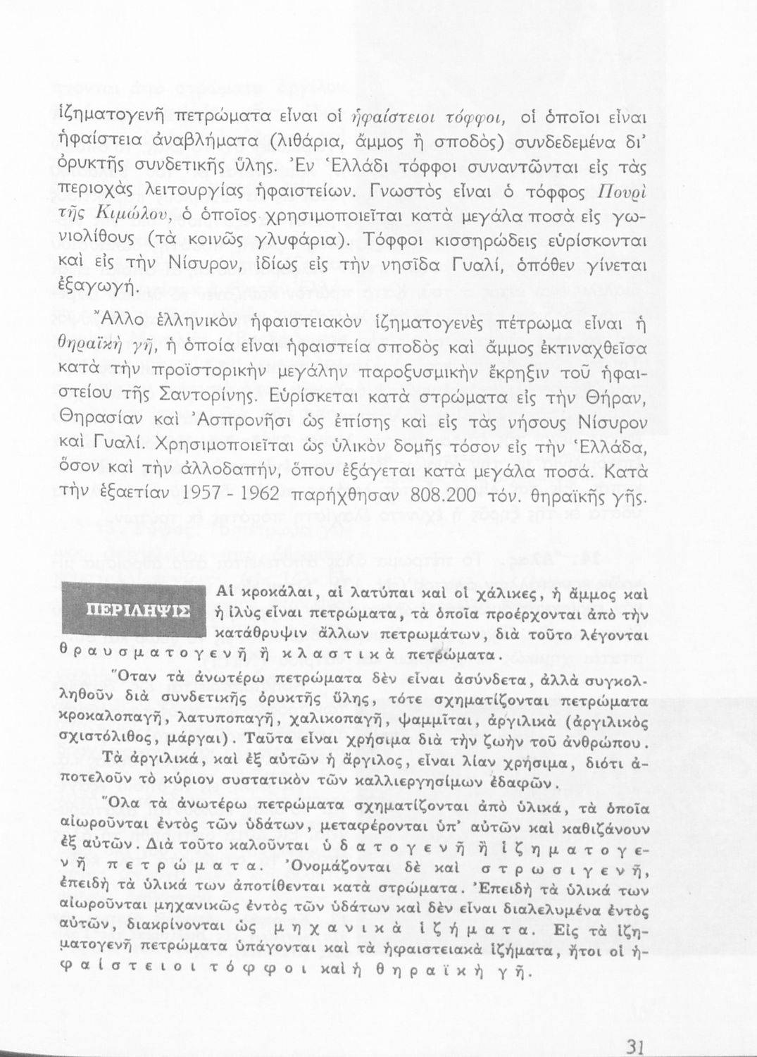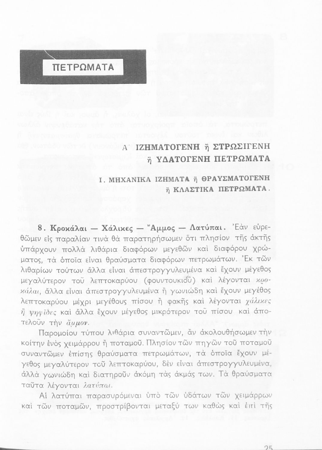 Βιβλίο Γεωλογίας/Ορυκτολογίας για την Δ΄ τάξη των Εξαταξίων Γυμνασίων που παρουσιάζει τα ορυκτά με βάση την κλάση στην οποία ανήκουν. Το τμήμα της γεωλογίας εστιάζει στους γεωλογικούς αιώνες, Ο συγγραφέας ήταν