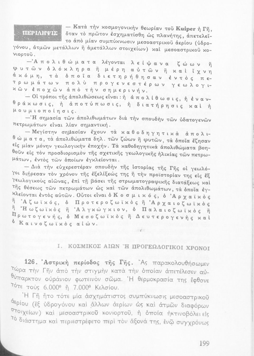 Σχολικό εγχειρίδιο της Δ΄ Γυμνασίου για το μάθημα της Γεωλογίας. Αναφέρεται στα πετρώματα, απολιθώματα, τους γεωλογικούς αιώνες. Στην Ορυκτολογία αναφέρει τα αυτοφυή στοιχεία, τις ορυκτές ενώσεις, τα άλατα, και τις ορυκτές οργανικές ενώσεις.