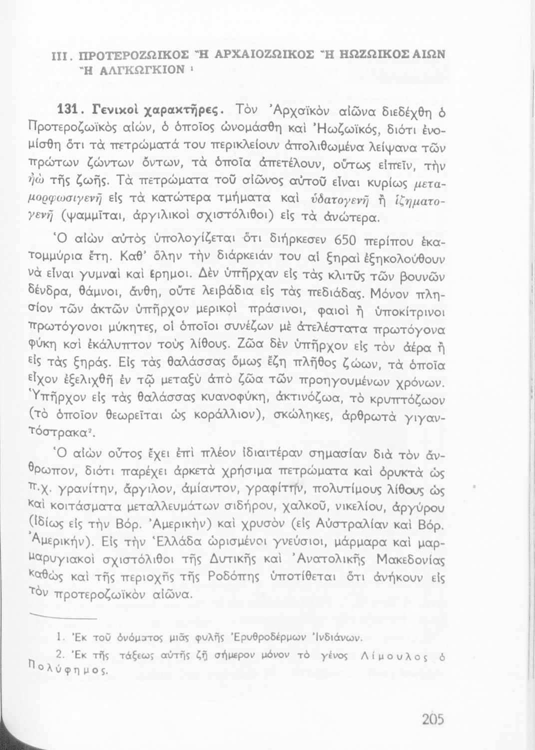 Βαθμίδα εκπαίδευσης: Δευτεροβάθμια Τάξη: Δ' Γυμνασίου Μάθημα: Γεωλογία Γλώσσα: Απλή καθαρεύουσα Παρουσίαση περιεχομένου: Σχολικό εγχειρίδιο της Δ΄ Γυμνασίου για το μάθημα της Γεωλογίας. Αναφέρεται στα πετρώματα, απολιθώματα, τους γεωλογικούς αιώνες. Στην Ορυκτολογία αναφέρει τα αυτοφυή στοιχεία, τις ορυκτές ενώσεις, τα άλατα, και τις ορυκτές οργανικές ενώσεις. |