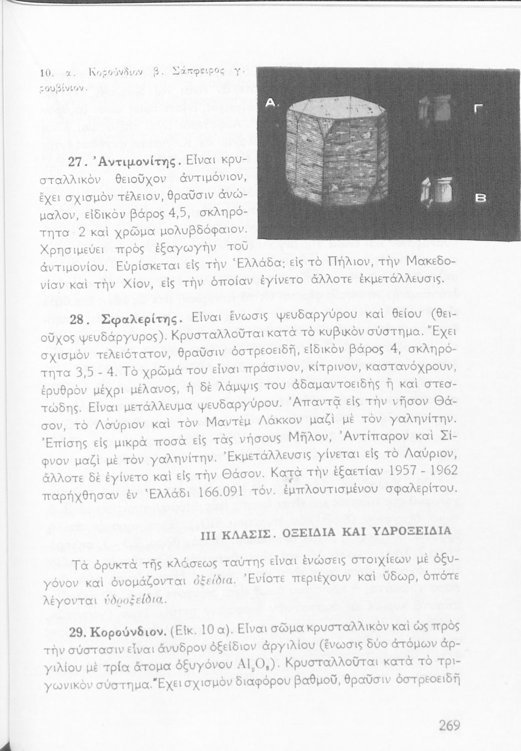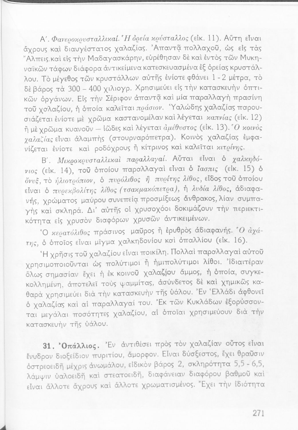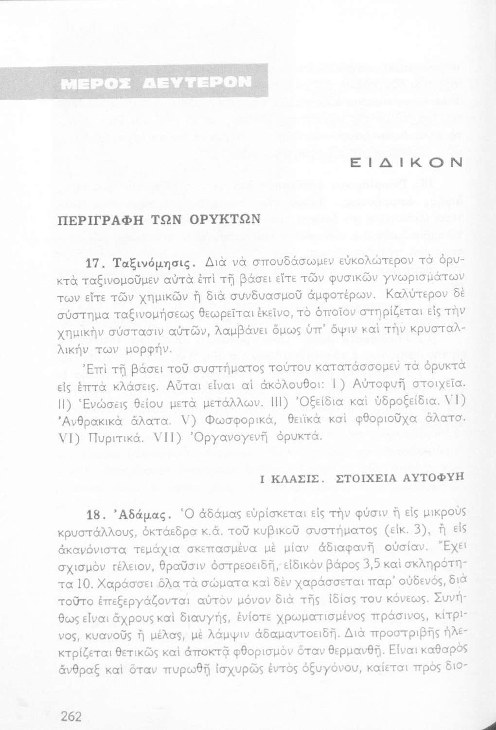 Βιβλίο Γεωλογίας/Ορυκτολογίας για την Δ΄ τάξη των Εξαταξίων Γυμνασίων που παρουσιάζει τα ορυκτά με βάση την κλάση στην οποία ανήκουν. Το τμήμα της γεωλογίας εστιάζει στους γεωλογικούς αιώνες, Ο συγγραφέας ήταν