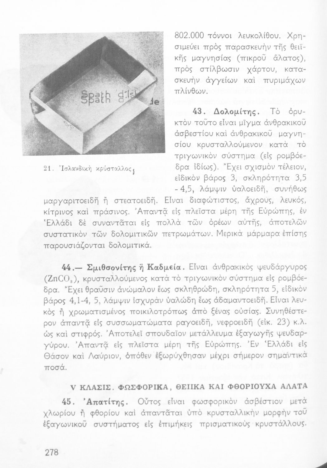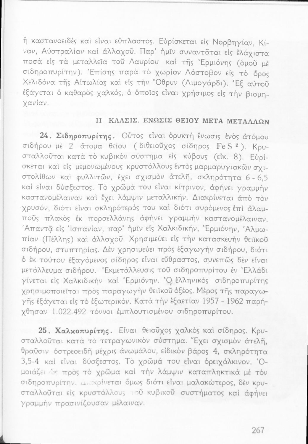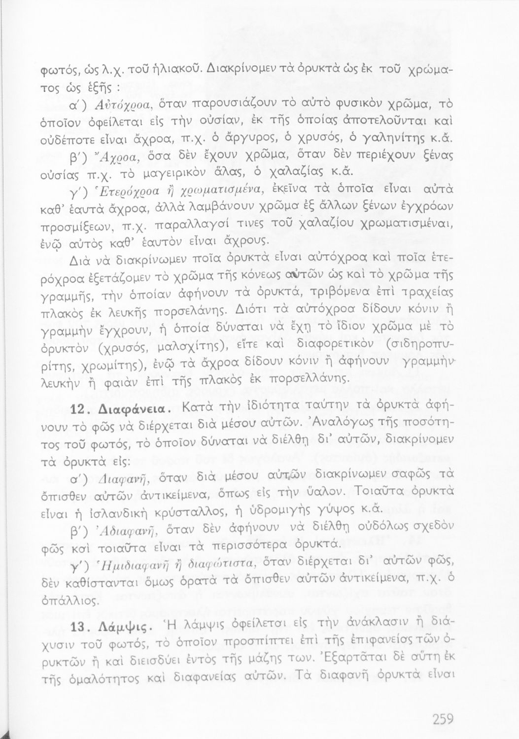 Βιβλίο Γεωλογίας/Ορυκτολογίας για την Δ΄ τάξη των Εξαταξίων Γυμνασίων που παρουσιάζει τα ορυκτά με βάση την κλάση στην οποία ανήκουν. Το τμήμα της γεωλογίας εστιάζει στους γεωλογικούς αιώνες, Ο συγγραφέας ήταν