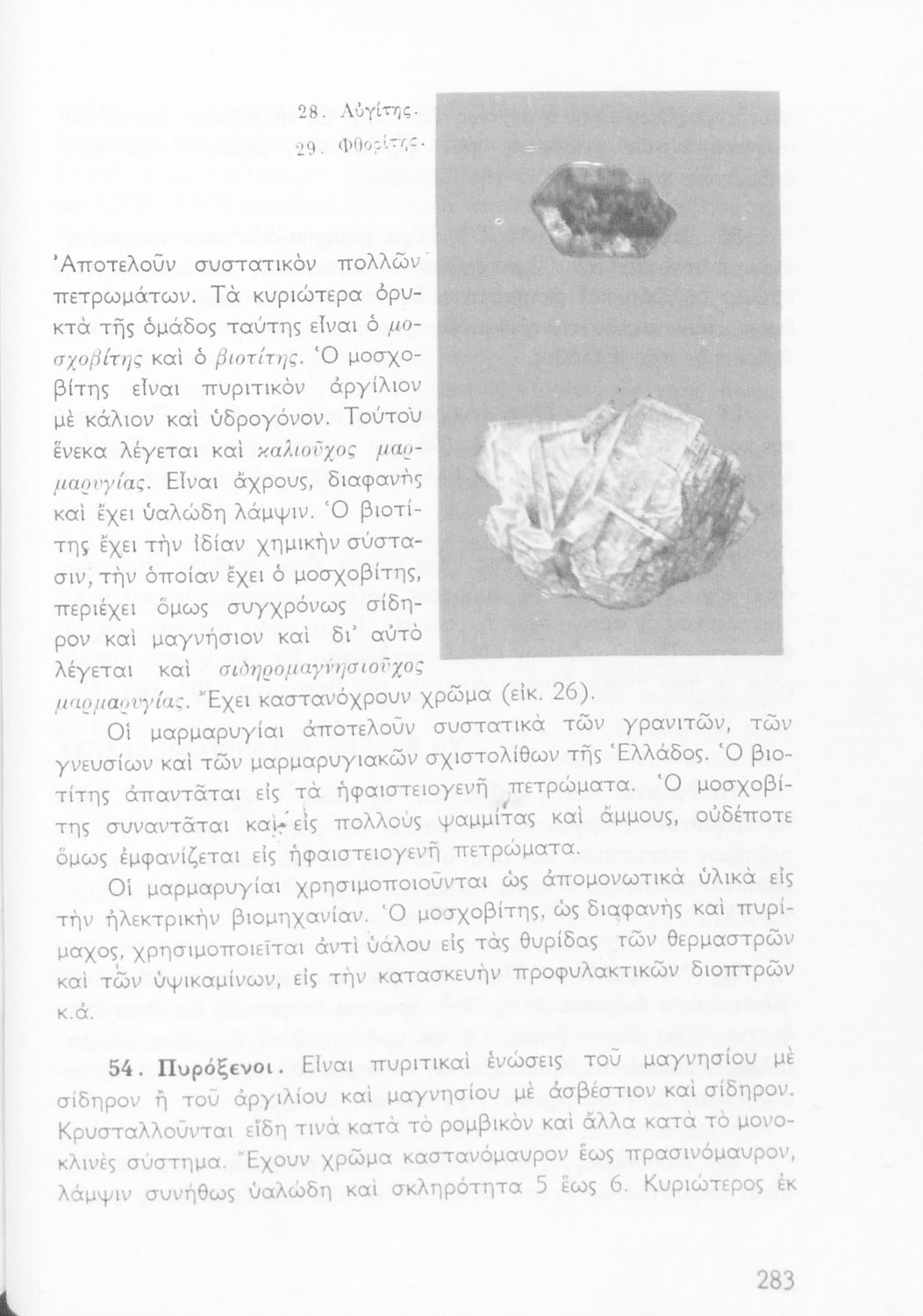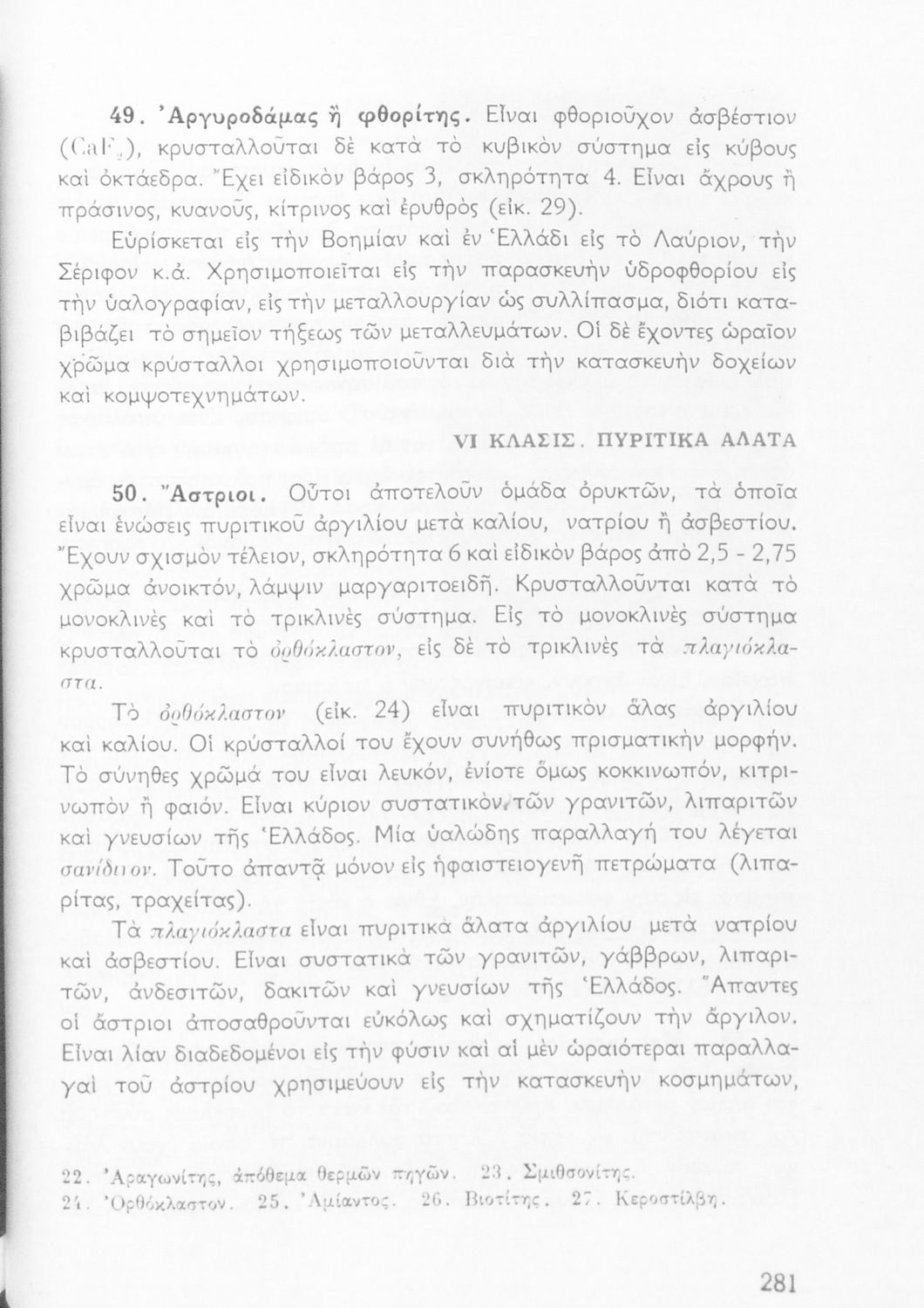 Βιβλίο Γεωλογίας/Ορυκτολογίας για την Δ΄ τάξη των Εξαταξίων Γυμνασίων που παρουσιάζει τα ορυκτά με βάση την κλάση στην οποία ανήκουν. Το τμήμα της γεωλογίας εστιάζει στους γεωλογικούς αιώνες, Ο συγγραφέας ήταν