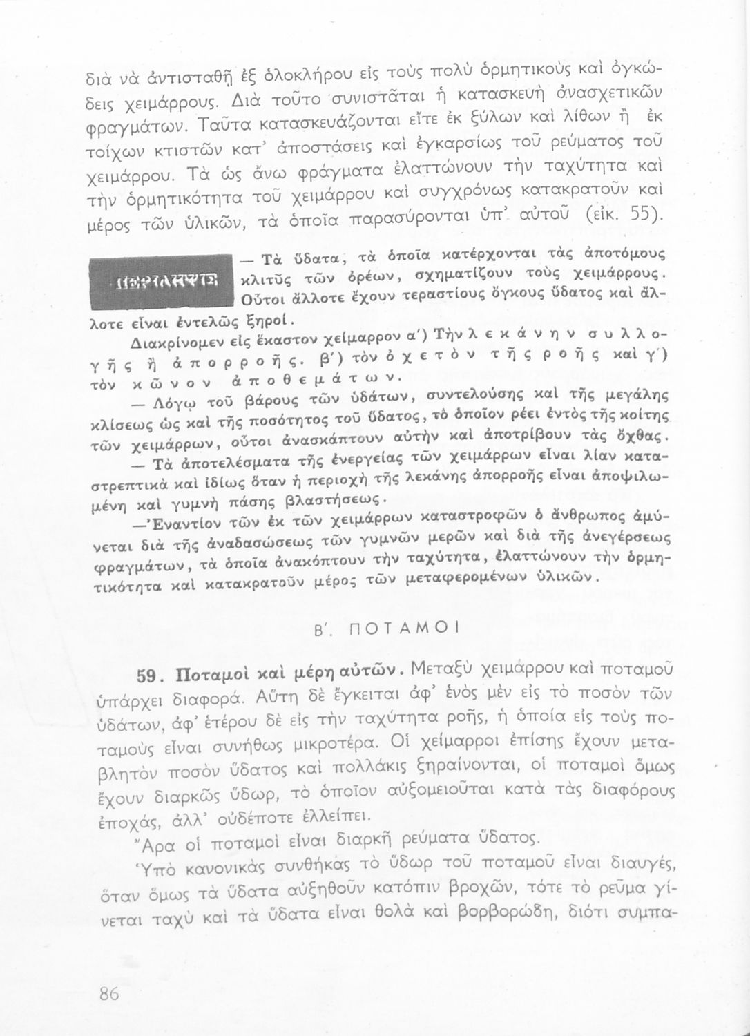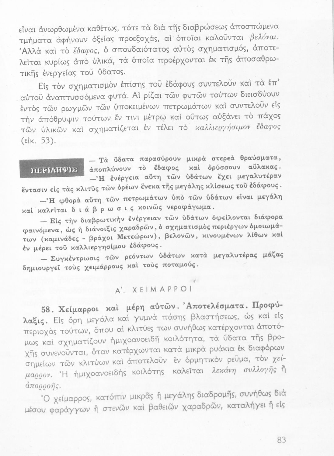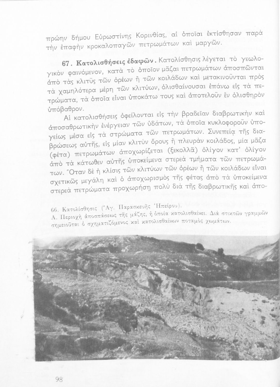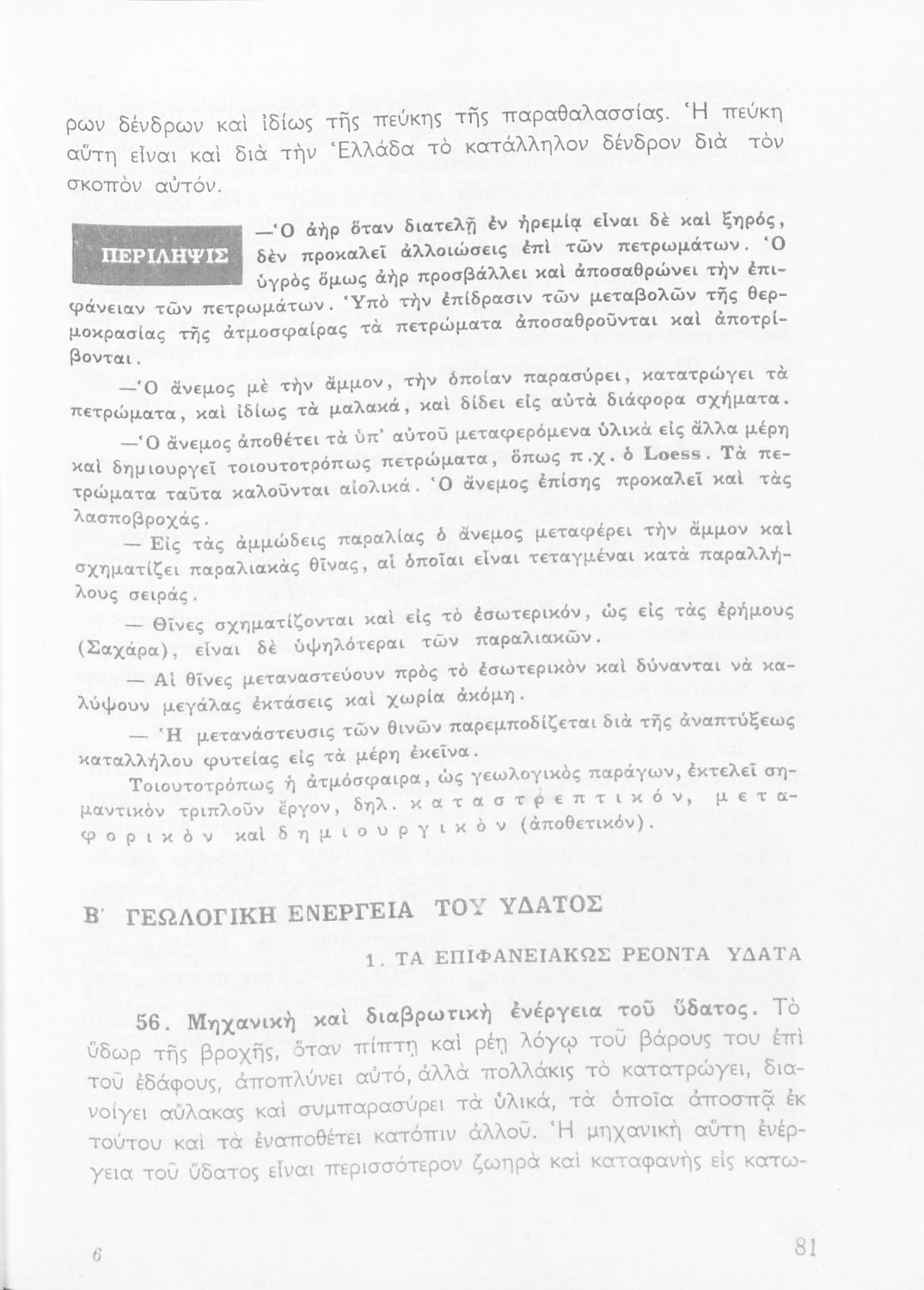 Σχολικό εγχειρίδιο της Δ΄ Γυμνασίου για το μάθημα της Γεωλογίας. Αναφέρεται στα πετρώματα, απολιθώματα, τους γεωλογικούς αιώνες. Στην Ορυκτολογία αναφέρει τα αυτοφυή στοιχεία, τις ορυκτές ενώσεις, τα άλατα, και τις ορυκτές οργανικές ενώσεις.