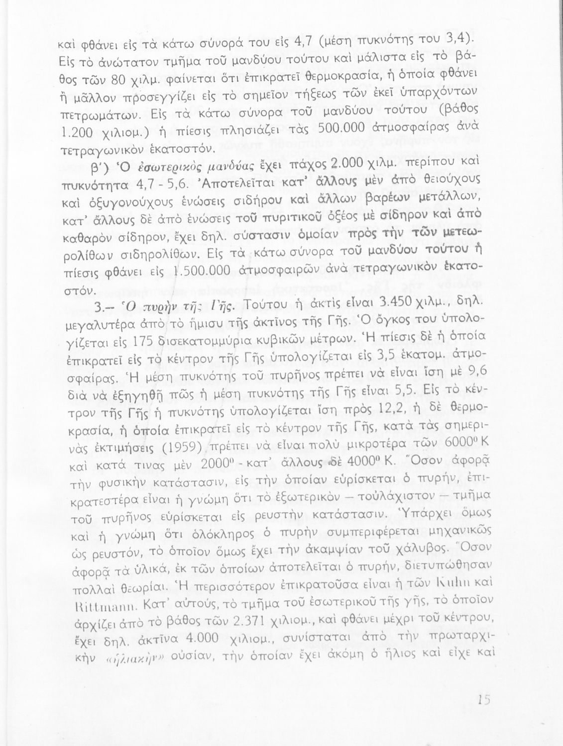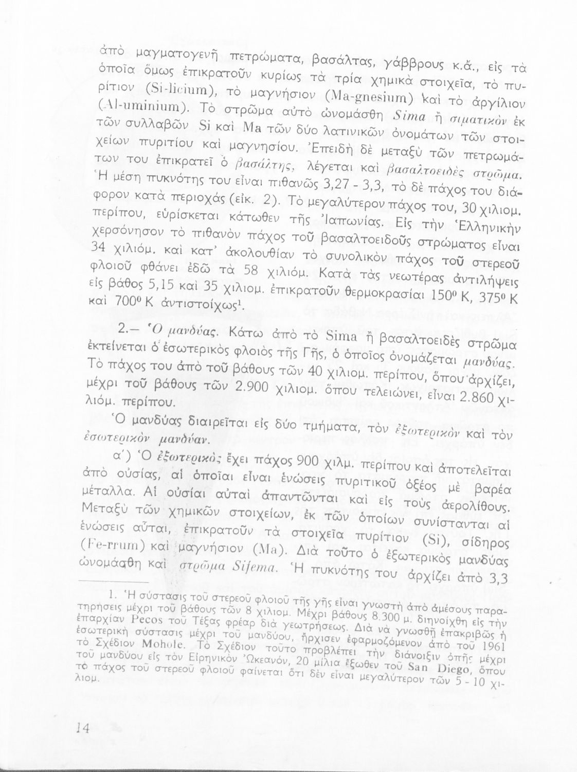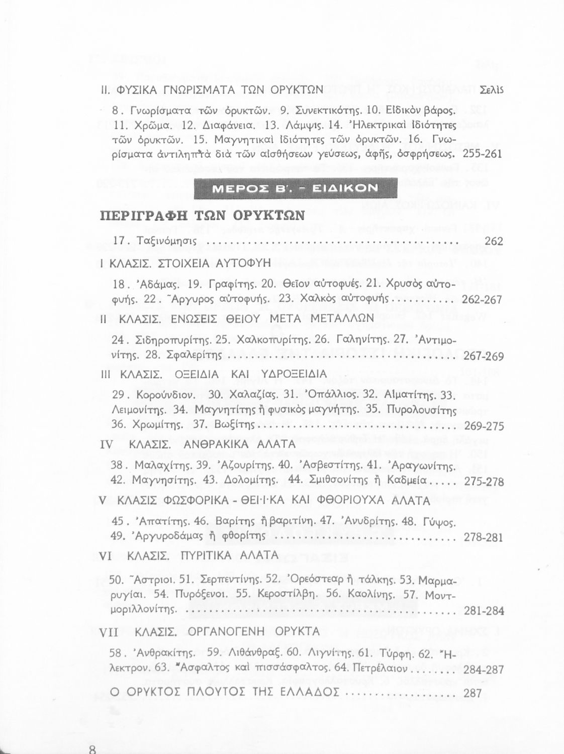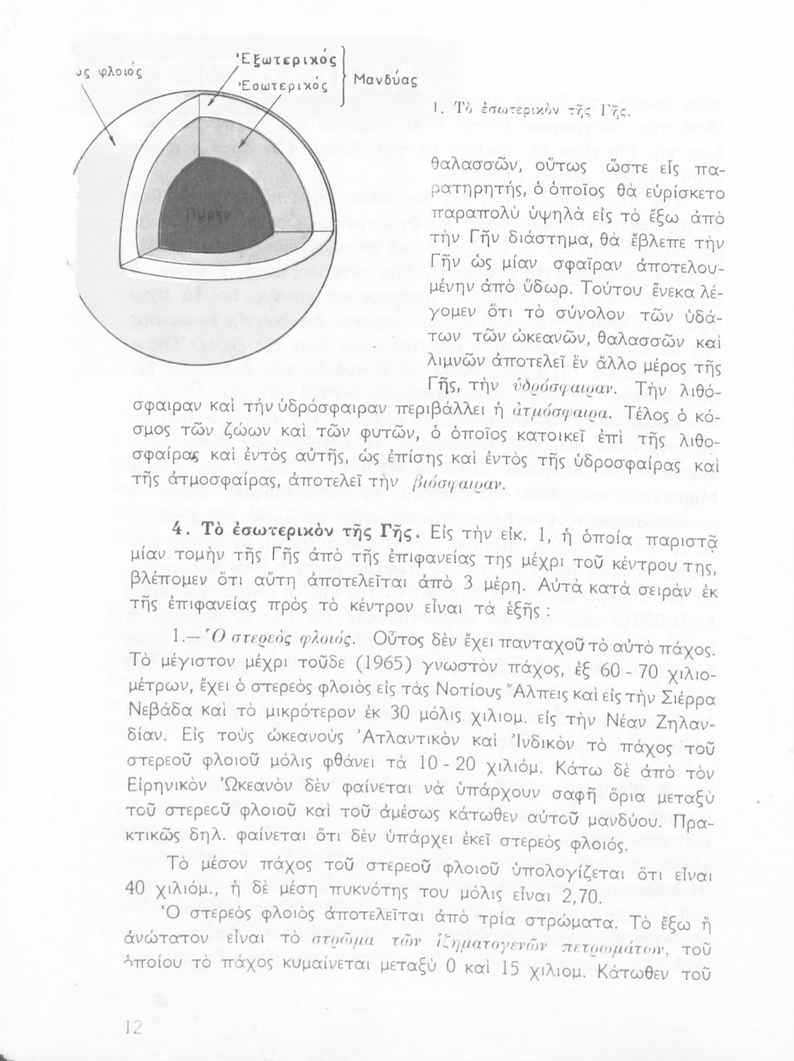 Σχολικό εγχειρίδιο της Δ΄ Γυμνασίου για το μάθημα της Γεωλογίας. Αναφέρεται στα πετρώματα, απολιθώματα, τους γεωλογικούς αιώνες. Στην Ορυκτολογία αναφέρει τα αυτοφυή στοιχεία, τις ορυκτές ενώσεις, τα άλατα, και τις ορυκτές οργανικές ενώσεις.
