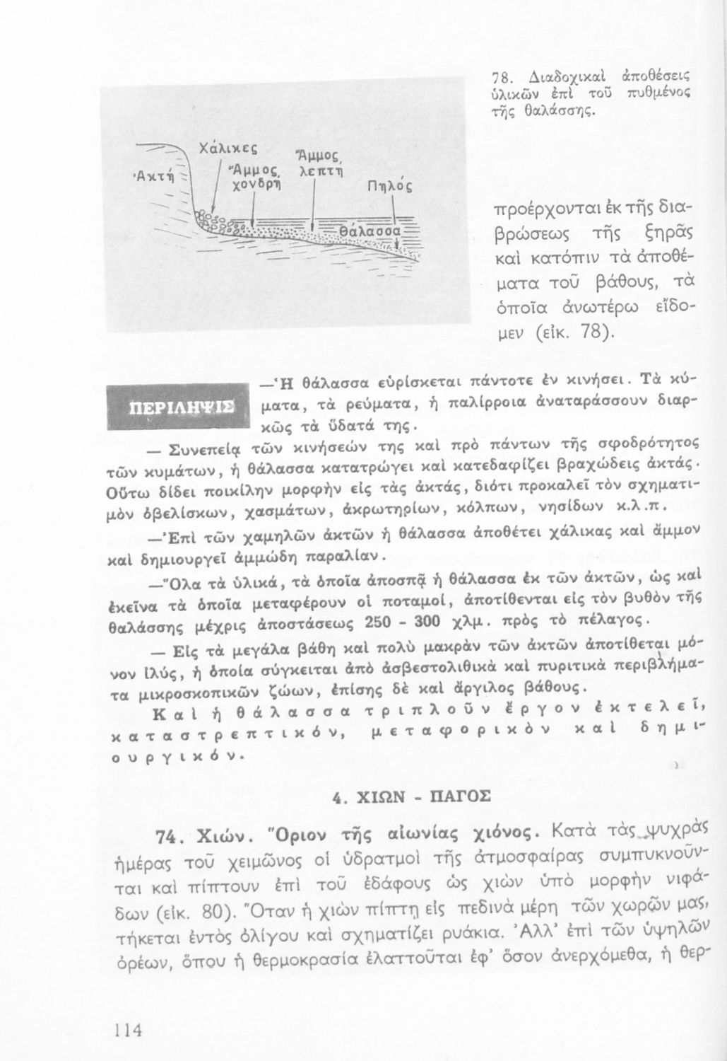 Βαθμίδα εκπαίδευσης: Δευτεροβάθμια Τάξη: Δ' Γυμνασίου Μάθημα: Γεωλογία Γλώσσα: Απλή καθαρεύουσα Παρουσίαση περιεχομένου: Σχολικό εγχειρίδιο Γεωλογίας της Δ΄ Γυμνασίου το οποίο εισάγει τους μαθητές στην επιστήμη της Γεωλογίας και της Ορυκτολογίας παρουσιάζοντας τα διάφορα ορυκτά και πετρώματα, αλλά κάνοντας και μια ιστορική επισκόπηση της γεωλογικής ιστορίας της Ελλάδας. Επίσης αναφέρεται σε ζητήματα γεωλογικής ενέργειας, όπως είναι η δραστηριότητα των ηφαιστείων. |