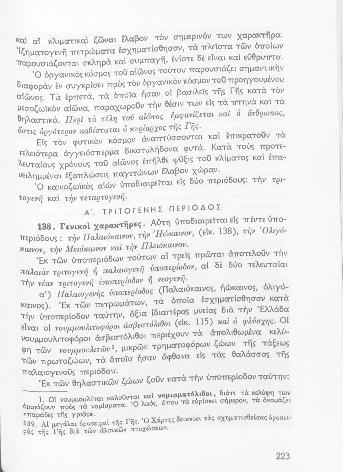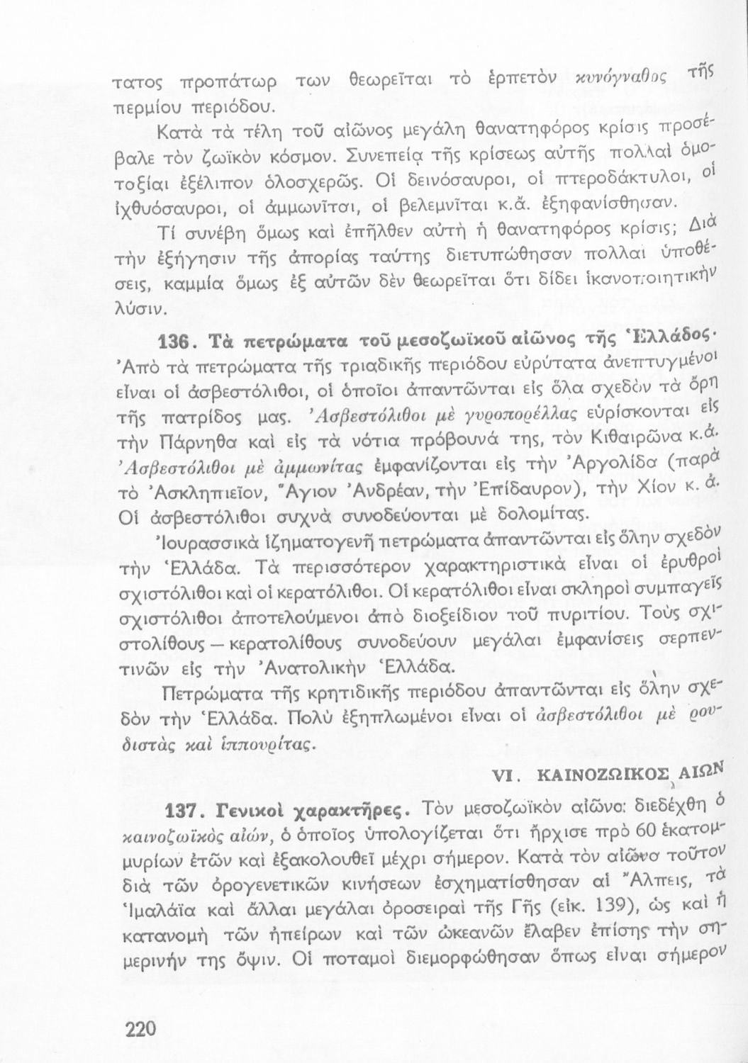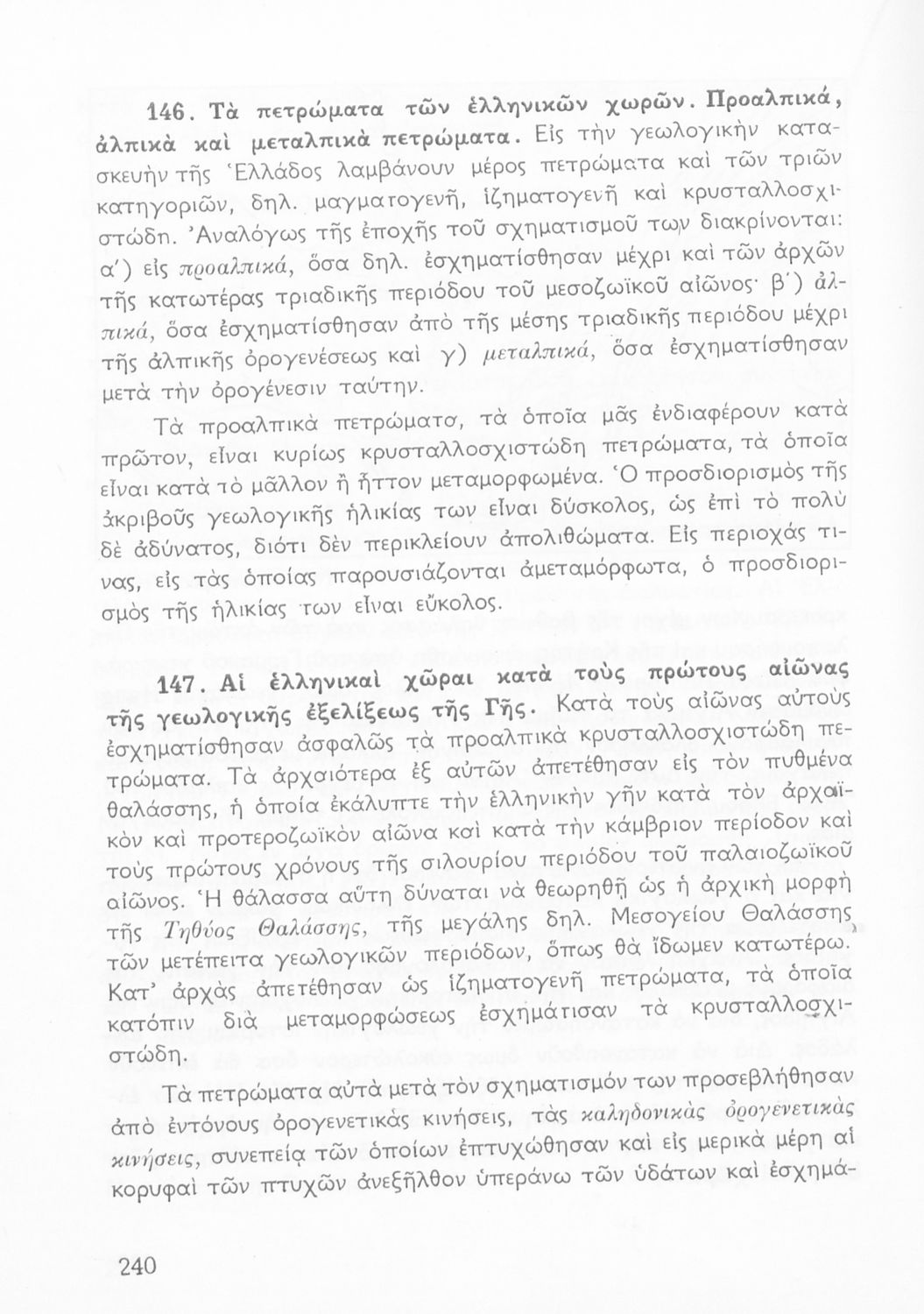 Βαθμίδα εκπαίδευσης: Δευτεροβάθμια Τάξη: Δ' Γυμνασίου Μάθημα: Γεωλογία Γλώσσα: Απλή καθαρεύουσα Παρουσίαση περιεχομένου: Σχολικό εγχειρίδιο Γεωλογίας της Δ΄ Γυμνασίου το οποίο εισάγει τους μαθητές στην επιστήμη της Γεωλογίας και της Ορυκτολογίας παρουσιάζοντας τα διάφορα ορυκτά και πετρώματα, αλλά κάνοντας και μια ιστορική επισκόπηση της γεωλογικής ιστορίας της Ελλάδας. Επίσης αναφέρεται σε ζητήματα γεωλογικής ενέργειας, όπως είναι η δραστηριότητα των ηφαιστείων. |