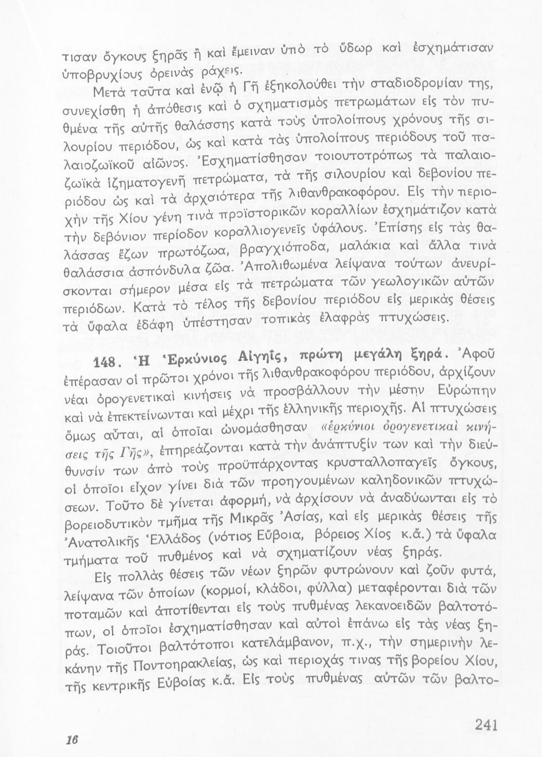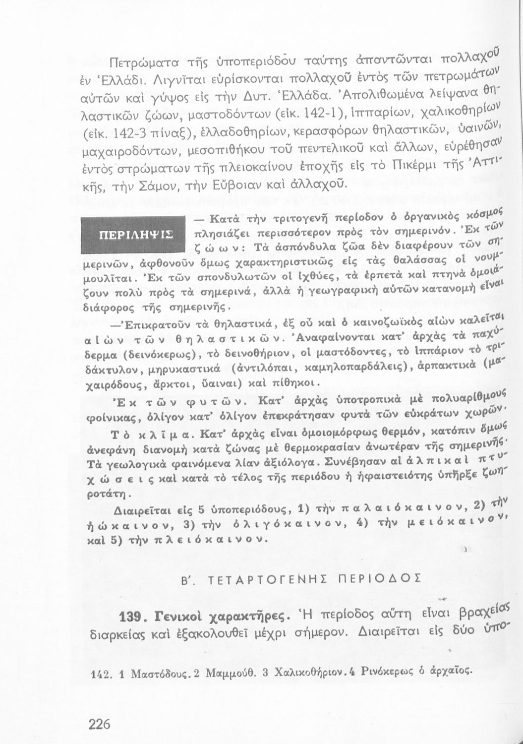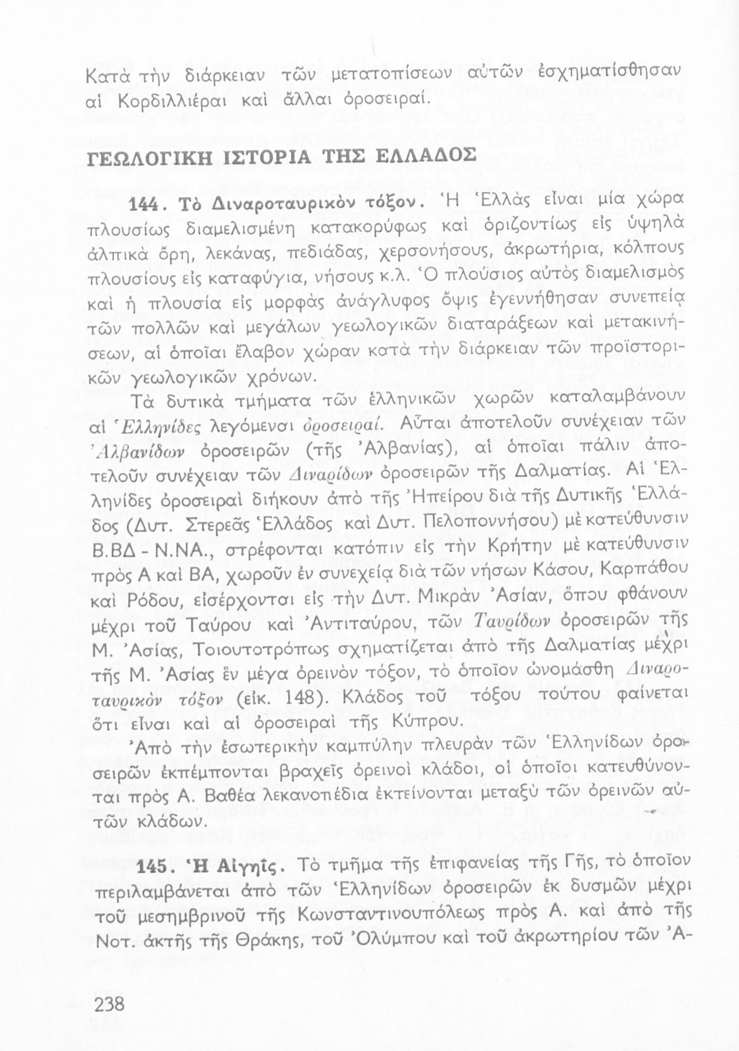 Βαθμίδα εκπαίδευσης: Δευτεροβάθμια Τάξη: Δ' Γυμνασίου Μάθημα: Γεωλογία Γλώσσα: Απλή καθαρεύουσα Παρουσίαση περιεχομένου: Σχολικό εγχειρίδιο Γεωλογίας της Δ΄ Γυμνασίου το οποίο εισάγει τους μαθητές στην επιστήμη της Γεωλογίας και της Ορυκτολογίας παρουσιάζοντας τα διάφορα ορυκτά και πετρώματα, αλλά κάνοντας και μια ιστορική επισκόπηση της γεωλογικής ιστορίας της Ελλάδας. Επίσης αναφέρεται σε ζητήματα γεωλογικής ενέργειας, όπως είναι η δραστηριότητα των ηφαιστείων. |