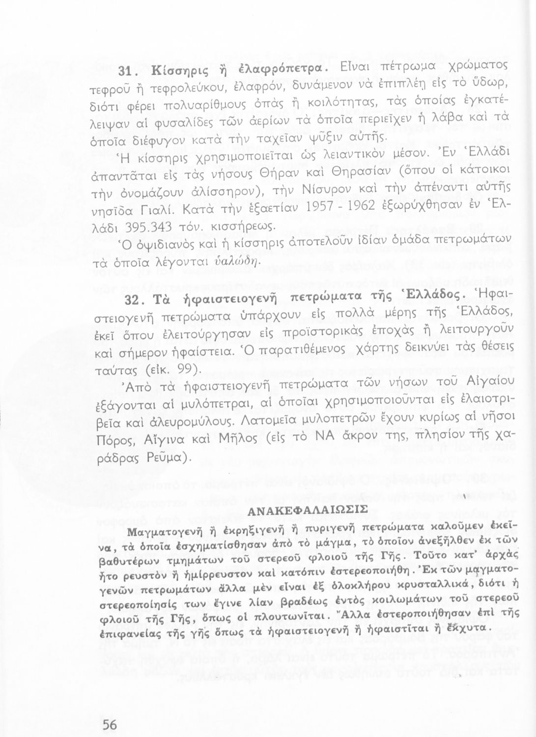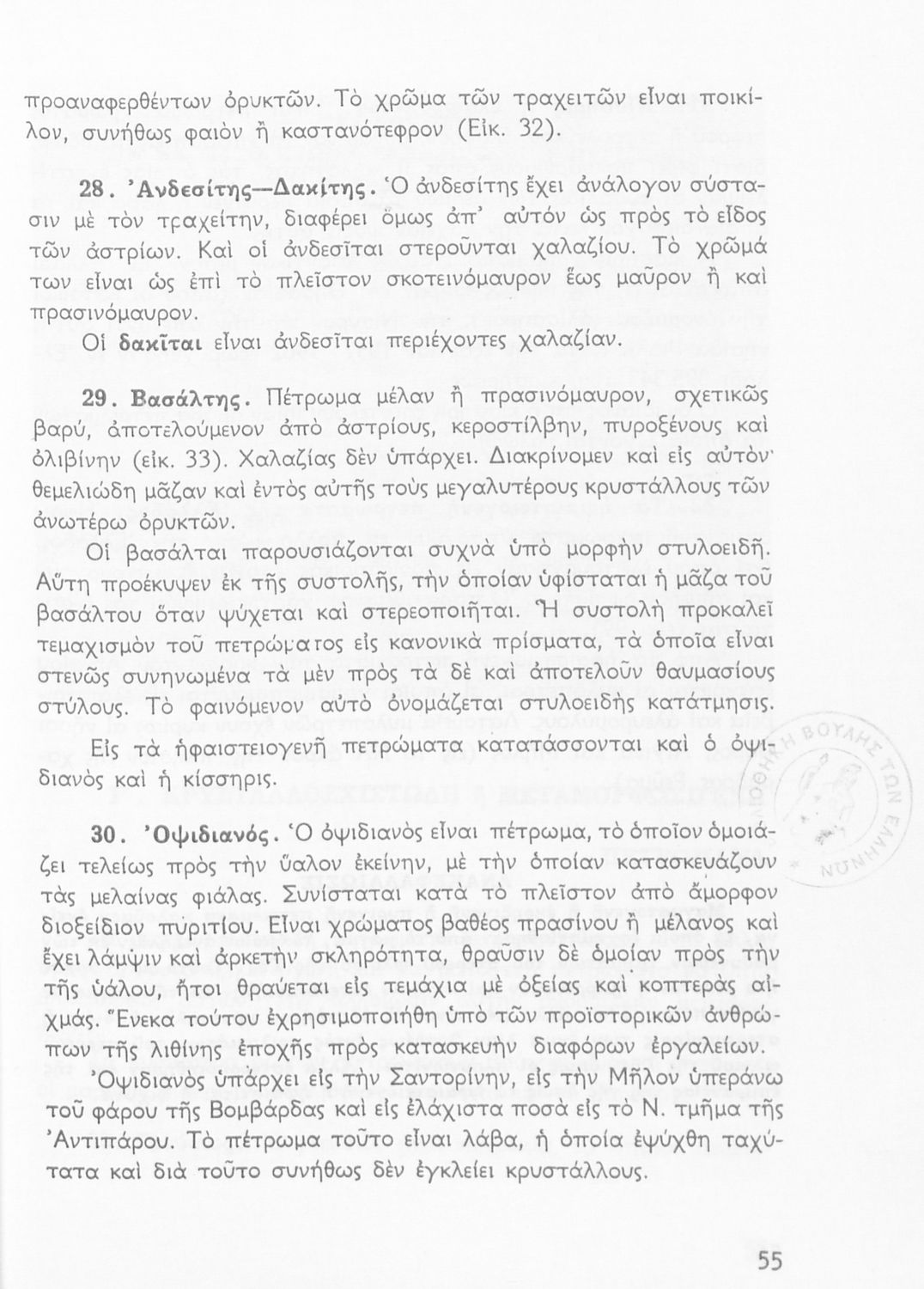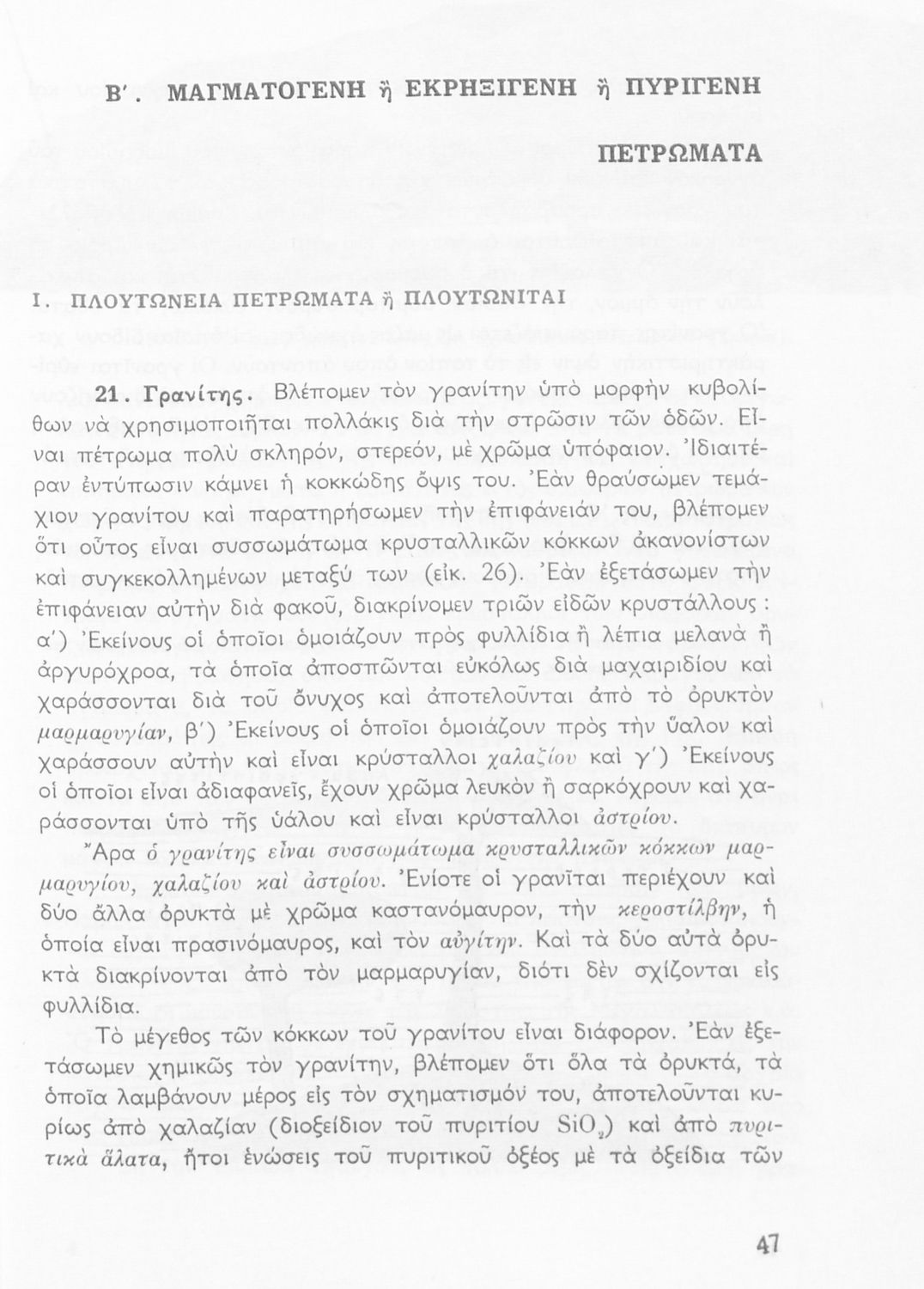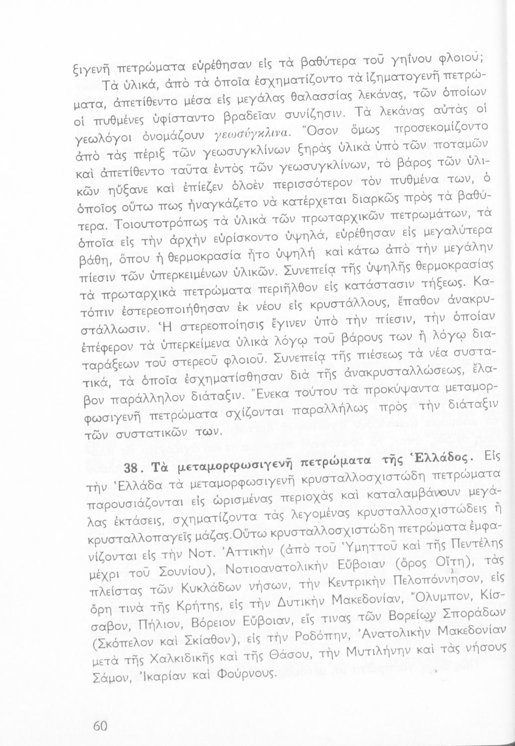 Σχολικό εγχειρίδιο Γεωλογίας/Ορυκτολογίας για τη Β΄ Γυμνασίου που παρουσιάζει τα ορυκτά με βάση την κλάση στην οποία ανήκουν. Περιέχει και πίνακα των γεωλογικών περιόδων.