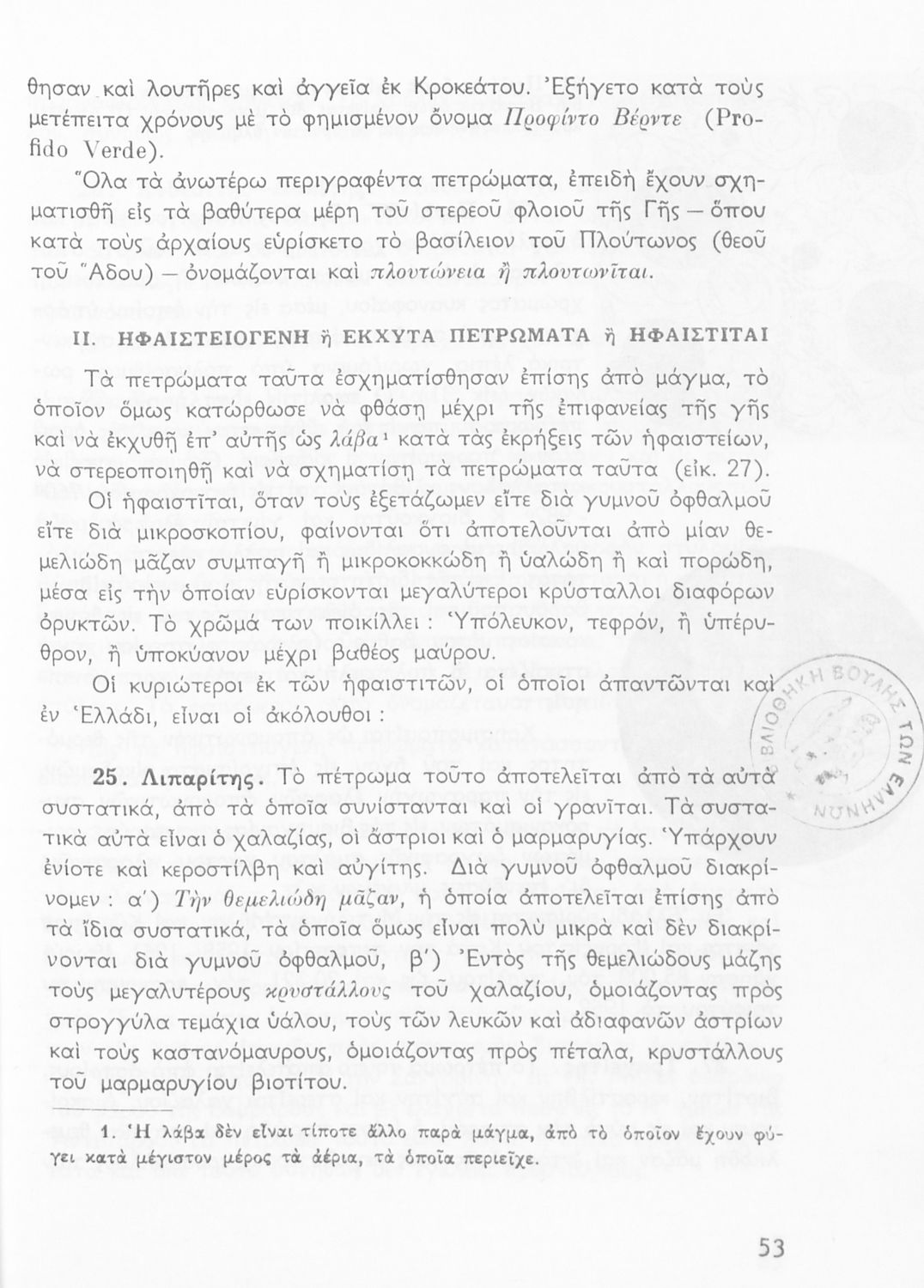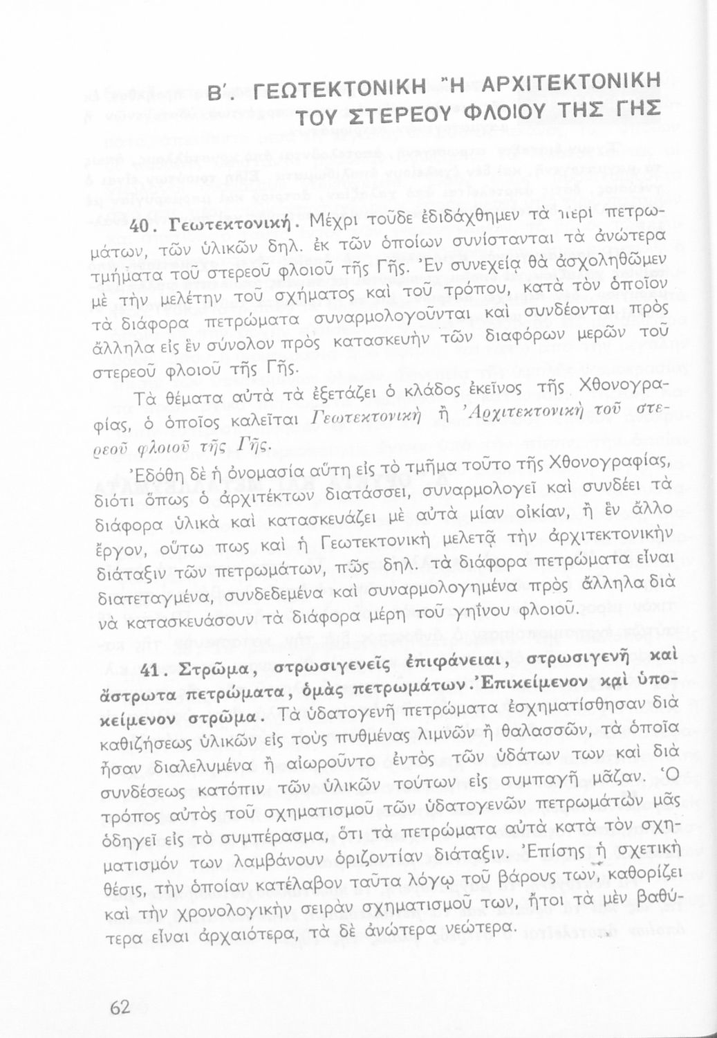 Σχολικό εγχειρίδιο Γεωλογίας/Ορυκτολογίας για την Δ΄ Γυμνασίου που περιλαμβάνει χθονογραφική, δυναμική και ιστορική γεωλογία, και γενική και ειδική ορυκτολογία. Ο συγγραφέας ήταν καθηγητής πανεπιστήμιου και η ...