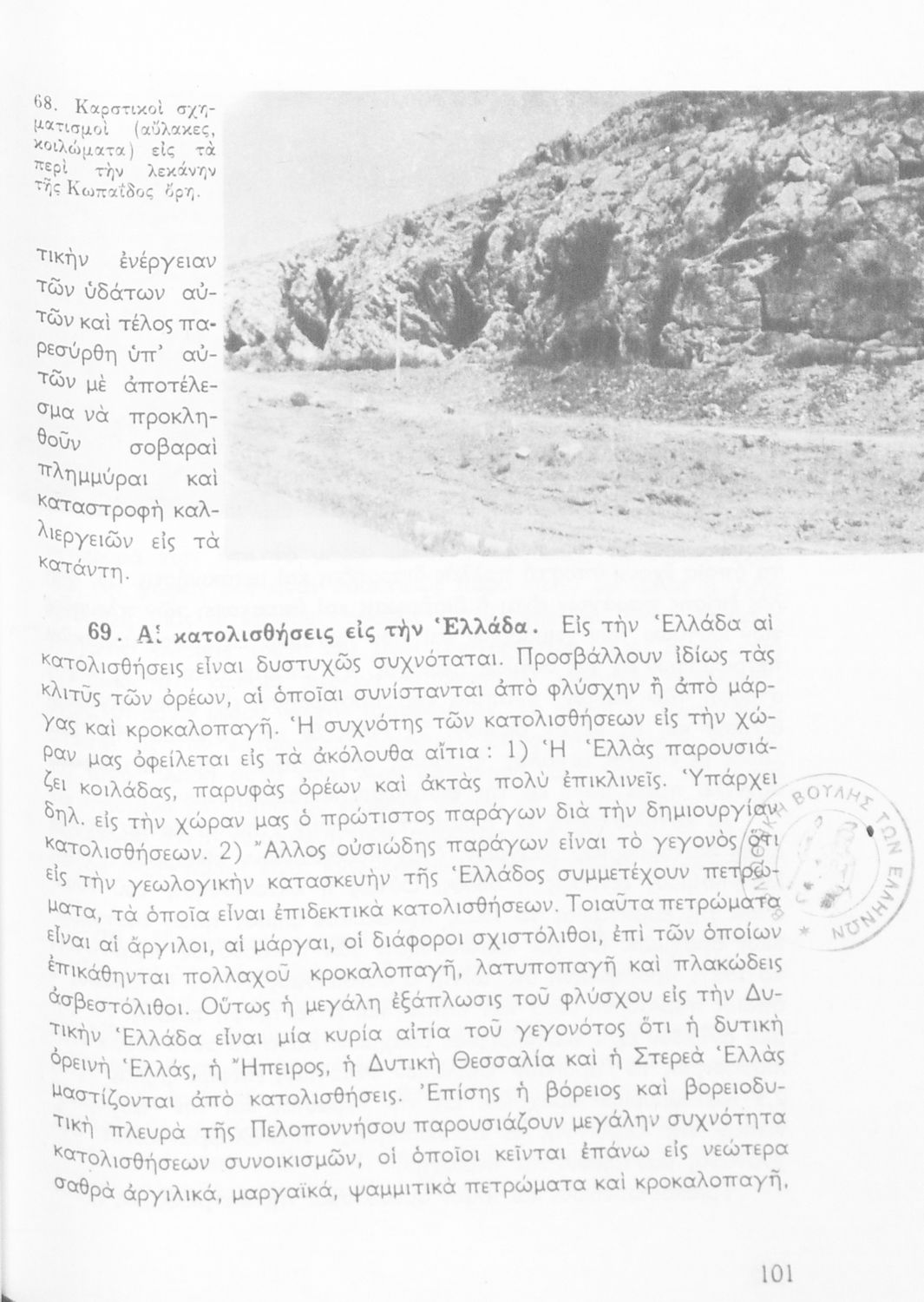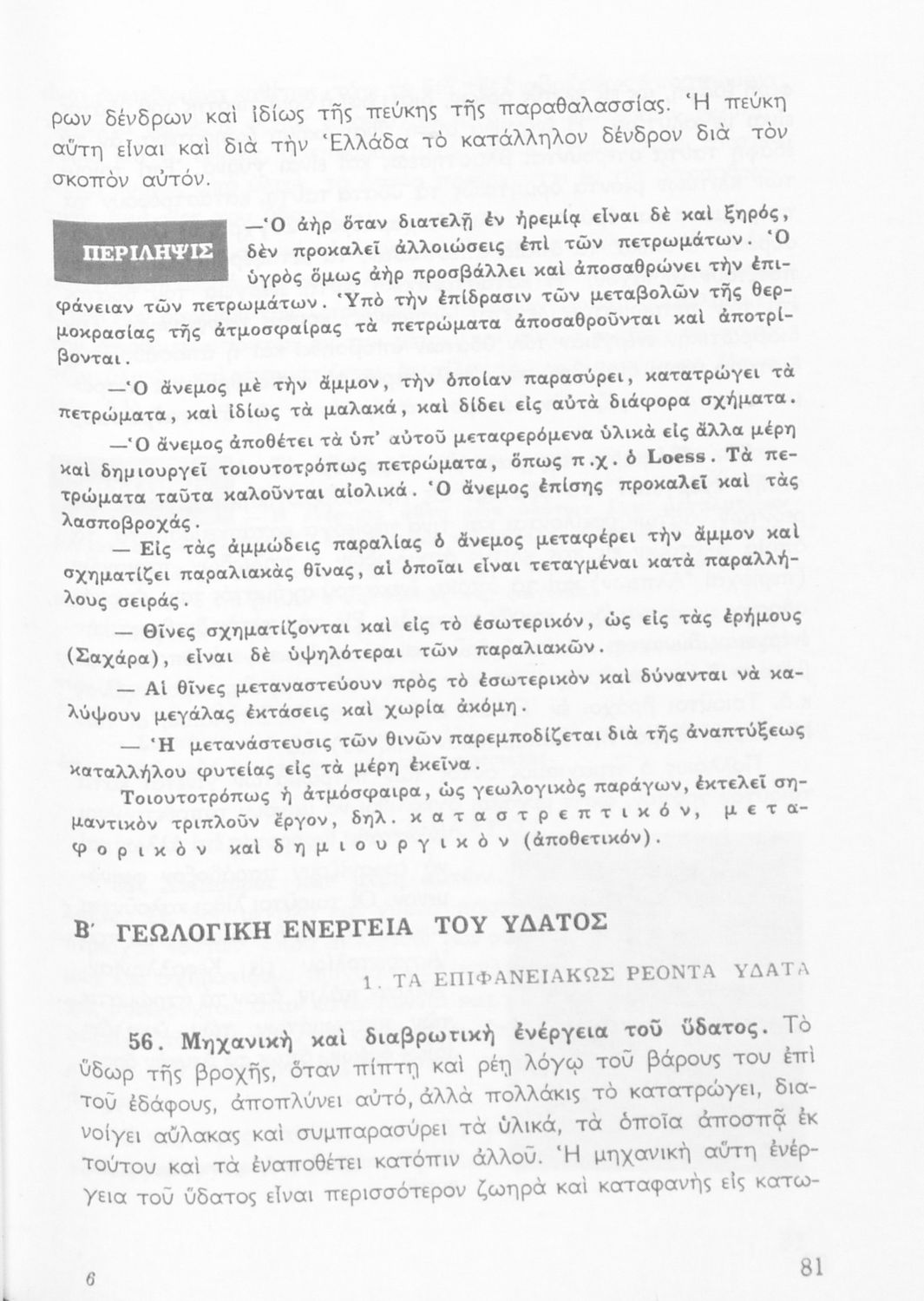 Σχολικό εγχειρίδιο Γεωλογίας της Δ΄ Γυμνασίου το οποίο εισάγει τους μαθητές στην επιστήμη της Γεωλογίας και της Ορυκτολογίας παρουσιάζοντας τα διάφορα ορυκτά και πετρώματα, αλλά κάνοντας και μια ιστορική επισκόπηση της γεωλογικής ιστορίας της Ελλάδας. Επίσης αναφέρεται σε ζητήματα γεωλογικής ενέργειας, όπως είναι η δραστηριότητα των ηφαιστείων.