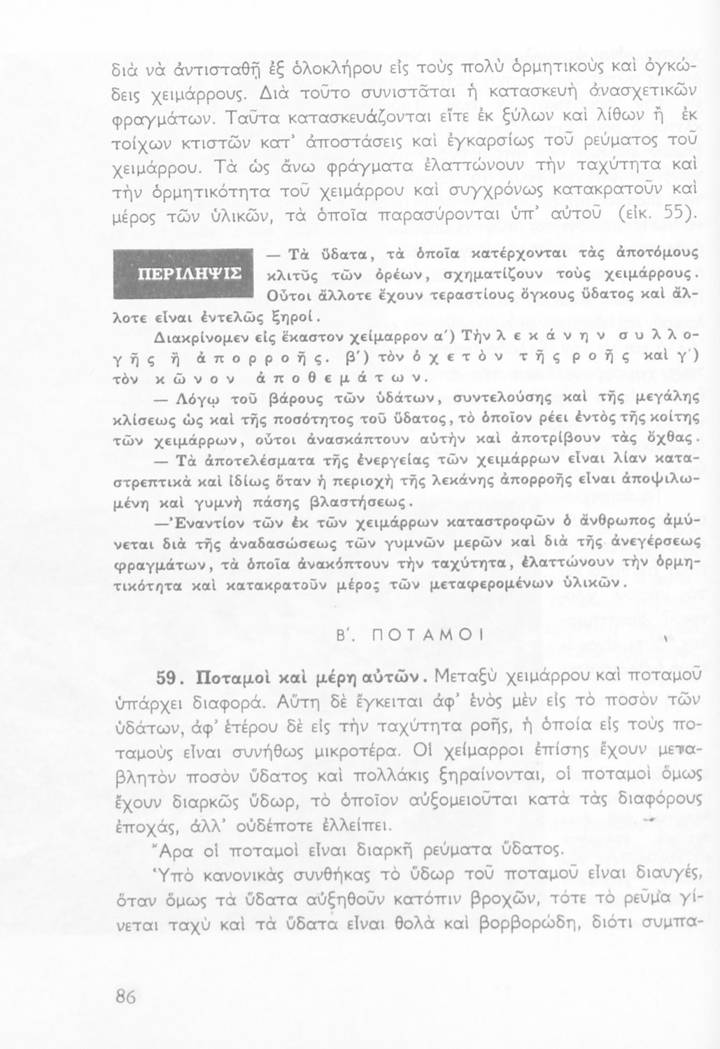 Βαθμίδα εκπαίδευσης: Δευτεροβάθμια Τάξη: Δ' Γυμνασίου Μάθημα: Γεωλογία Γλώσσα: Απλή καθαρεύουσα Παρουσίαση περιεχομένου: Σχολικό εγχειρίδιο Γεωλογίας της Δ΄ Γυμνασίου το οποίο εισάγει τους μαθητές στην επιστήμη της Γεωλογίας και της Ορυκτολογίας παρουσιάζοντας τα διάφορα ορυκτά και πετρώματα, αλλά κάνοντας και μια ιστορική επισκόπηση της γεωλογικής ιστορίας της Ελλάδας. Επίσης αναφέρεται σε ζητήματα γεωλογικής ενέργειας, όπως είναι η δραστηριότητα των ηφαιστείων. |