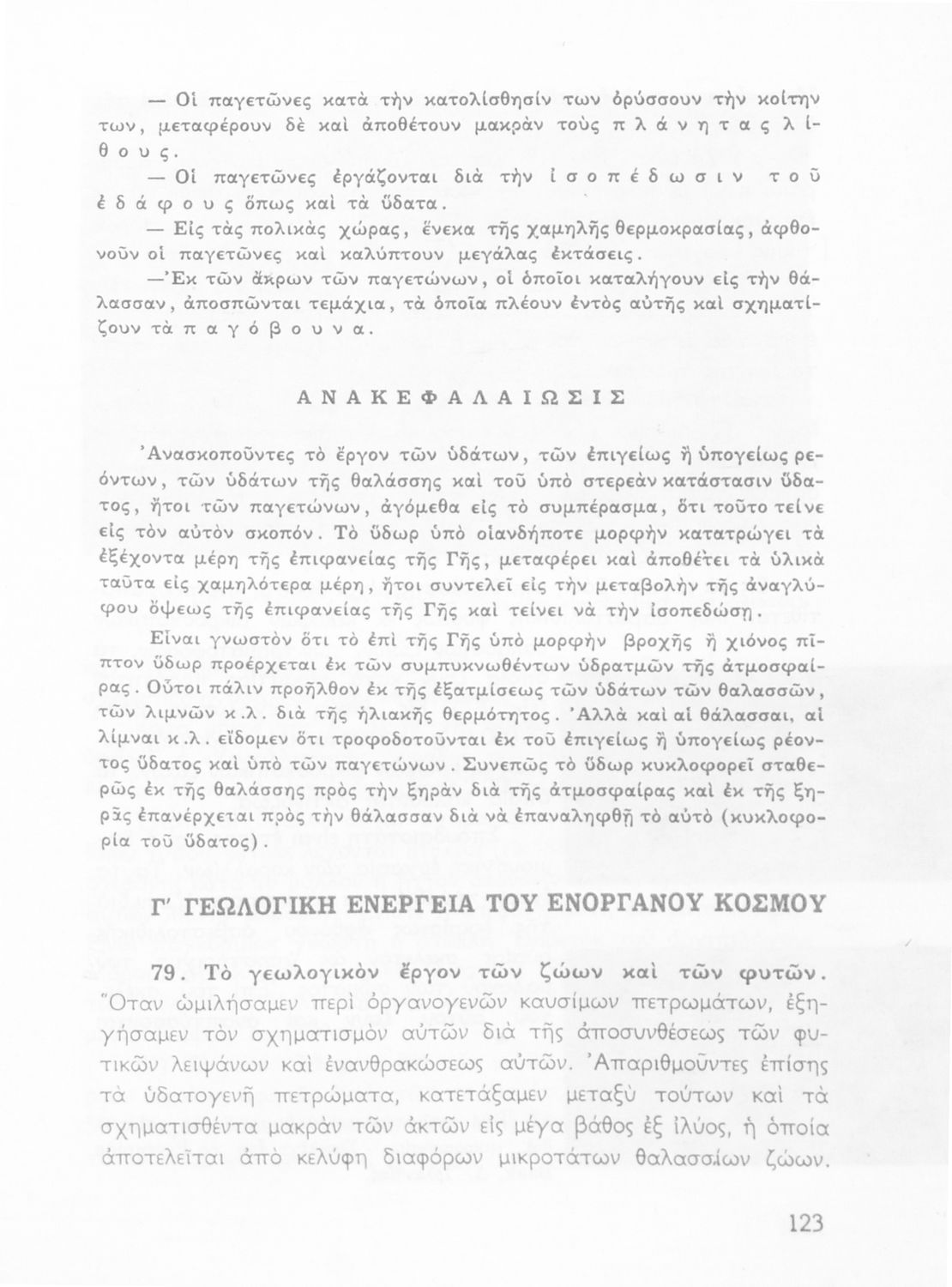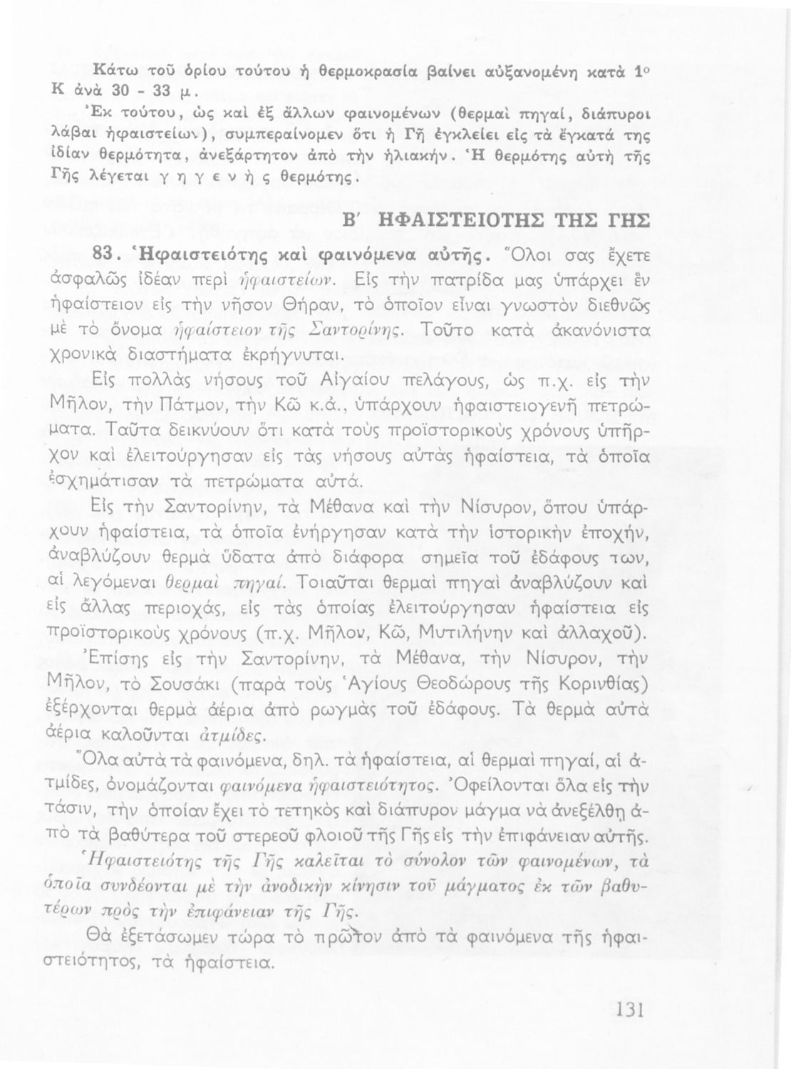 Σχολικό εγχειρίδιο Γεωλογίας/Ορυκτολογίας για την Δ΄ Γυμνασίου που περιλαμβάνει χθονογραφική, δυναμική και ιστορική γεωλογία, και γενική και ειδική ορυκτολογία. Ο συγγραφέας ήταν καθηγητής πανεπιστήμιου και η ...