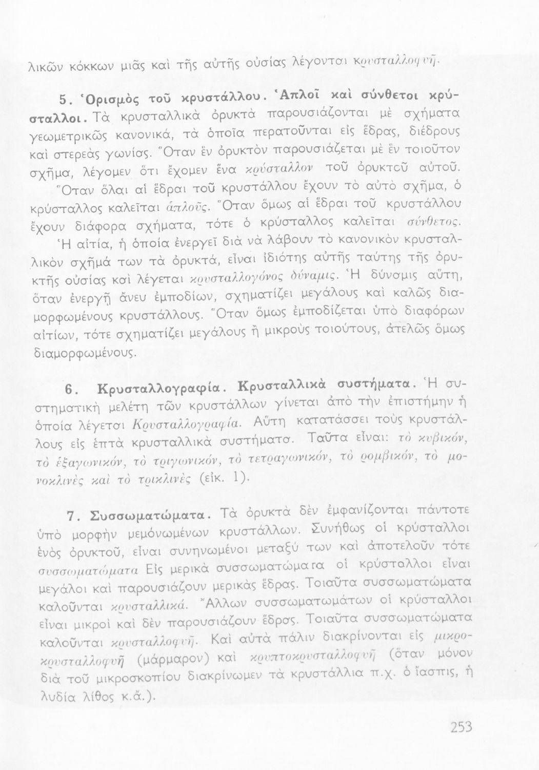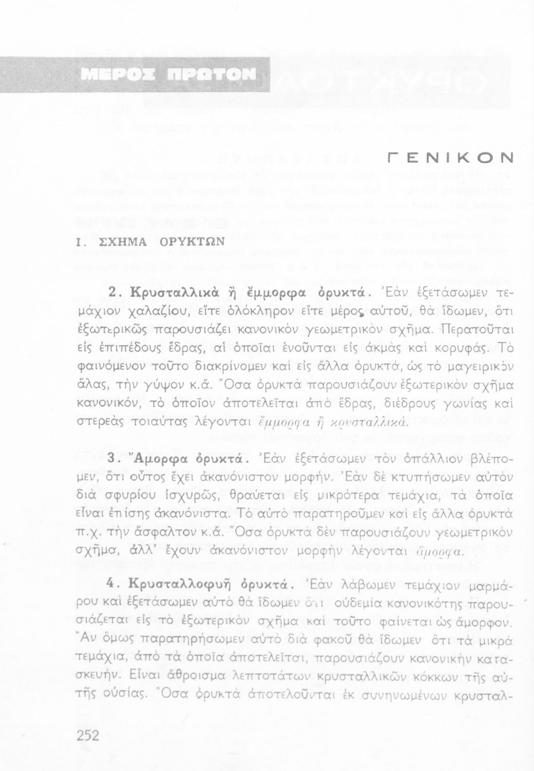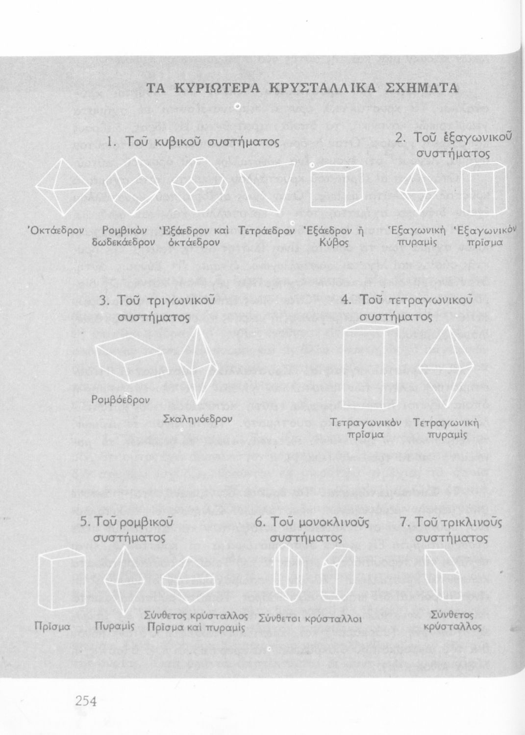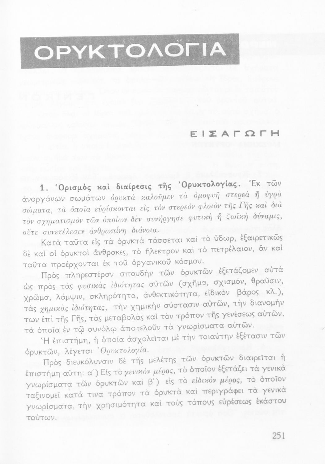 Σχολικό εγχειρίδιο Γεωλογίας/Ορυκτολογίας για τη Β΄ Γυμνασίου που παρουσιάζει τα ορυκτά με βάση την κλάση στην οποία ανήκουν. Περιέχει και πίνακα των γεωλογικών περιόδων.