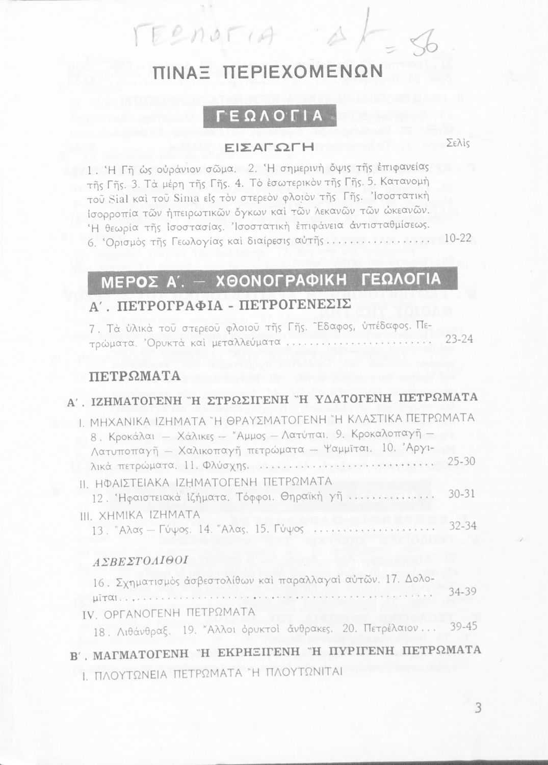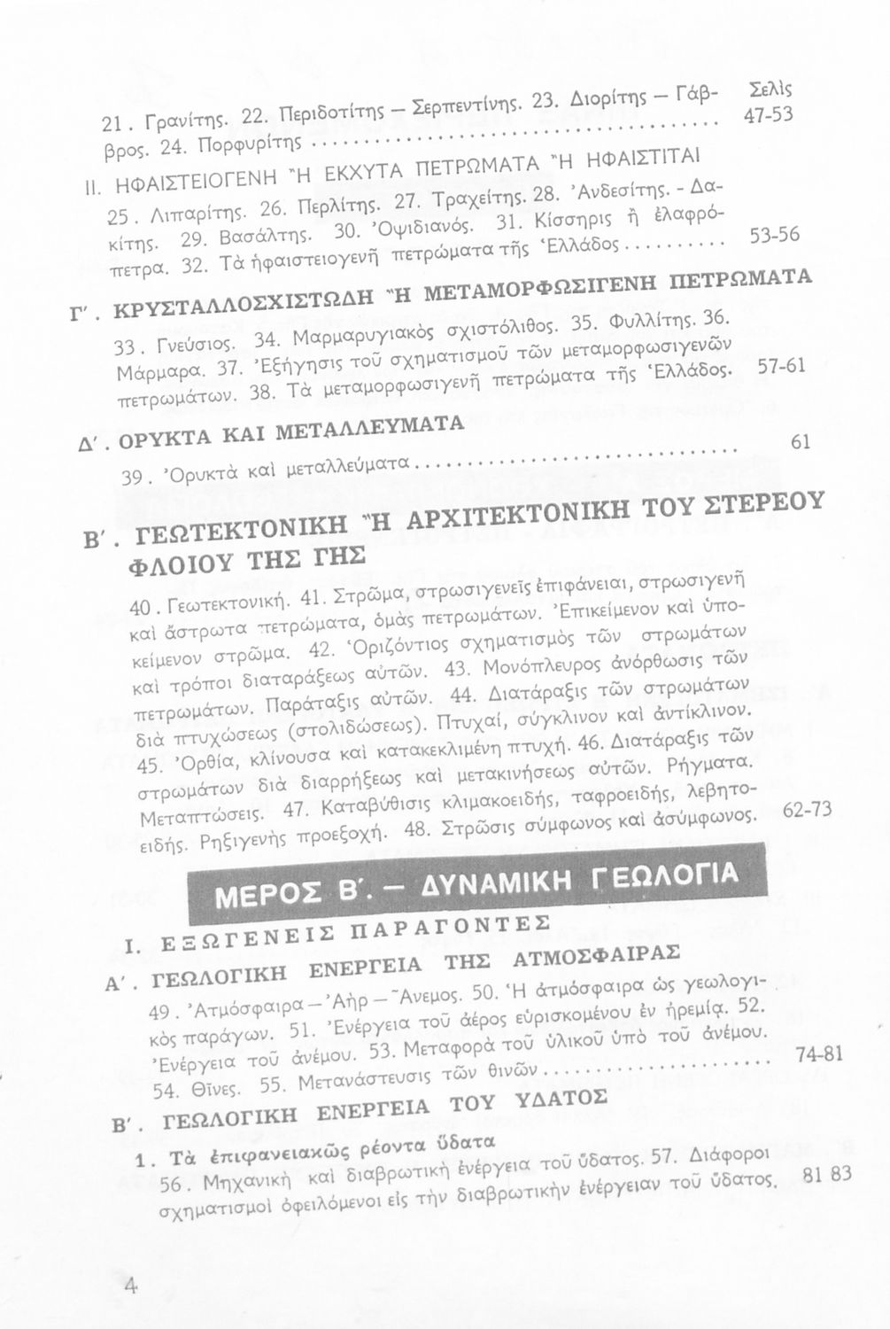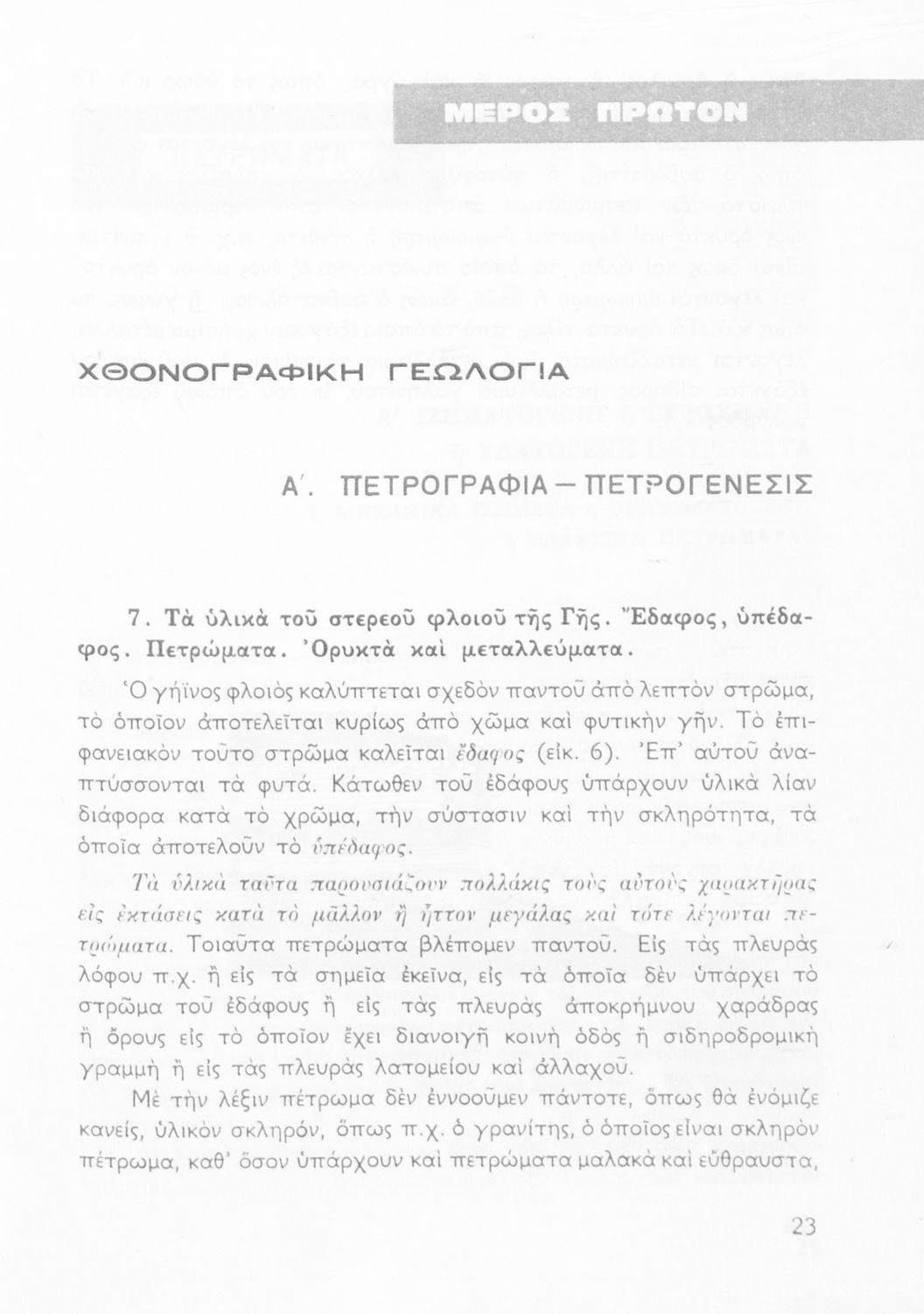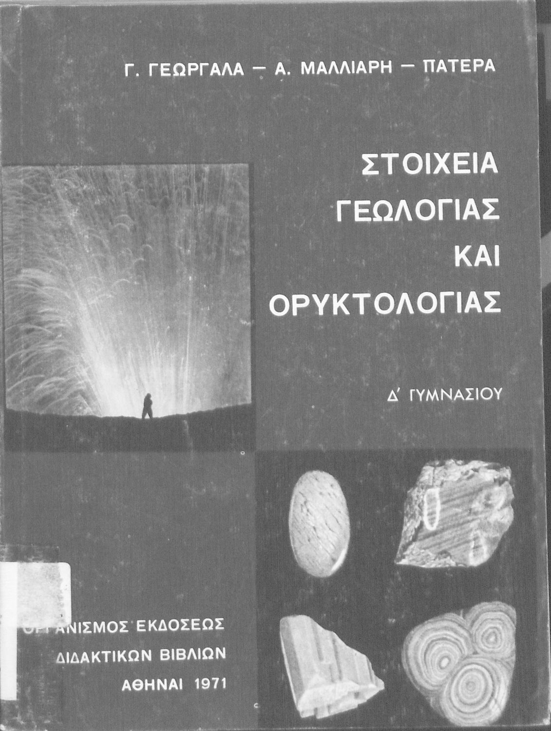 Σχολικό εγχειρίδιο Γεωλογίας για τους μαθητές της Δ' Δημοτικού. Το παρόν σχολικό εγχειρίδιο εισάγει τους μαθητές στην της γεωλογίας και της ορυκτολογίας παρουσιάζοντας τα διάφορα ορυκτά και πετρώματα, αλλά και μια ιστορική επισκόπηση της γεωλογικής ιστορίας της Ελλάδας. Επίσης αναφέρεται σε ζητήματα γεωλογικής ενέργειας όπως η δραστηριότητα των ηφαιστείων