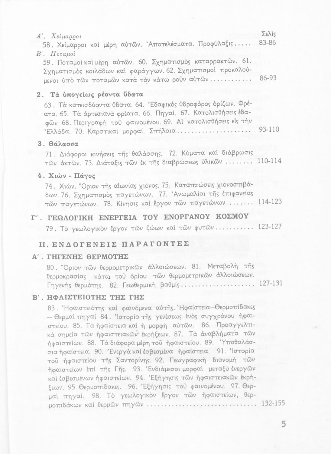 Βαθμίδα εκπαίδευσης: Δευτεροβάθμια Τάξη: Δ' Γυμνασίου Μάθημα: Γεωλογία Γλώσσα: Καθαρεύουσα Παρουσίαση περιεχομένου: Σχολικό εγχειρίδιο Γεωλογίας για τους μαθητές της Δ' Δημοτικού. Το παρόν σχολικό εγχειρίδιο εισάγει τους μαθητές στην της γεωλογίας και της ορυκτολογίας παρουσιάζοντας τα διάφορα ορυκτά και πετρώματα, αλλά και μια ιστορική επισκόπηση της γεωλογικής ιστορίας της Ελλάδας. Επίσης αναφέρεται σε ζητήματα γεωλογικής ενέργειας όπως η δραστηριότητα των ηφαιστείων |
