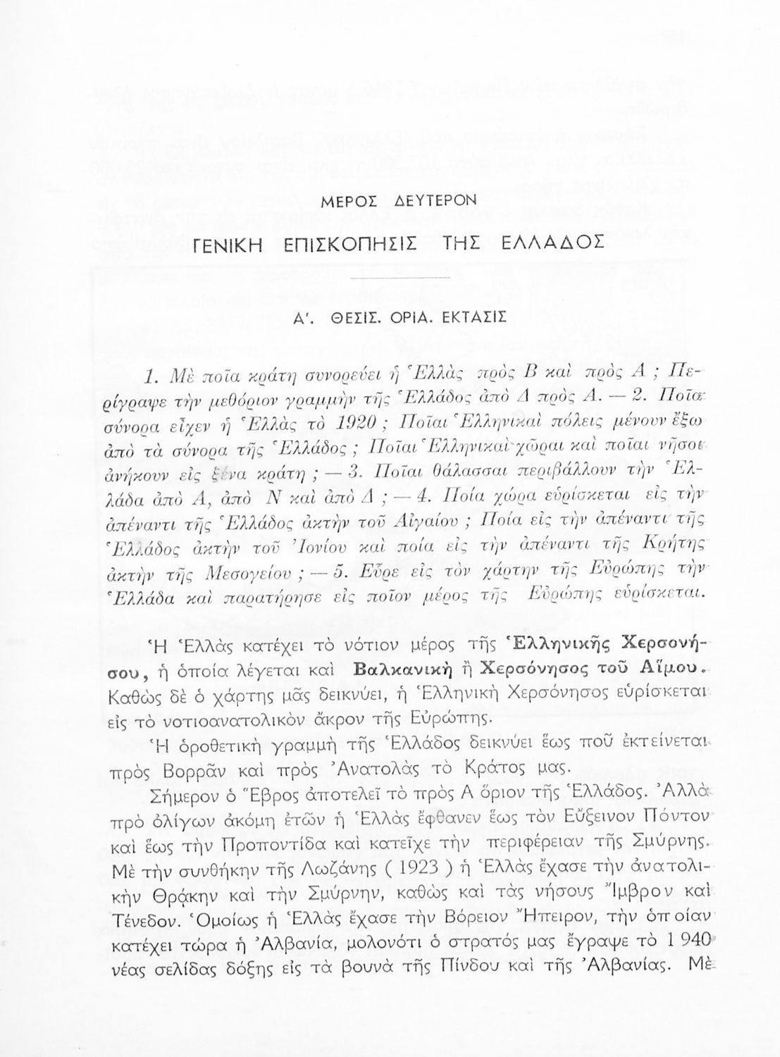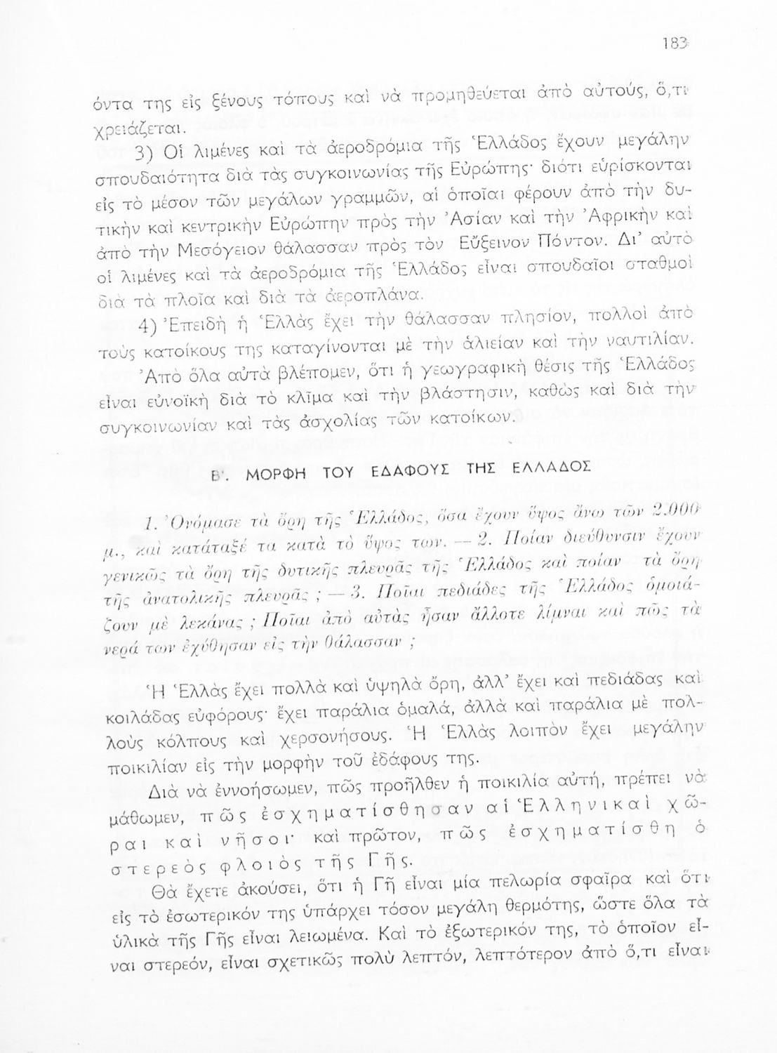 Σχολικό εγχειρίδιο Γεωγραφίας Α' Γυμνασίου που εξετάζει την Ελλάδα ανά διαμέρισμα και νομό από γεωφυσική, οικονομική και πολιτική άποψη.