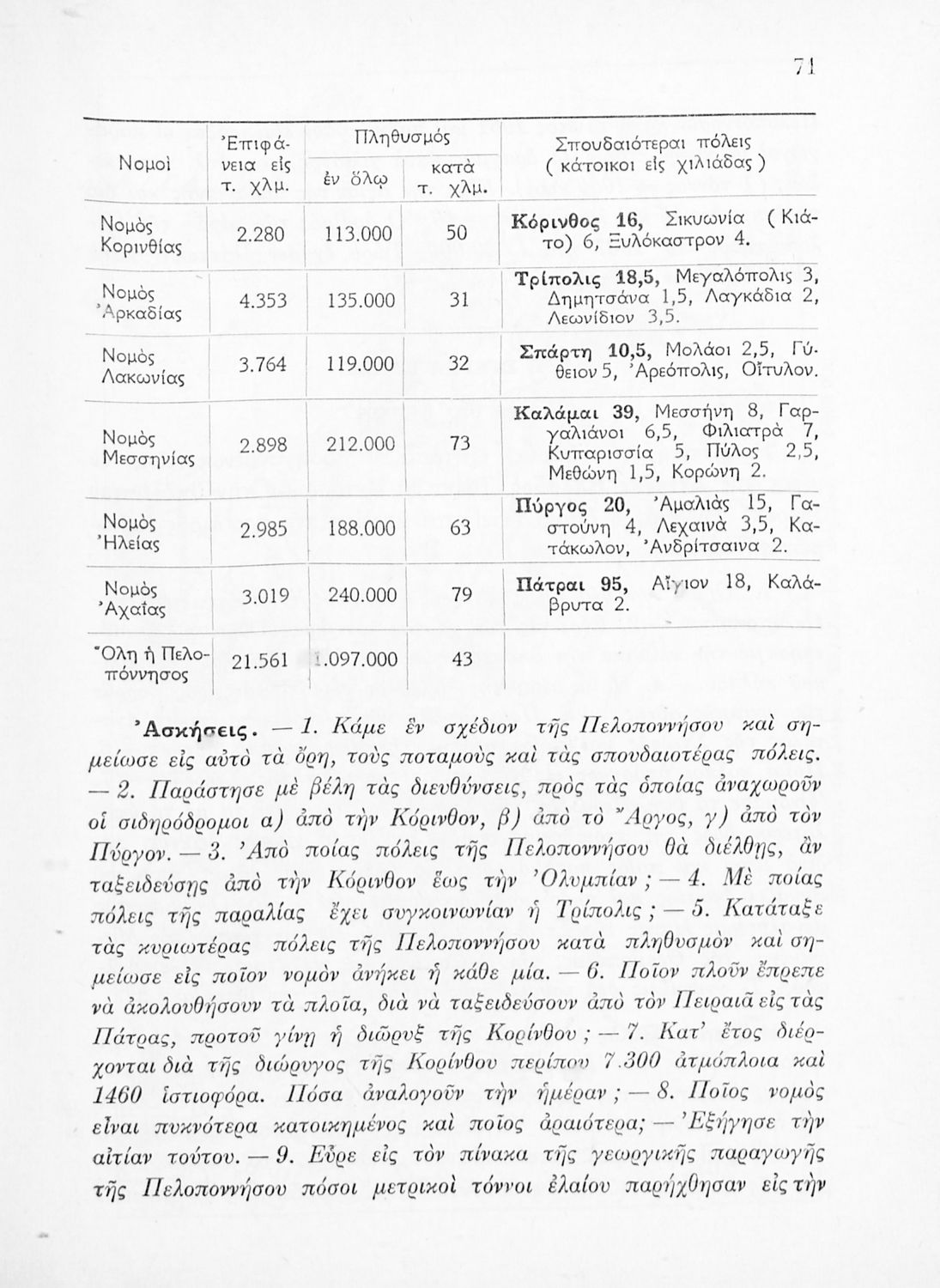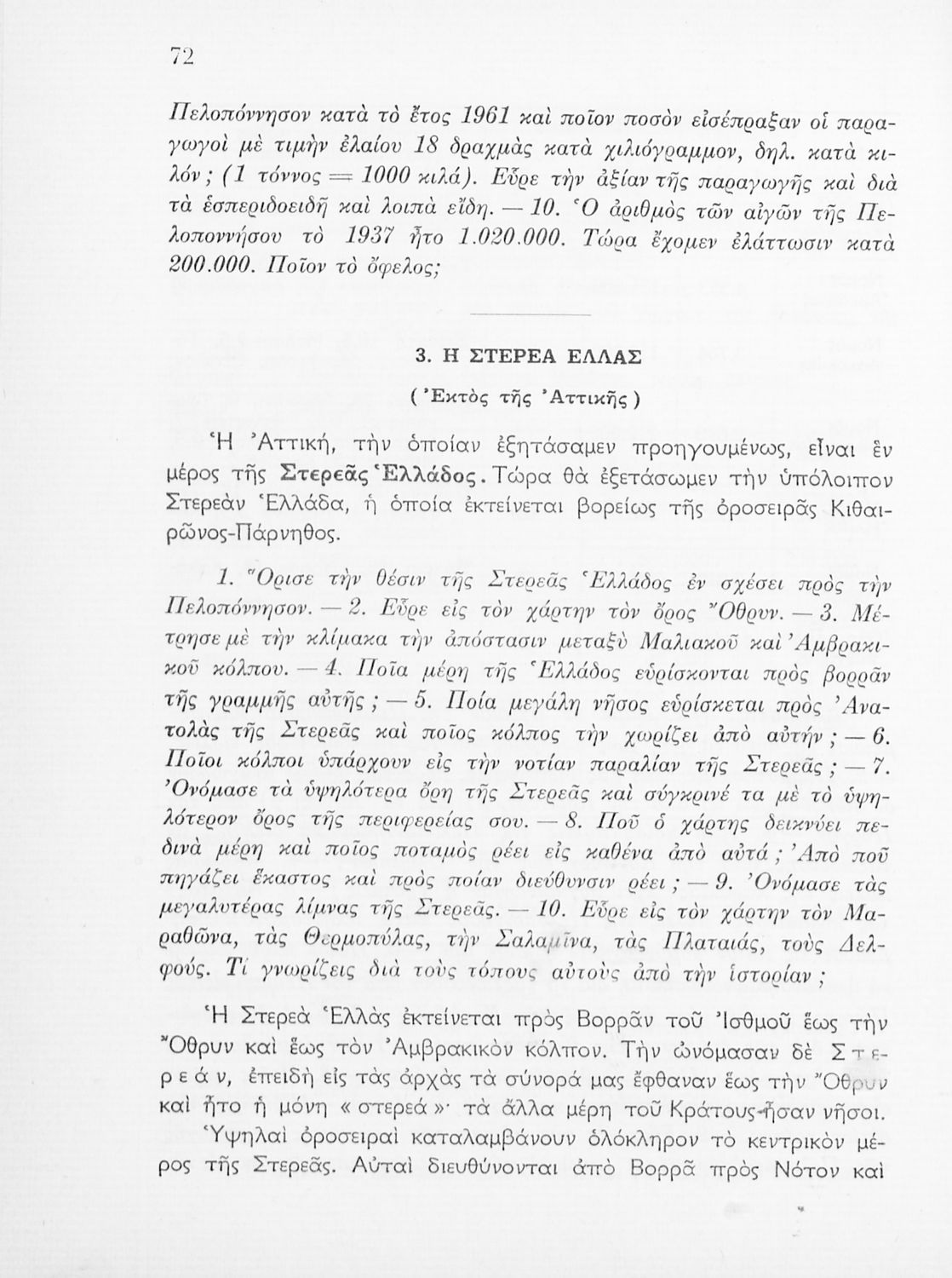 Σχολικό εγχειρίδιο Γεωγραφίας Α' Γυμνασίου που εξετάζει την Ελλάδα ανά διαμέρισμα και νομό από γεωφυσική, οικονομική και πολιτική άποψη.