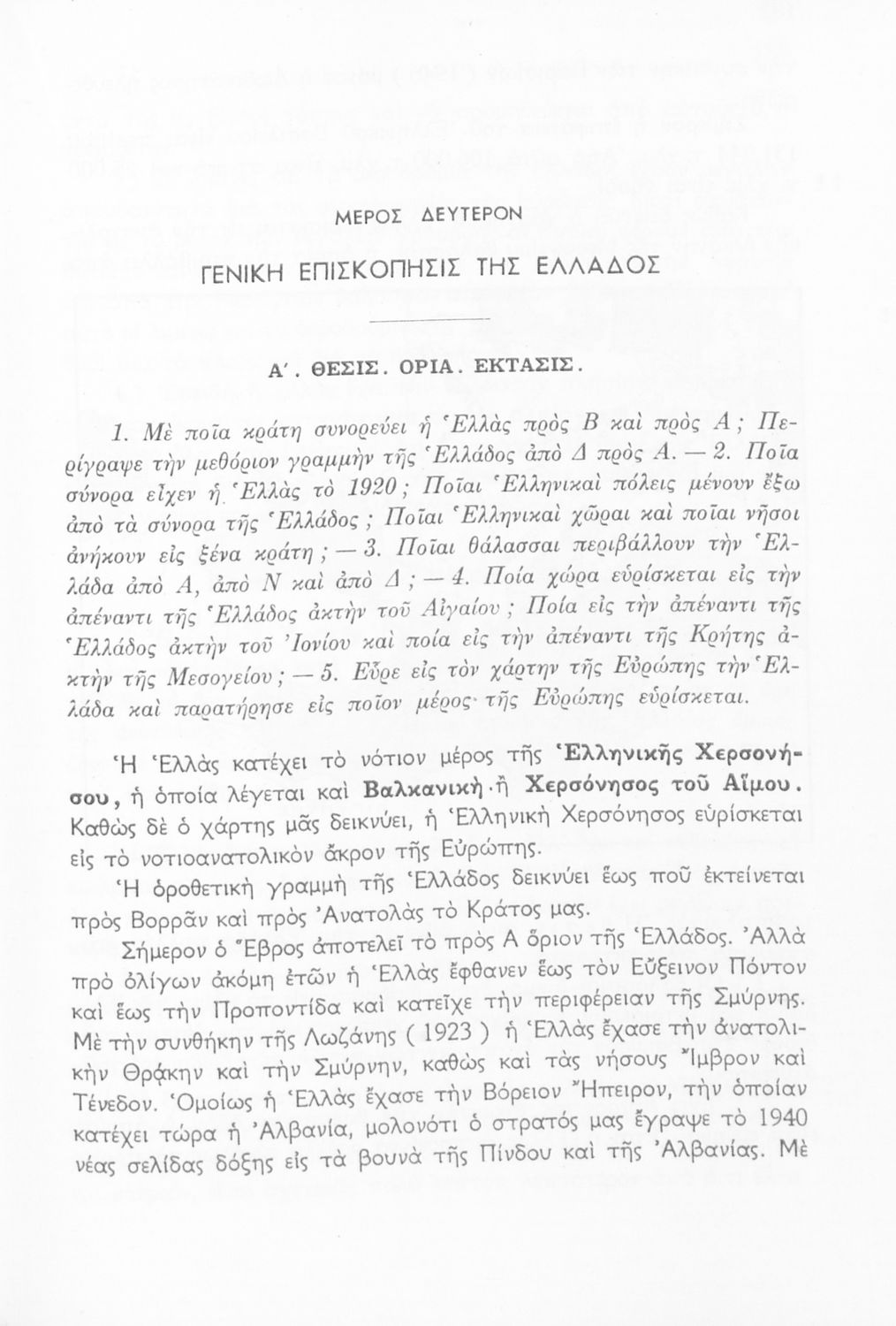 Σχολικό εγχειρίδιο Γεωγραφίας Α' Γυμνασίου που εξετάζει την Ελλάδα ανά διαμέρισμα και νομό από γεωφυσική, οικονομική και πολιτική άποψη.