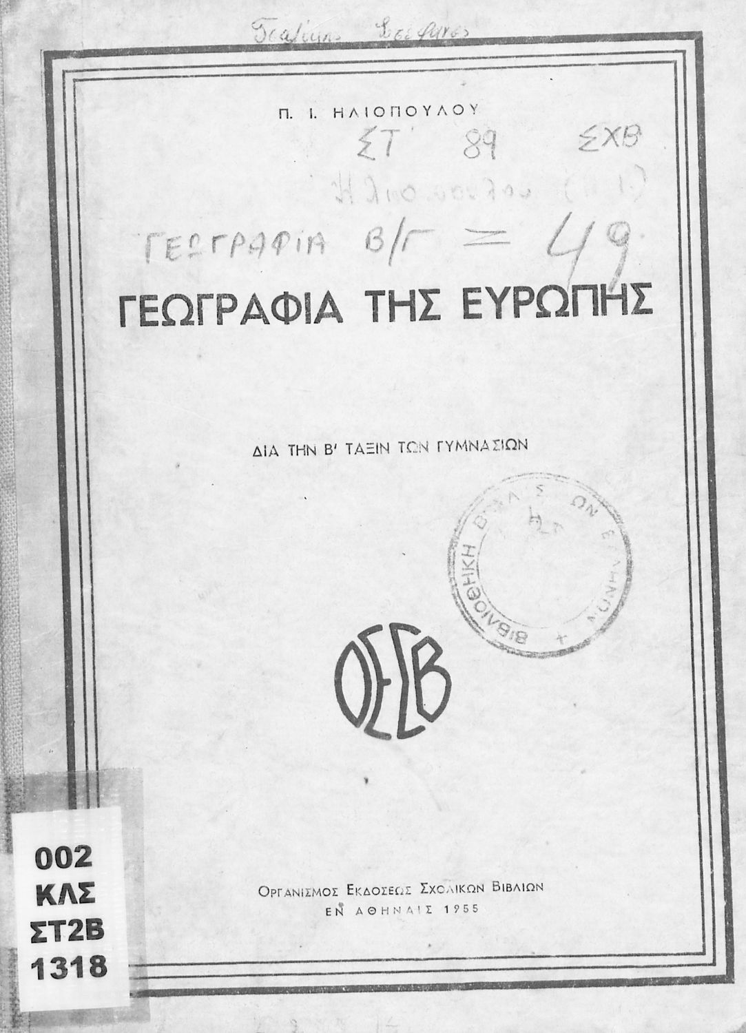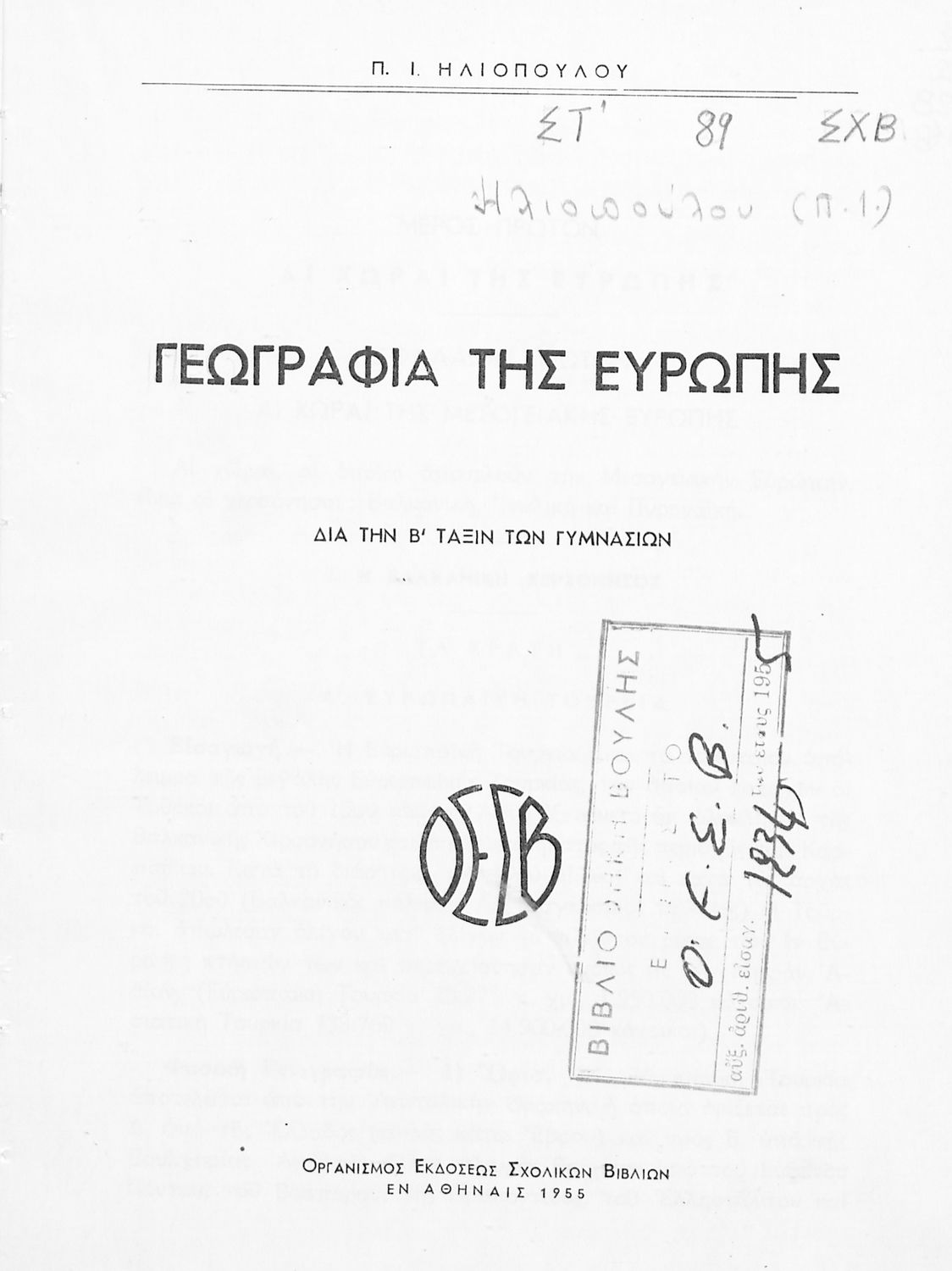 Τίτλος: Γεωγραφία Ευρώπης δια την Β' τάξιν των Γυμνασίων