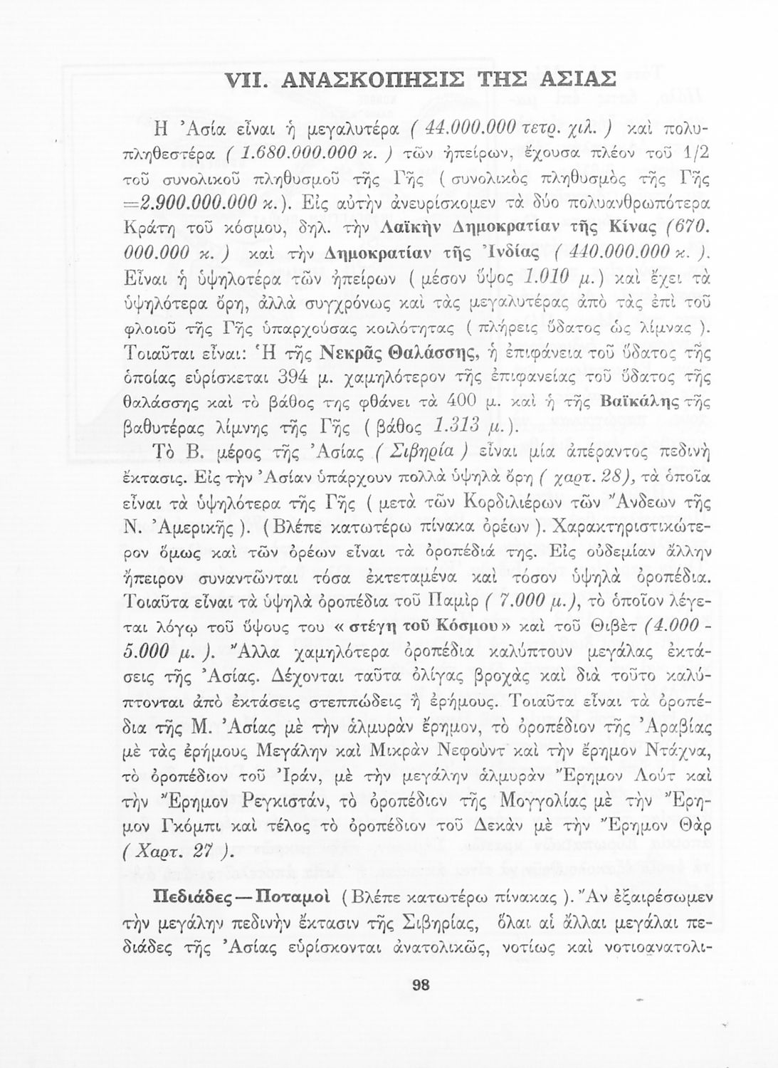 Βαθμίδα εκπαίδευσης: Δευτεροβάθμια Τάξη: ΣΤ' Γυμνασίου Μάθημα: Γεωγραφία Γλώσσα: Απλή καθαρεύουσα Παρουσίαση περιεχομένου: Σχολικό εγχειρίδιο Γεωγραφίας ΣΤ΄ Γυμνασίου που παρουσιάζει τα γενικά πολιτικά, οικονομικά και γεωφυσικά χαρακτηριστικά των ηπείρων πλην της Ευρώπης και εξετάζει ενδεικτικές χώρες και περιοχές |