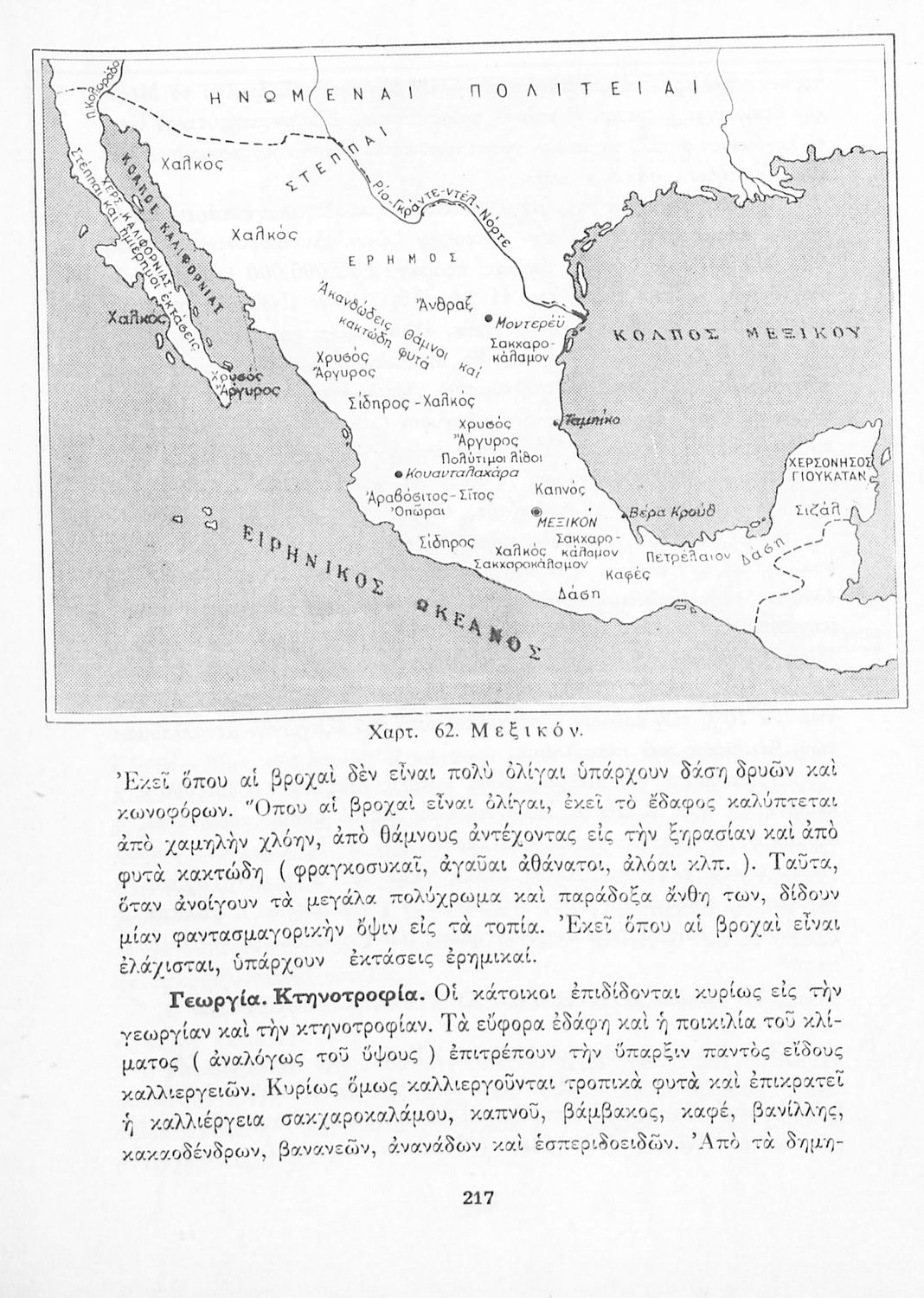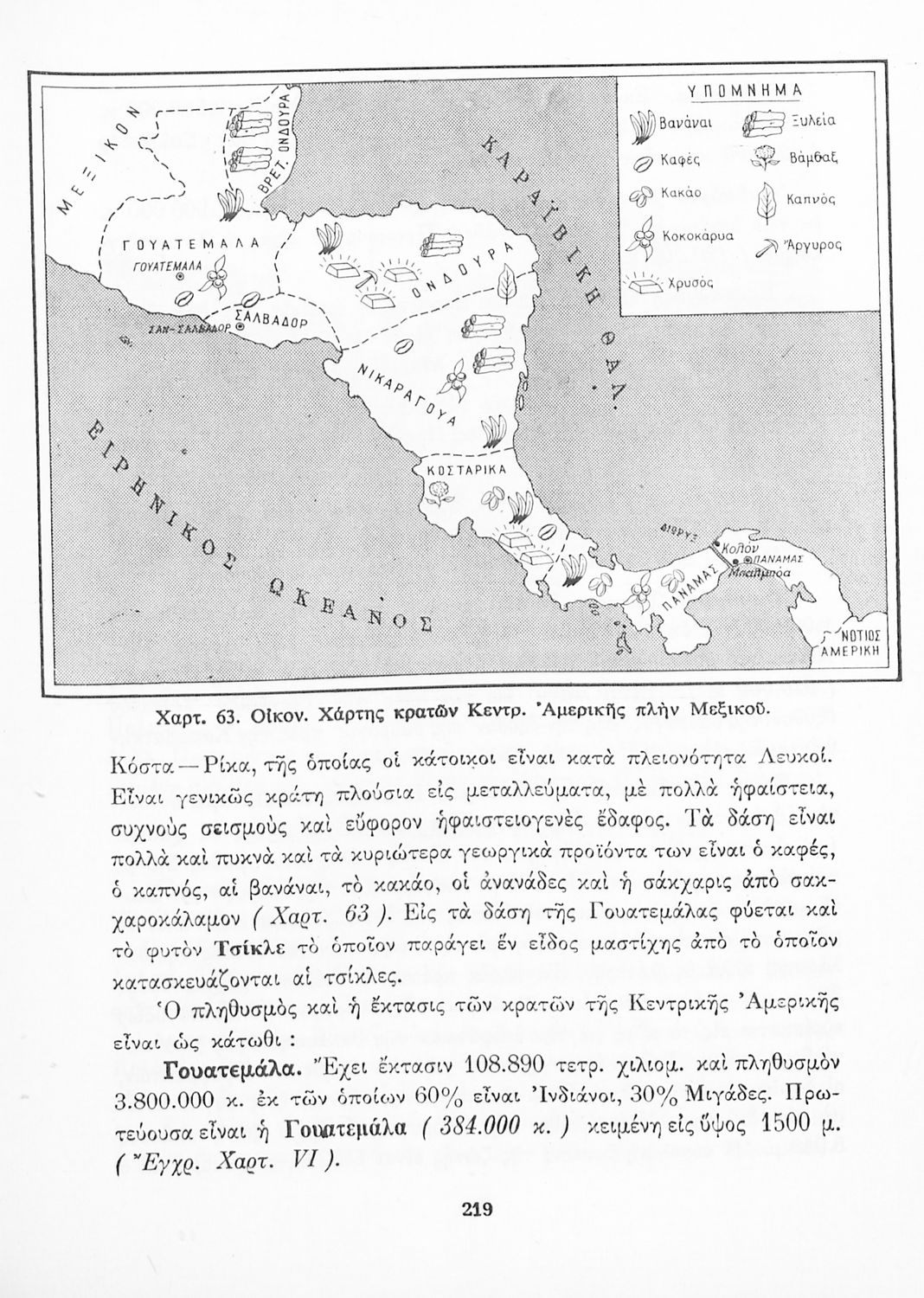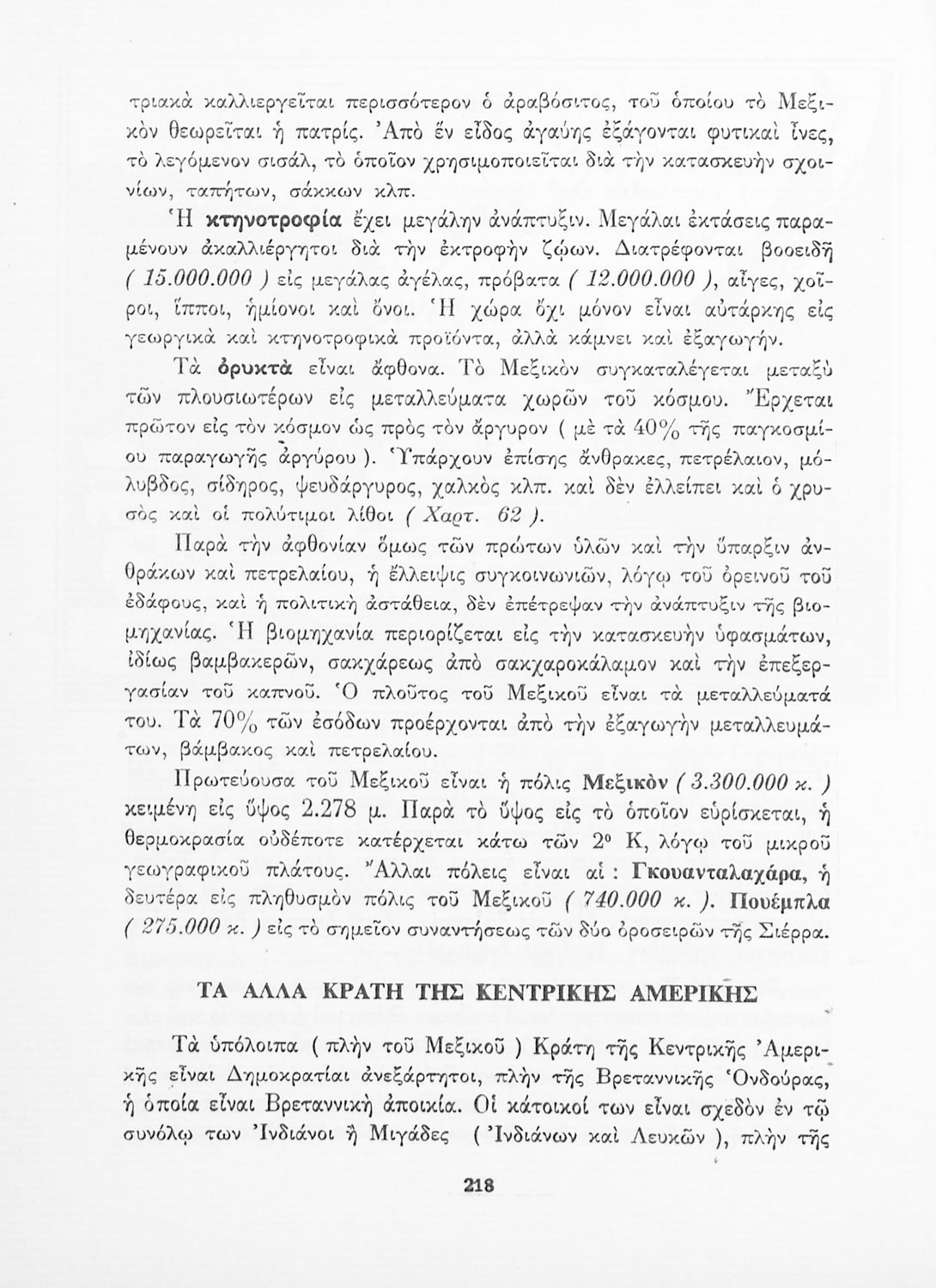 Σχολικό εγχειρίδιο Γεωγραφίας που εξετάζει ενδεικτικές χώρες και περιοχές από τις πέντε ηπείρους εκτός της Ευρώπης από γεωφυσική και οικονομική πλευρά. Φέρει το σύμβολο της δικτατορίας.