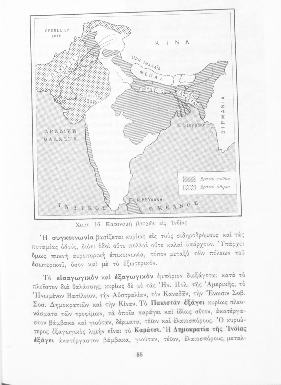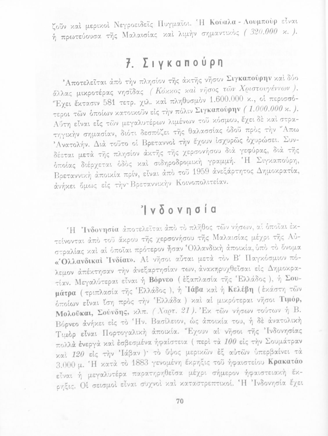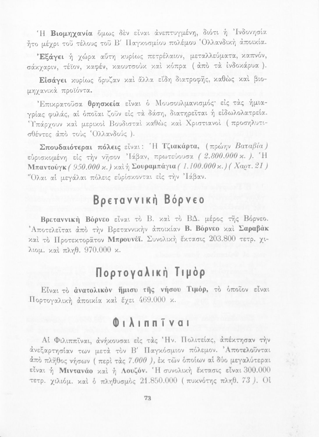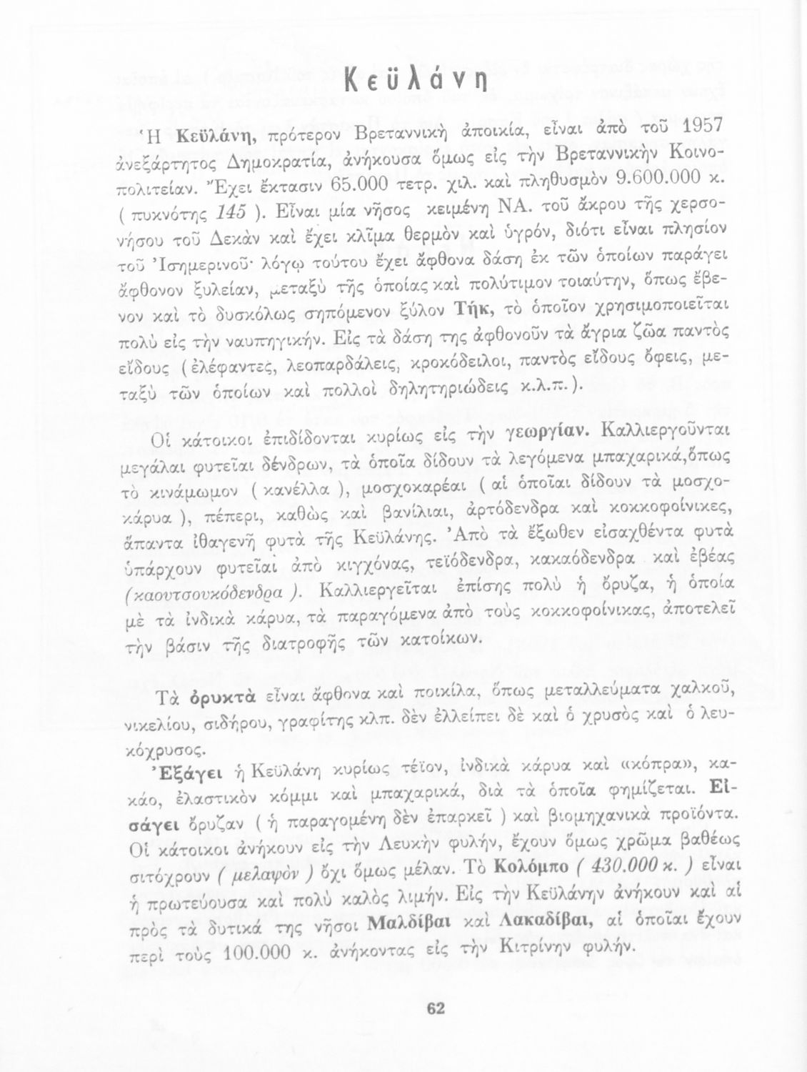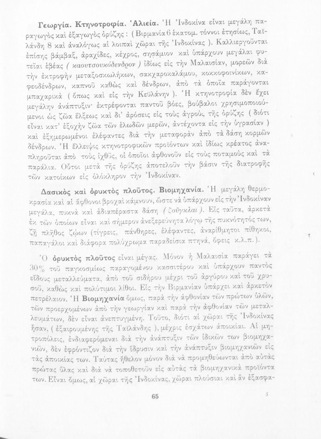 Σχολικό εγχειρίδιο Γεωγραφίας που εξετάζει ενδεικτικές χώρες και περιοχές από τις πέντε ηπείρους εκτός της Ευρώπης από γεωφυσική και οικονομική πλευρά. Φέρει το σύμβολο της δικτατορίας.