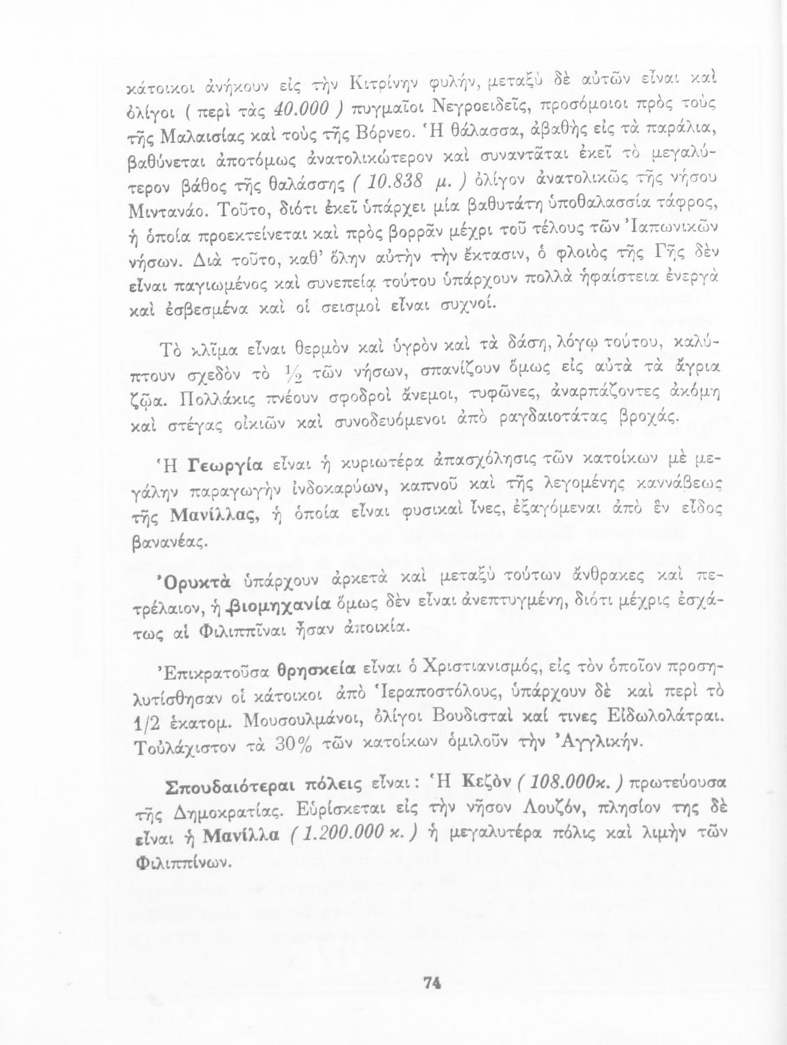 Σχολικό εγχειρίδιο Γεωγραφίας Γυμνασίου που παρουσιάζει τα γενικά πολιτικά, οικονομικά και γεωφυσικά χαρακτηριστικά των ηπείρων πλην της Ευρώπης και εξετάζει ενδεικτικές χώρες και περιοχές. Φέρει το σύμβολο της δικτατορίας.