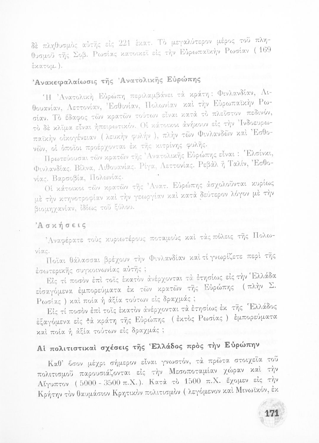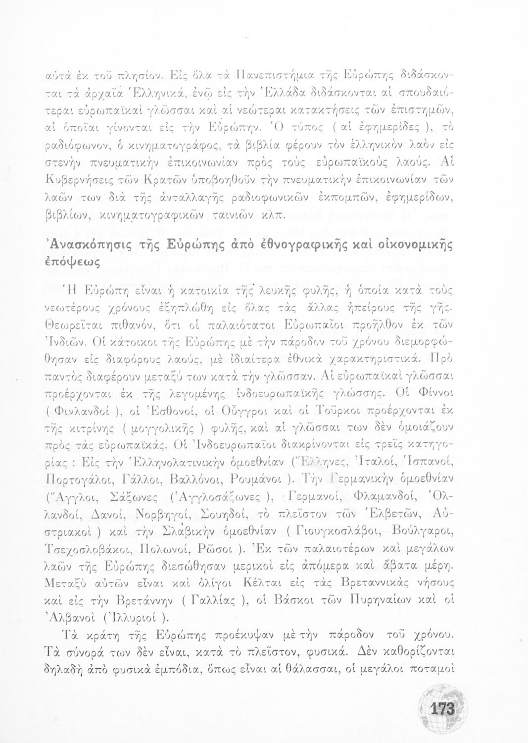 Σχολικό Εγχειρίδιο Γεωγραφίας Γυμνασίου που περιλαμβάνει στοιχεία φυσικής και μαθηματικής γεωγραφίας και εξετάζει χώρες της Ευρώπης από γεωμορφολογική, οικονομική και πολιτική άποψη. Περιέχει και στοιχεία Γεωλογίας.