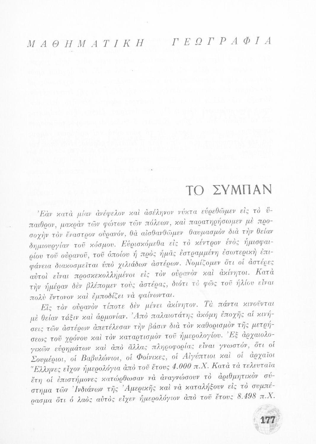 Σχολικό Εγχειρίδιο Γεωγραφίας Γυμνασίου που περιλαμβάνει στοιχεία φυσικής και μαθηματικής γεωγραφίας και εξετάζει χώρες της Ευρώπης από γεωμορφολογική, οικονομική και πολιτική άποψη. Περιέχει και στοιχεία Γεωλογίας.