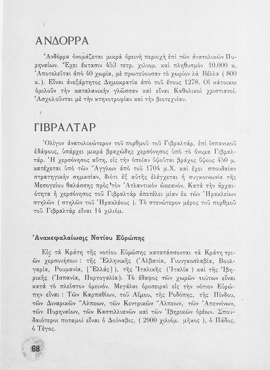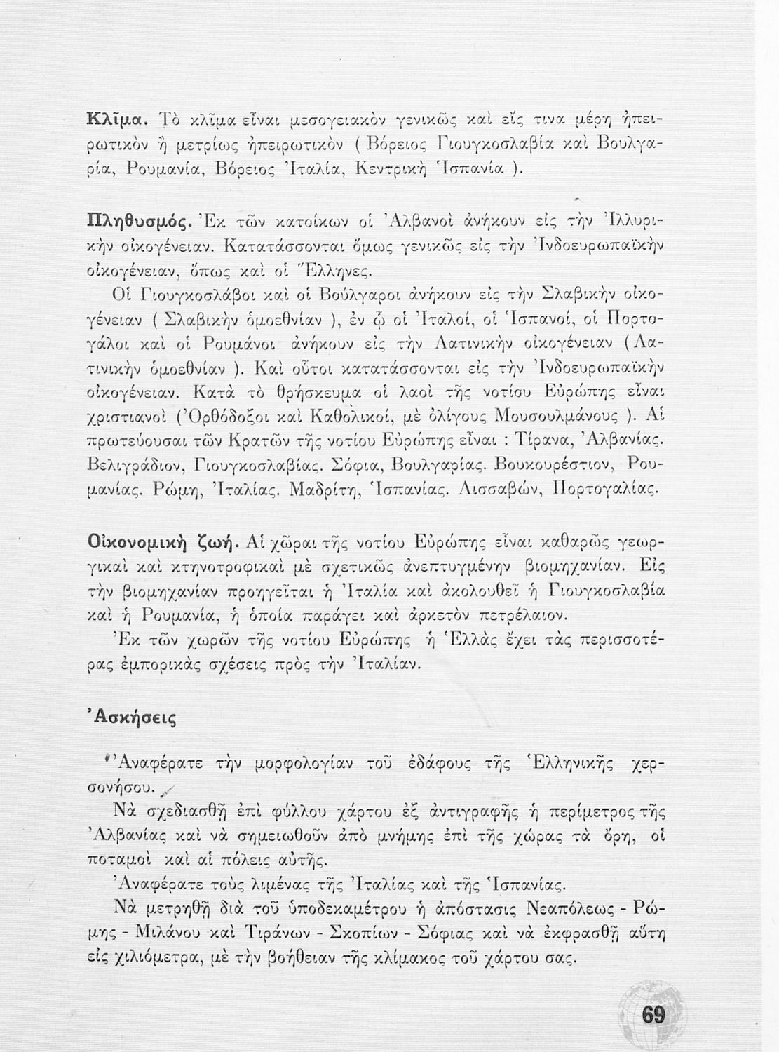 Σχολικό Εγχειρίδιο Γεωγραφίας Γυμνασίου που περιλαμβάνει στοιχεία φυσικής και μαθηματικής γεωγραφίας και εξετάζει χώρες της Ευρώπης από γεωμορφολογική, οικονομική και πολιτική άποψη. Περιέχει και στοιχεία Γεωλογίας.