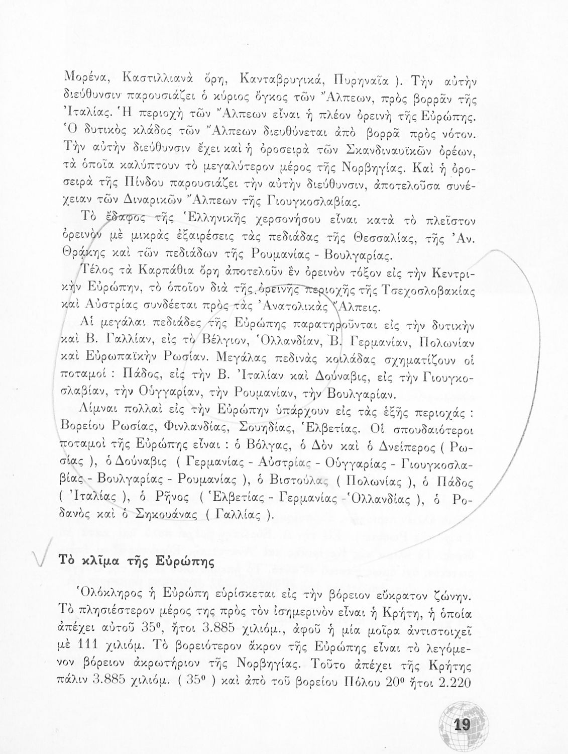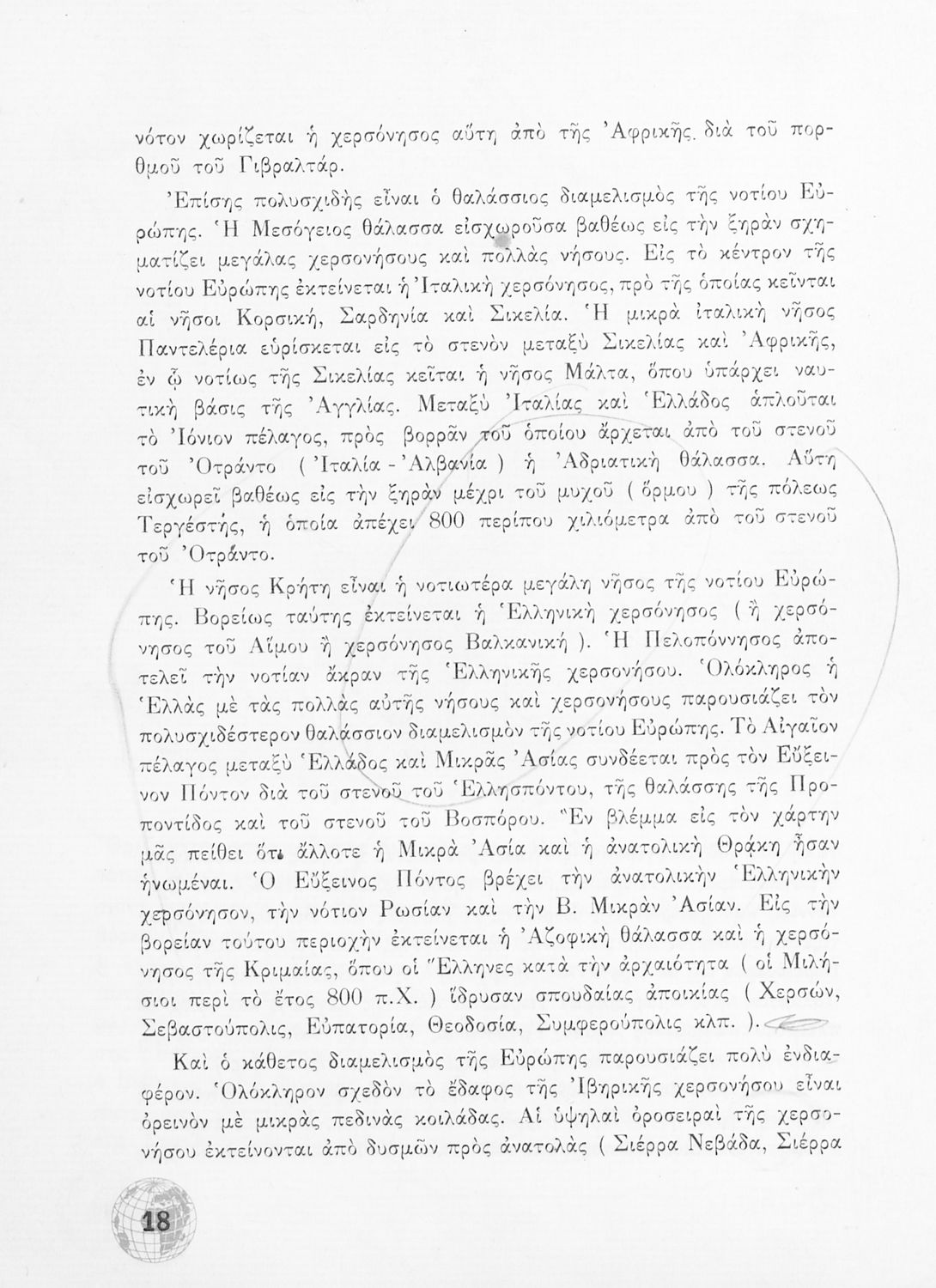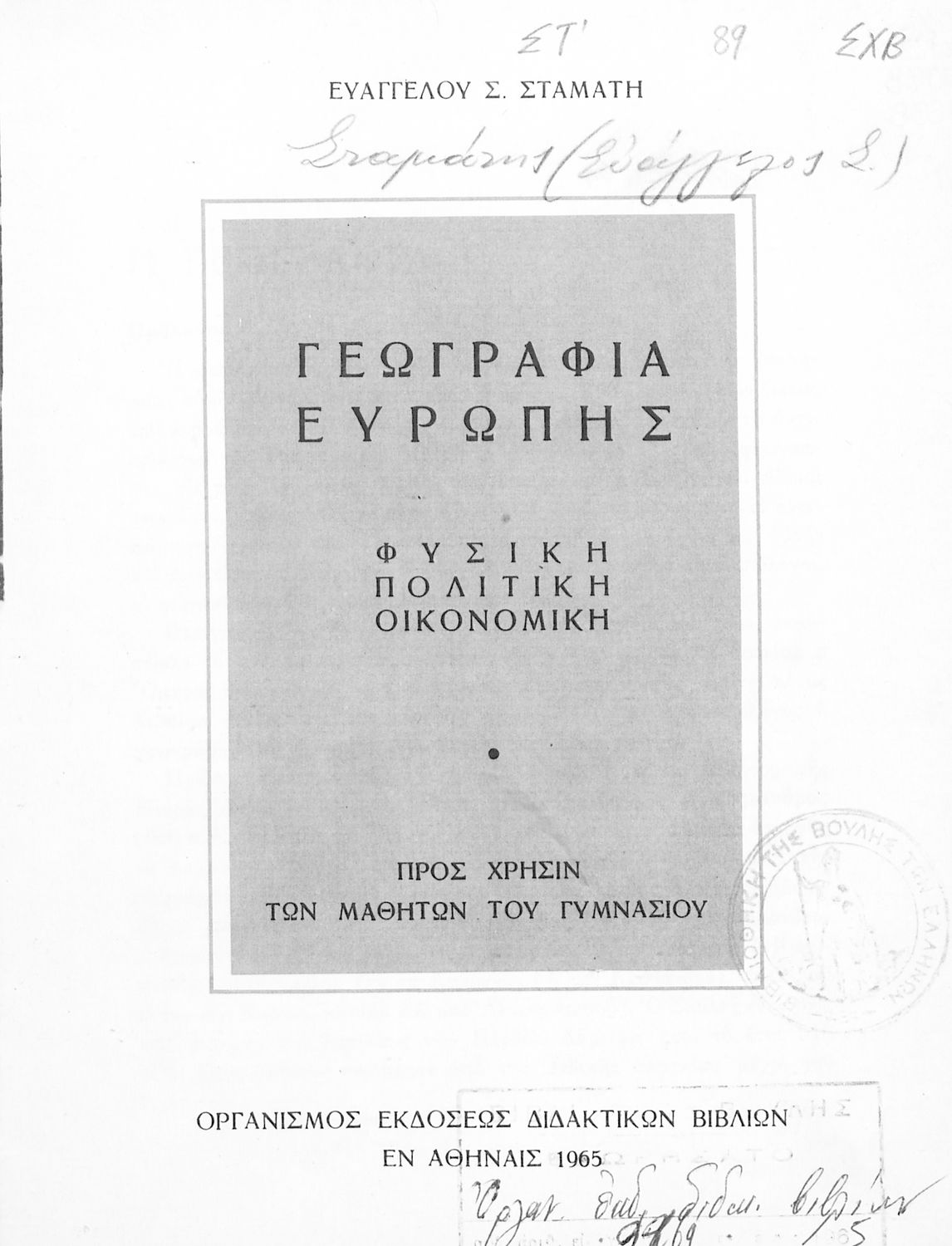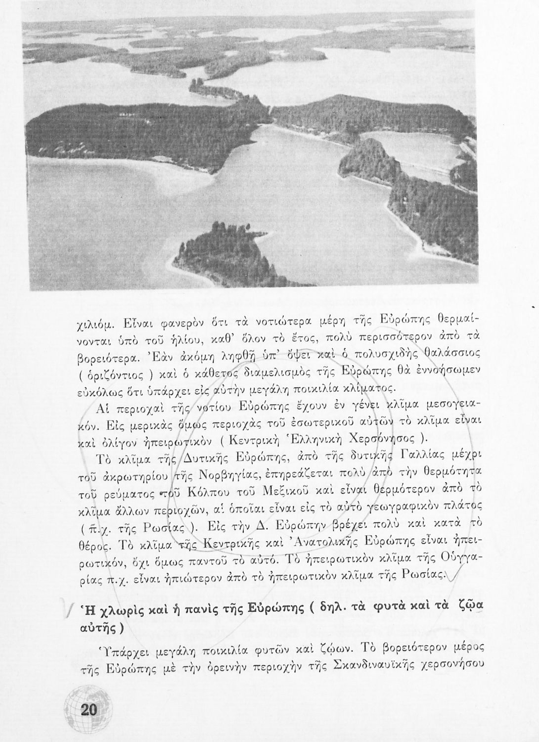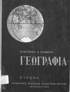 Σχολικό Εγχειρίδιο Γεωγραφίας Γυμνασίου που περιλαμβάνει στοιχεία φυσικής και μαθηματικής γεωγραφίας και εξετάζει χώρες της Ευρώπης από γεωμορφολογική, οικονομική και πολιτική άποψη. Περιέχει και στοιχεία Γεωλογίας.