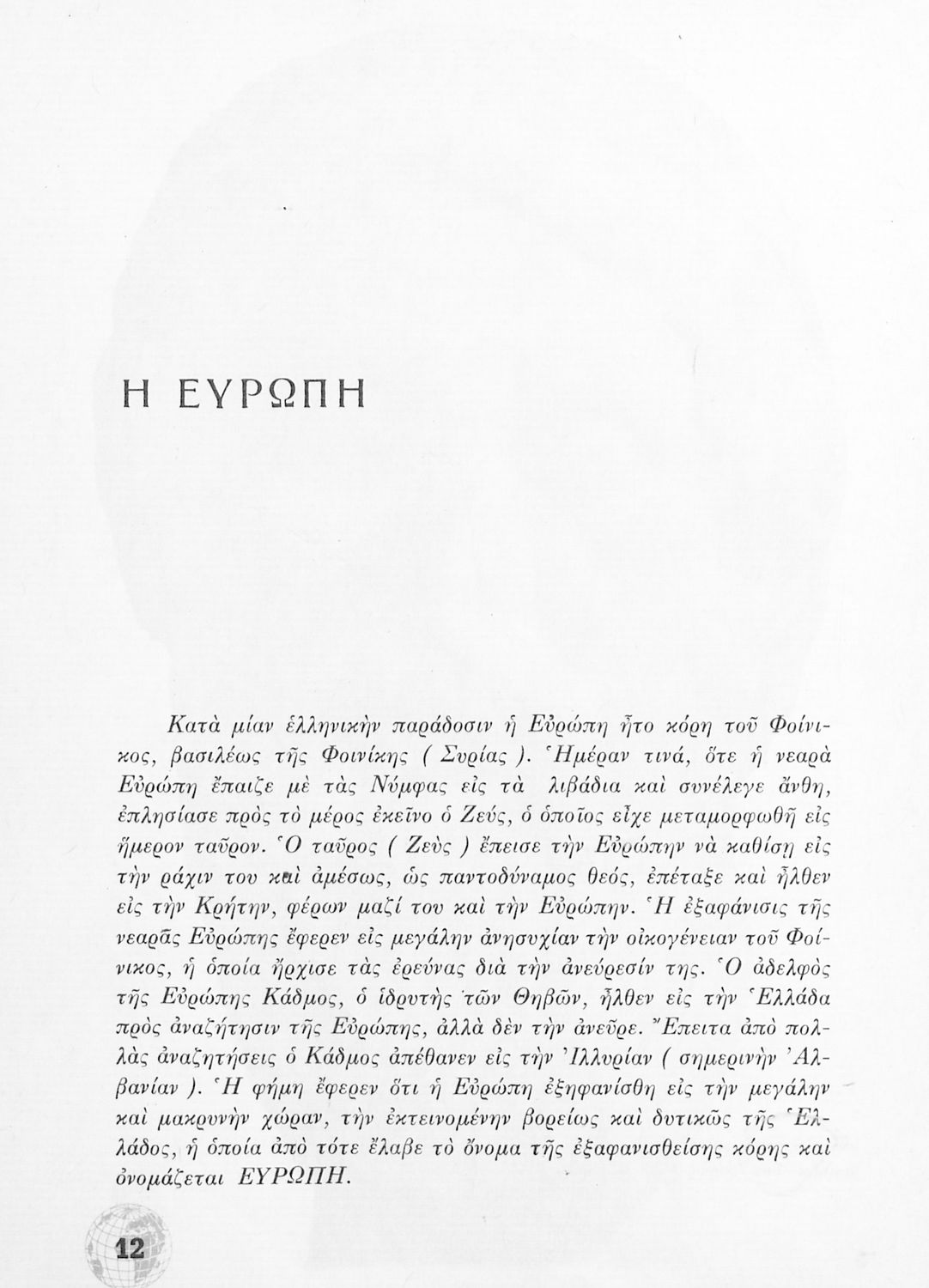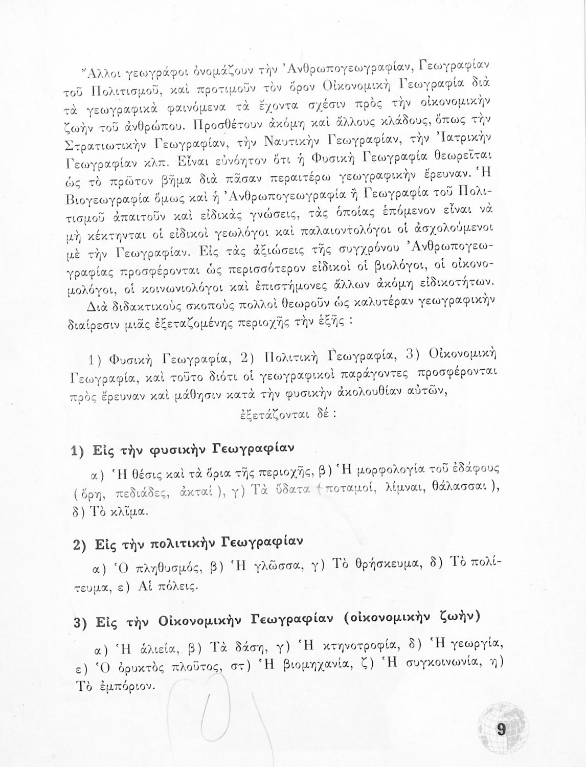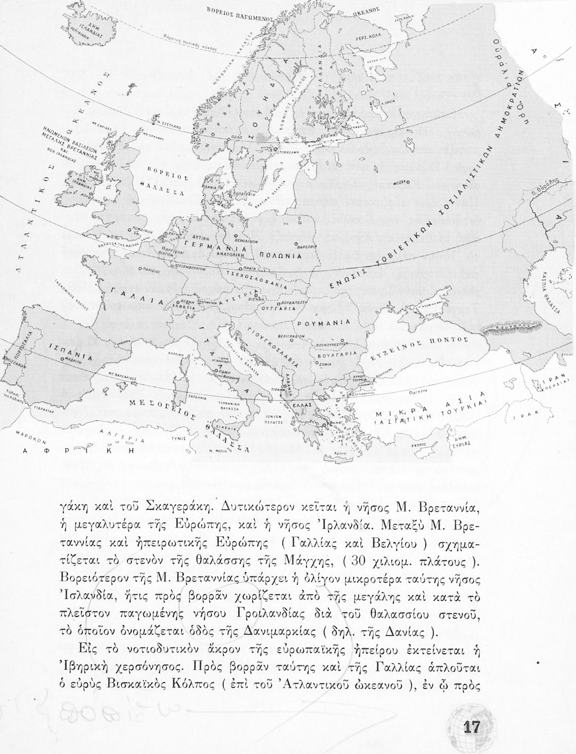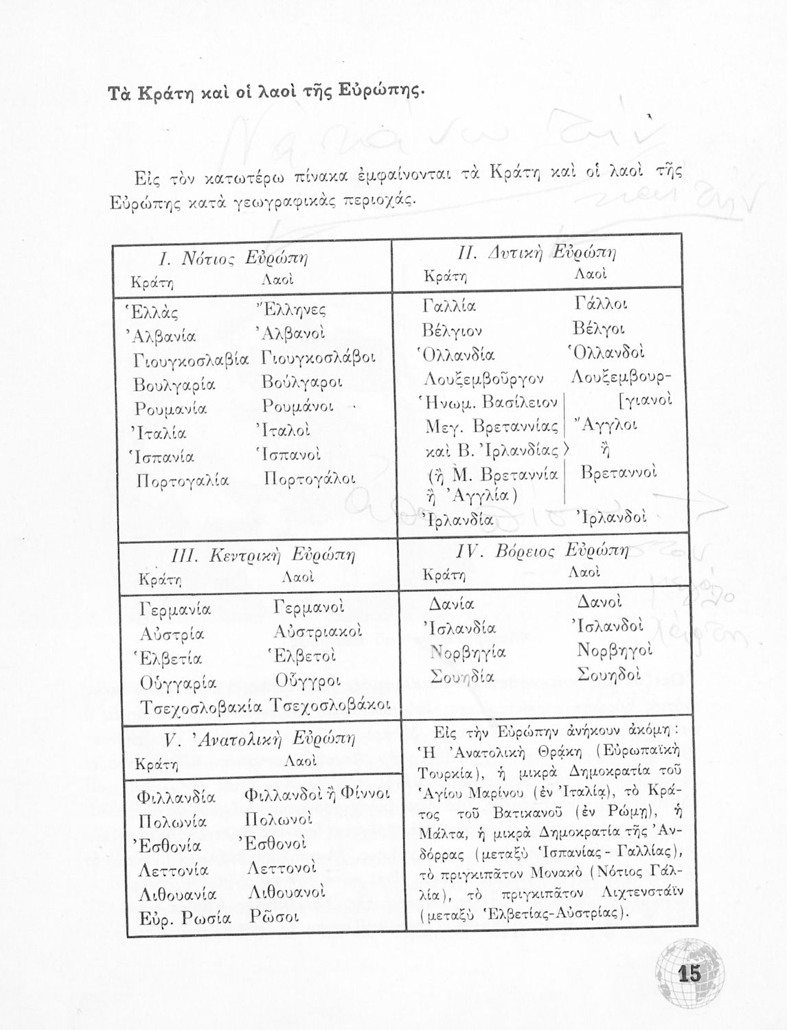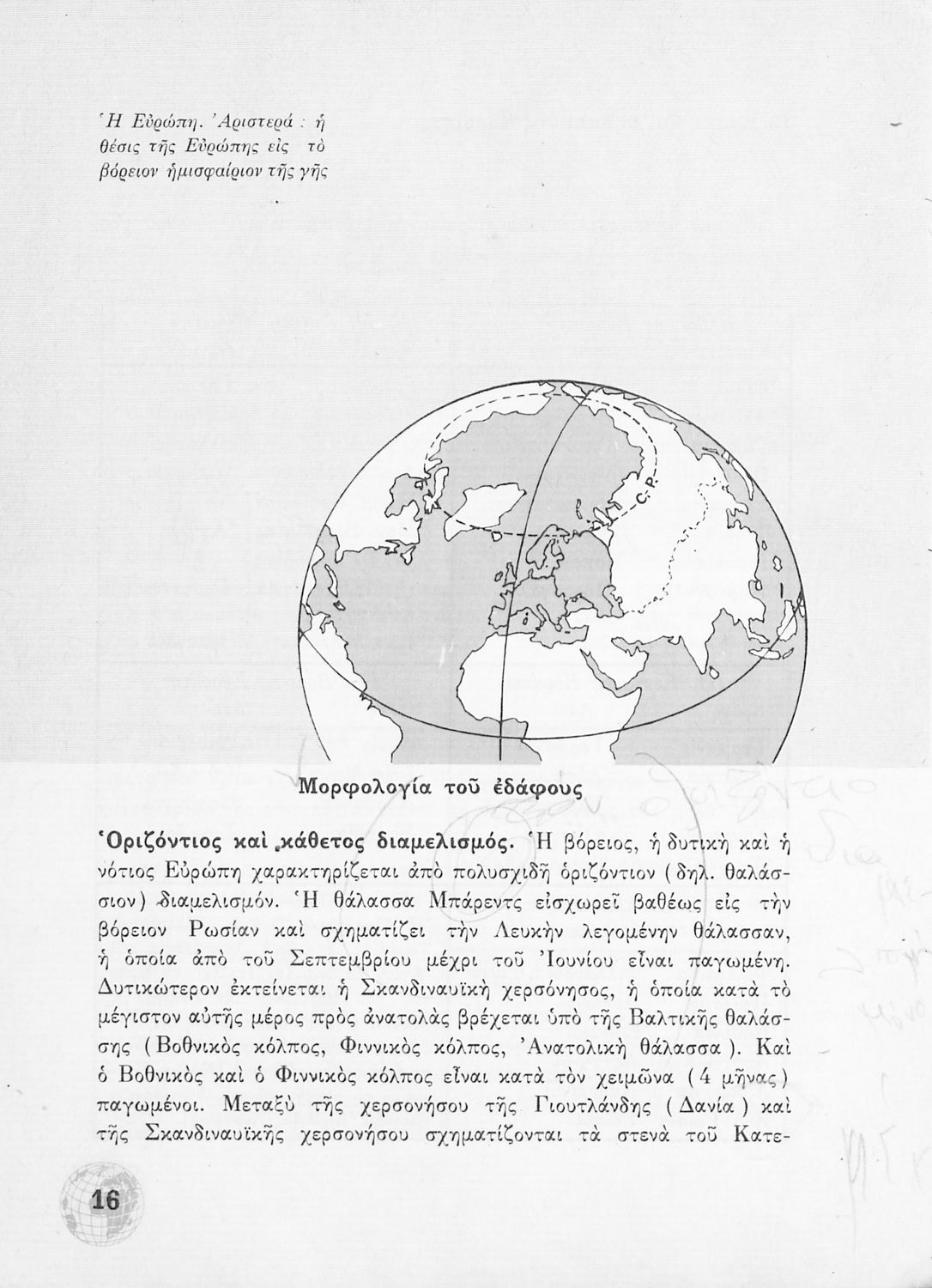 Σχολικό Εγχειρίδιο Γεωγραφίας Γυμνασίου που περιλαμβάνει στοιχεία φυσικής και μαθηματικής γεωγραφίας και εξετάζει χώρες της Ευρώπης από γεωμορφολογική, οικονομική και πολιτική άποψη. Περιέχει και στοιχεία Γεωλογίας.