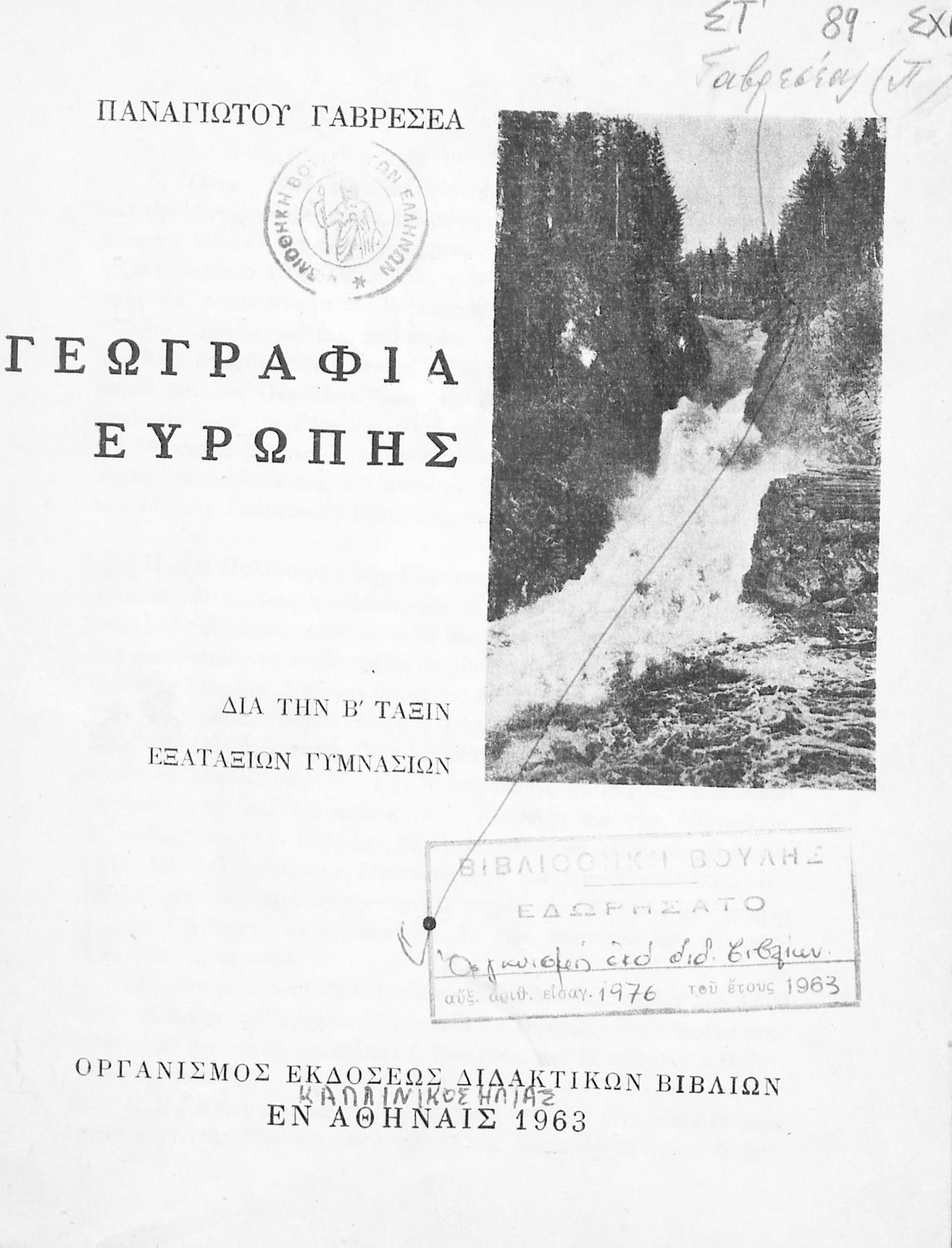 Τίτλος: Γεωγραφία Ευρώπης δια την Β ́ τάξιν Εξαταξίων Γυμνασίων