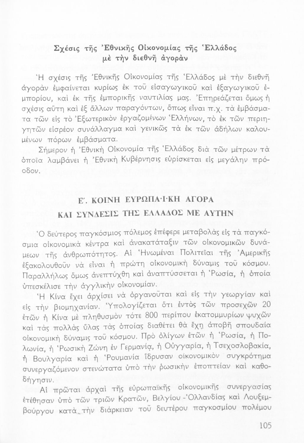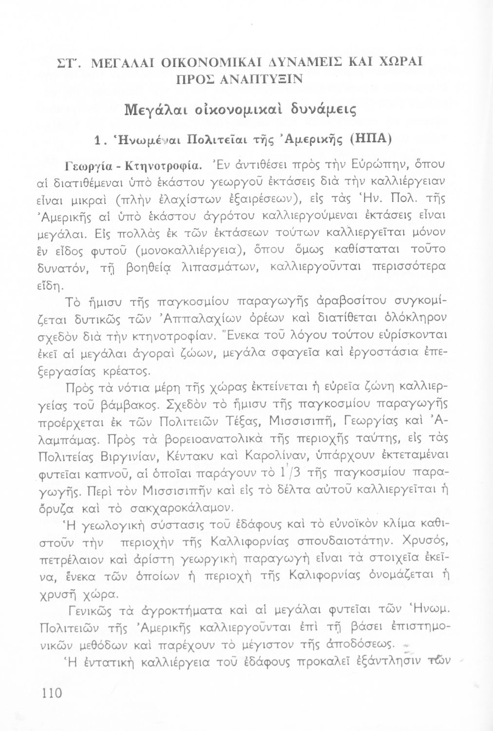 Σχολικό εγχειρίδιο Γεωγραφίας Ε' Γυμνασίου που περιλαμβάνει εισαγωγή στην ανθρωπογεωγραφία και εστιάζει στην οικονομική παραγωγή της Ελλάδας και τη σχέση της με την ΕΟΚ. Περιέχει ειδική αναφορά στα "οικονομικά και κοινωνικά επιτεύγματα της Εθνικής Κυβερνήσεως". Φέρει το σύμβολο της δικτατορίας.