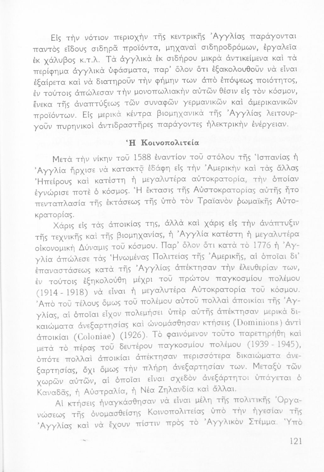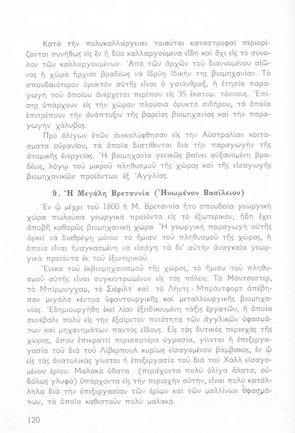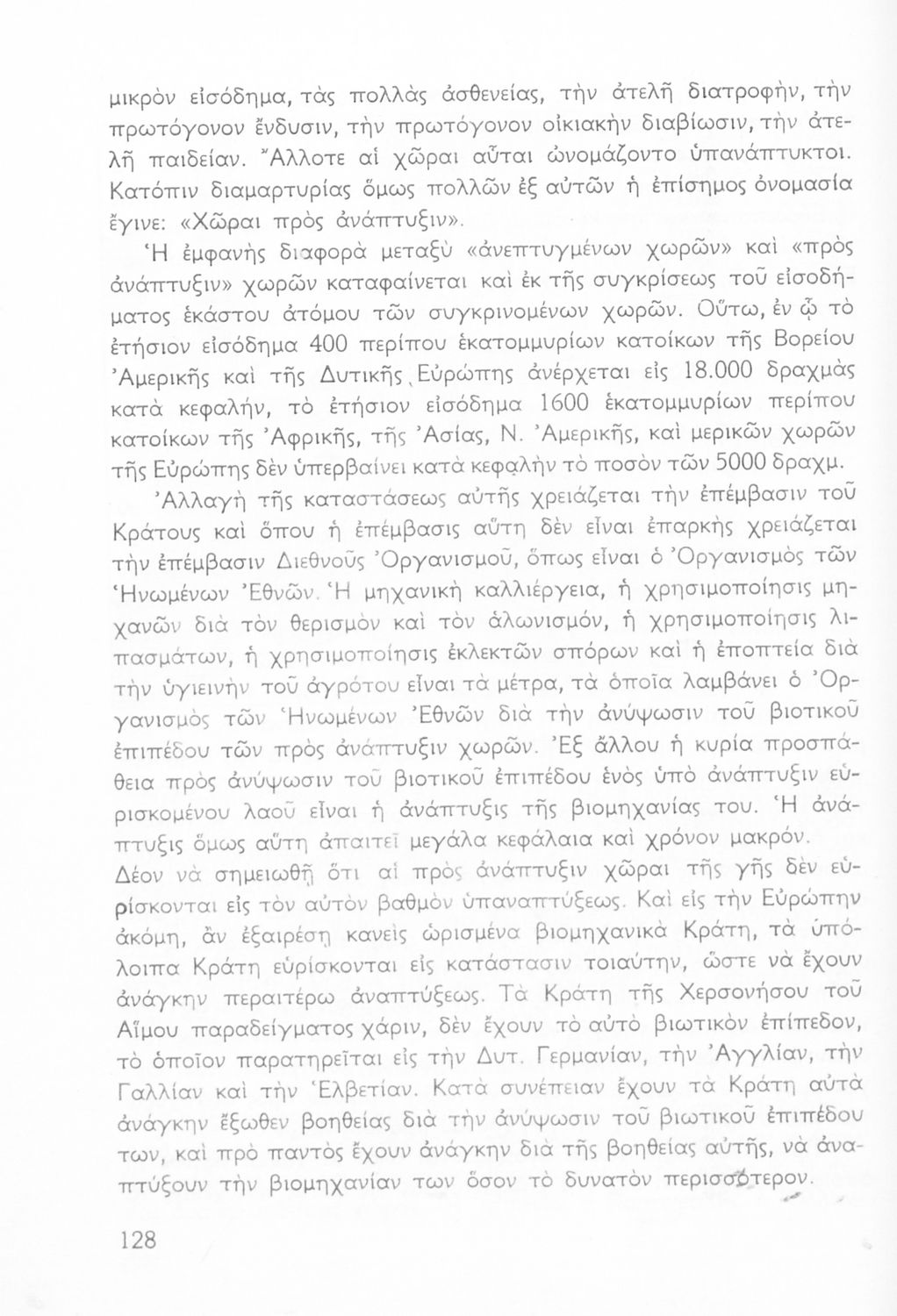 Σχολικό εγχειρίδιο Γεωγραφίας Ε' Γυμνασίου που περιλαμβάνει εισαγωγή στην ανθρωπογεωγραφία και εστιάζει στην οικονομική παραγωγή της Ελλάδας και τη σχέση της με την ΕΟΚ. Περιέχει ειδική αναφορά στα "οικονομικά και κοινωνικά επιτεύγματα της Εθνικής Κυβερνήσεως". Φέρει το σύμβολο της δικτατορίας.
