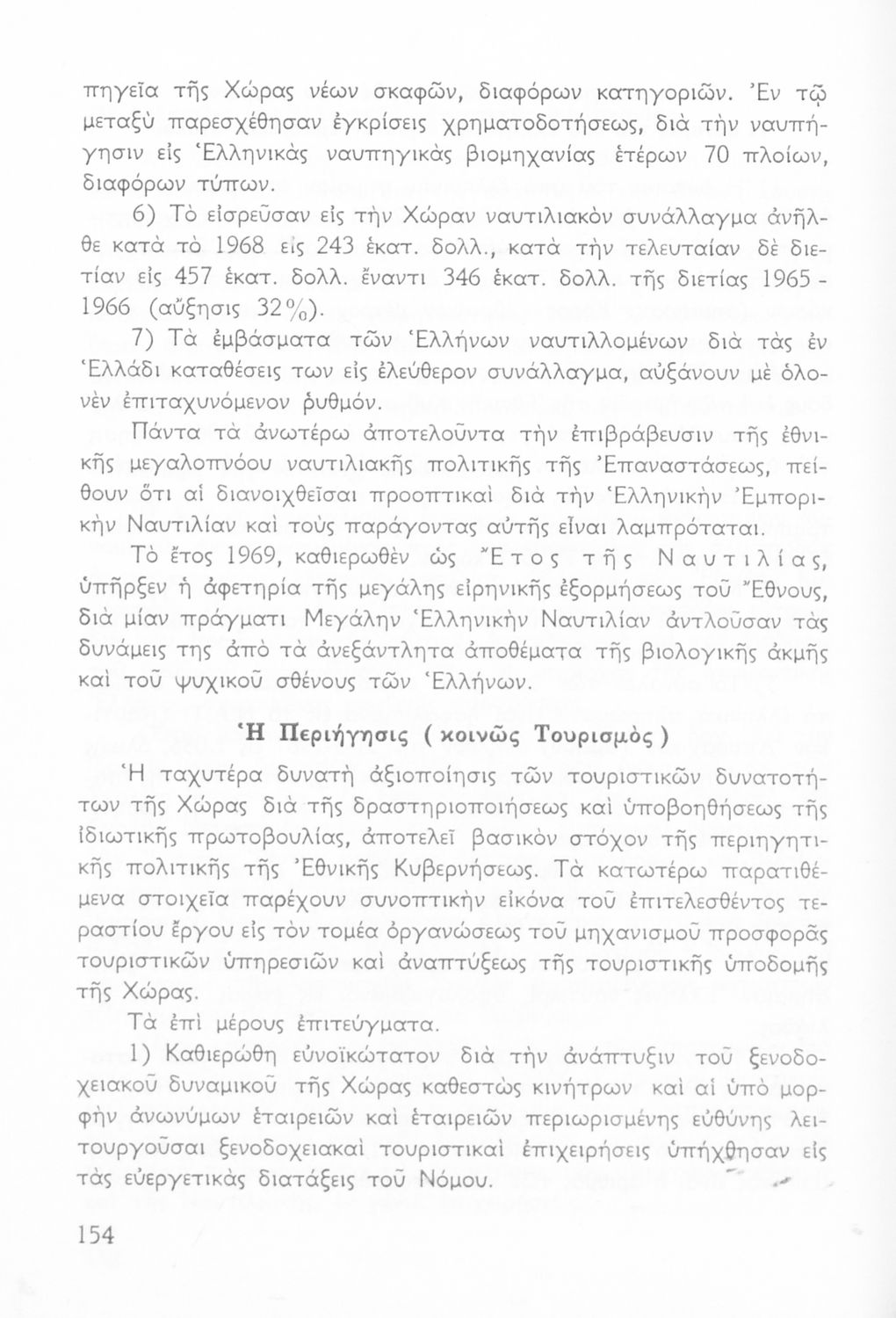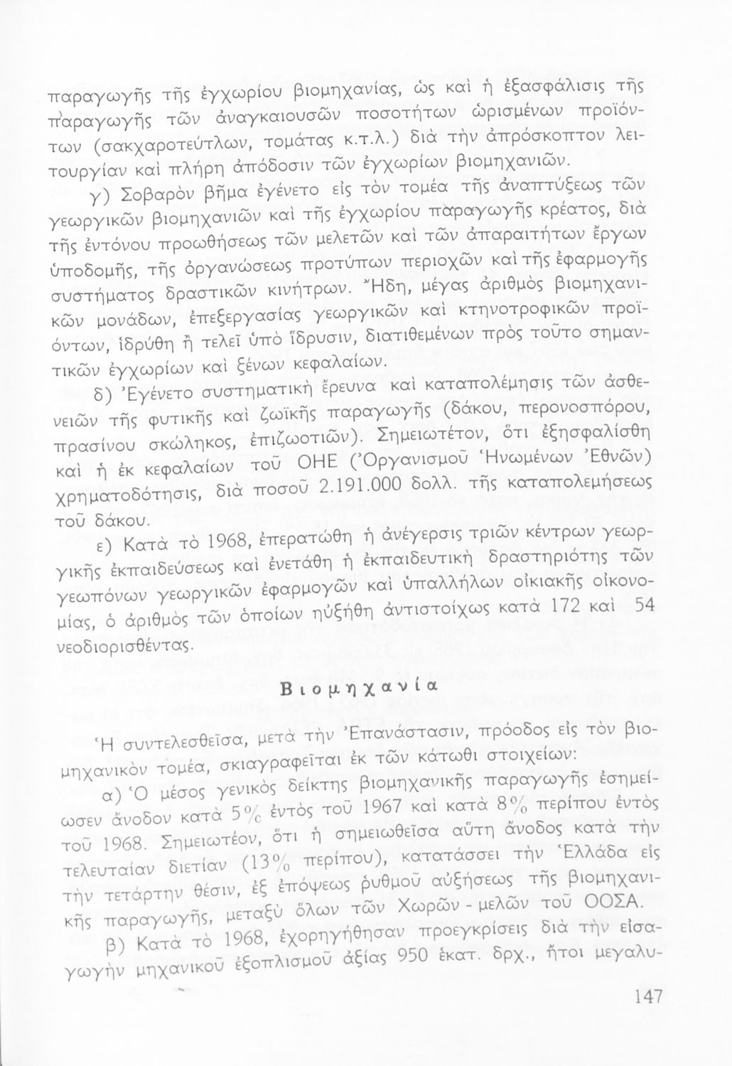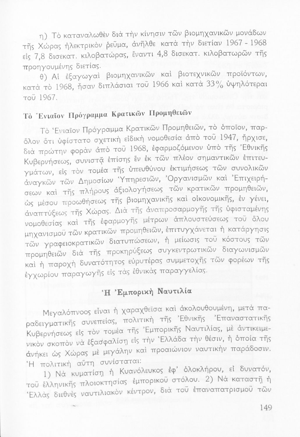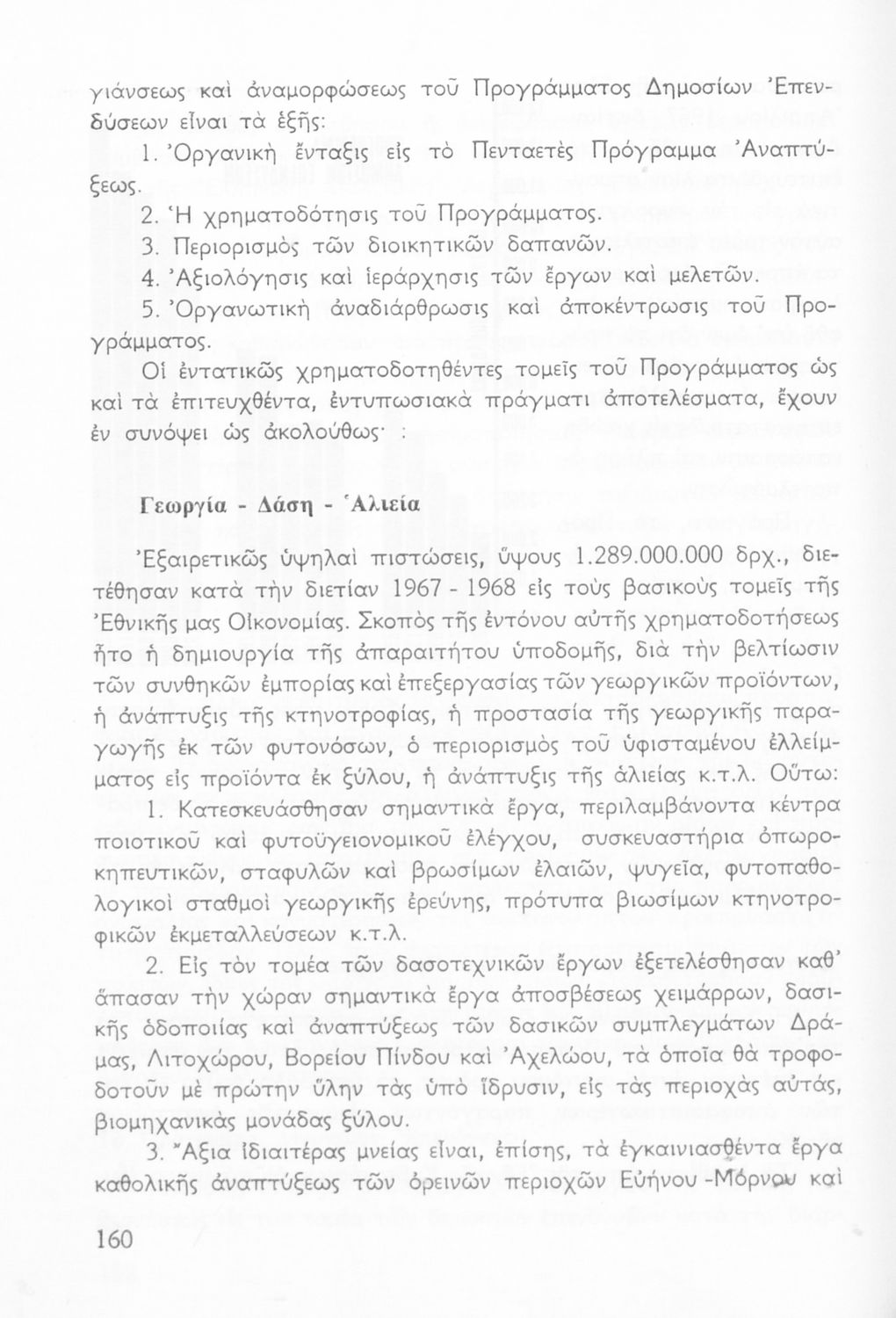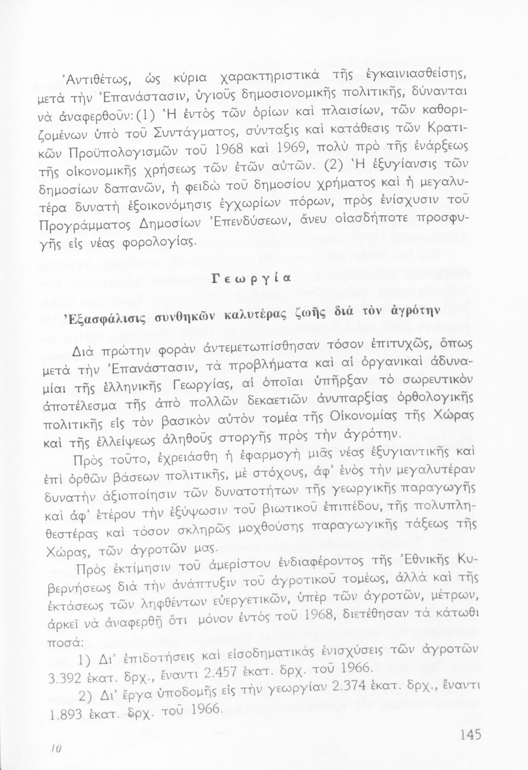 Σχολικό εγχειρίδιο Γεωγραφίας Ε' Γυμνασίου που περιλαμβάνει εισαγωγή στην ανθρωπογεωγραφία και εστιάζει στην οικονομική παραγωγή της Ελλάδας και τη σχέση της με την ΕΟΚ. Περιέχει ειδική αναφορά στα "οικονομικά και κοινωνικά επιτεύγματα της Εθνικής Κυβερνήσεως". Φέρει το σύμβολο της δικτατορίας.