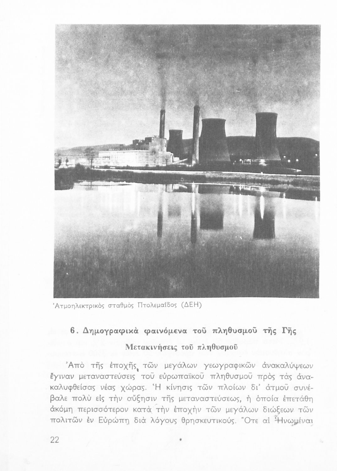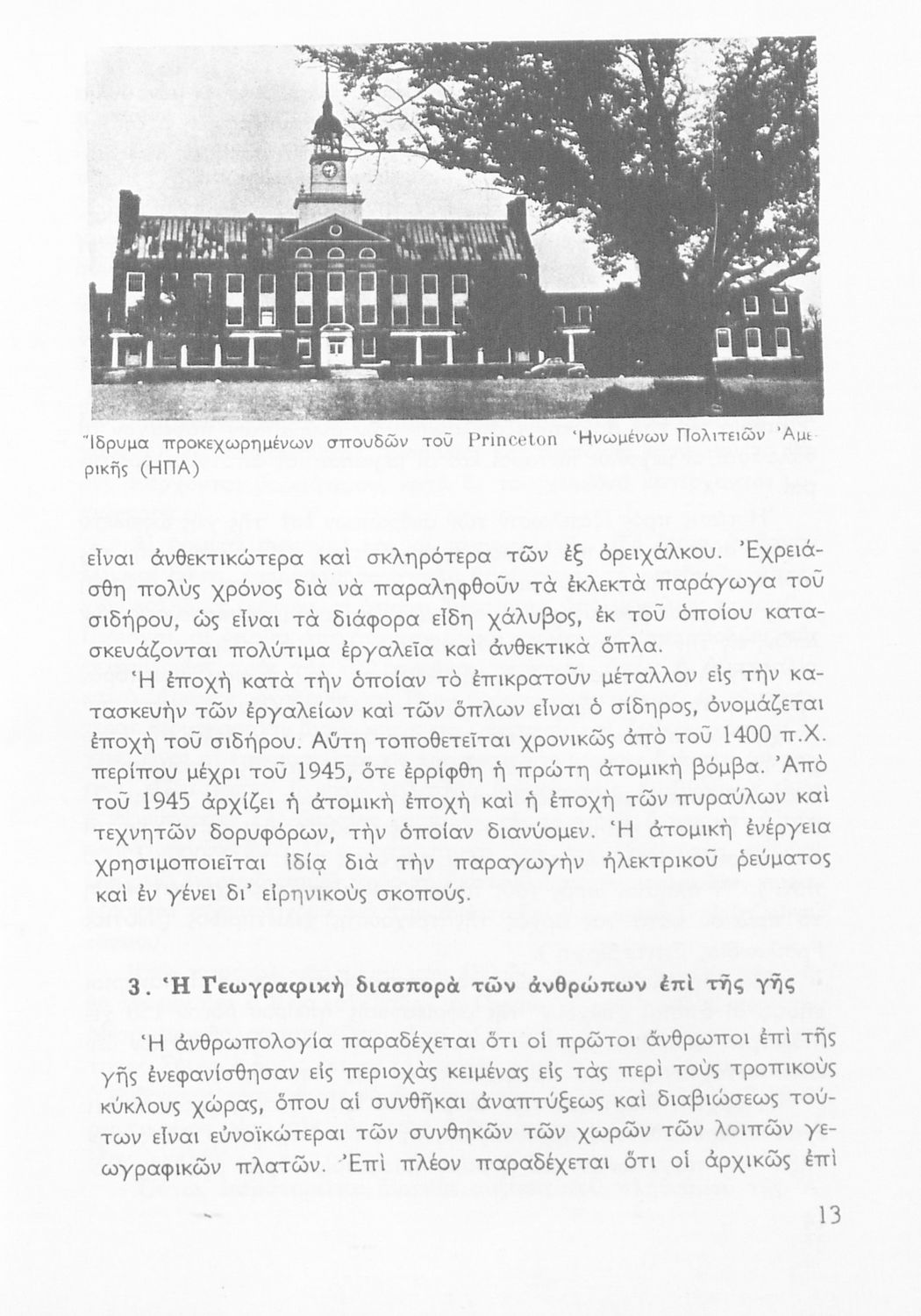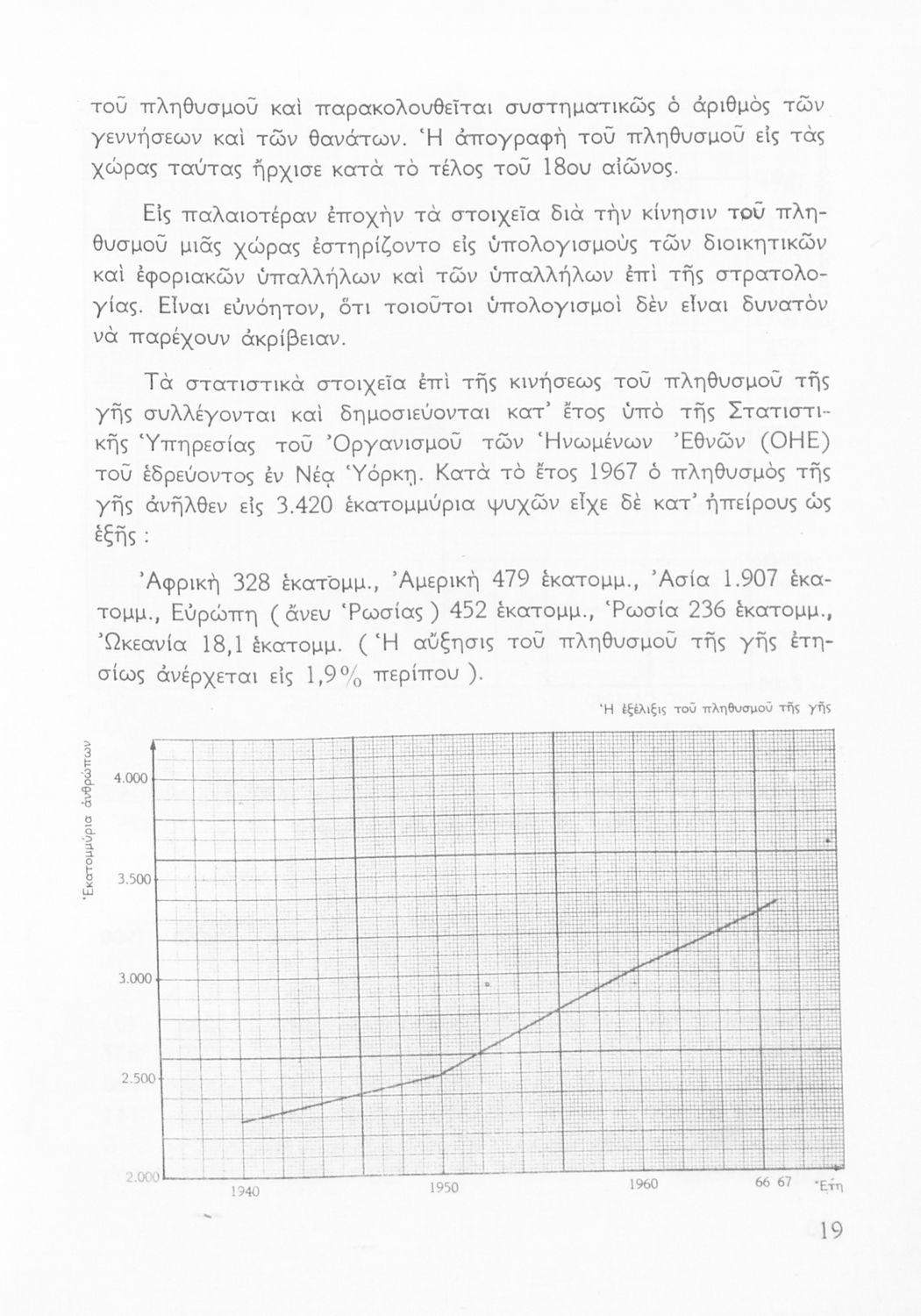 Σχολικό εγχειρίδιο Γεωγραφίας Ε' Γυμνασίου που περιλαμβάνει εισαγωγή στην ανθρωπογεωγραφία και εστιάζει στην οικονομική παραγωγή της Ελλάδας και τη σχέση της με την ΕΟΚ. Περιέχει ειδική αναφορά στα "οικονομικά και κοινωνικά επιτεύγματα της Εθνικής Κυβερνήσεως". Φέρει το σύμβολο της δικτατορίας.