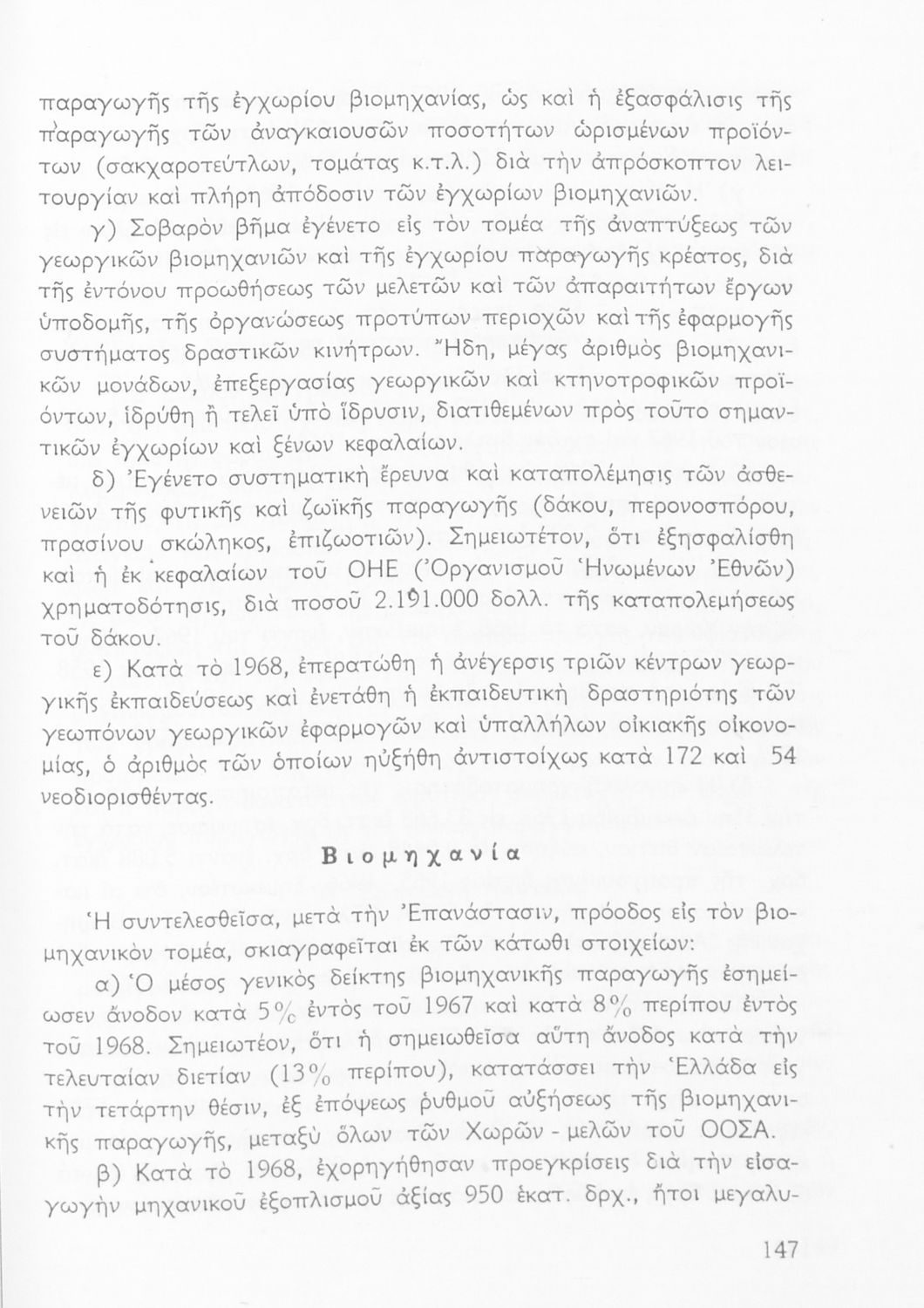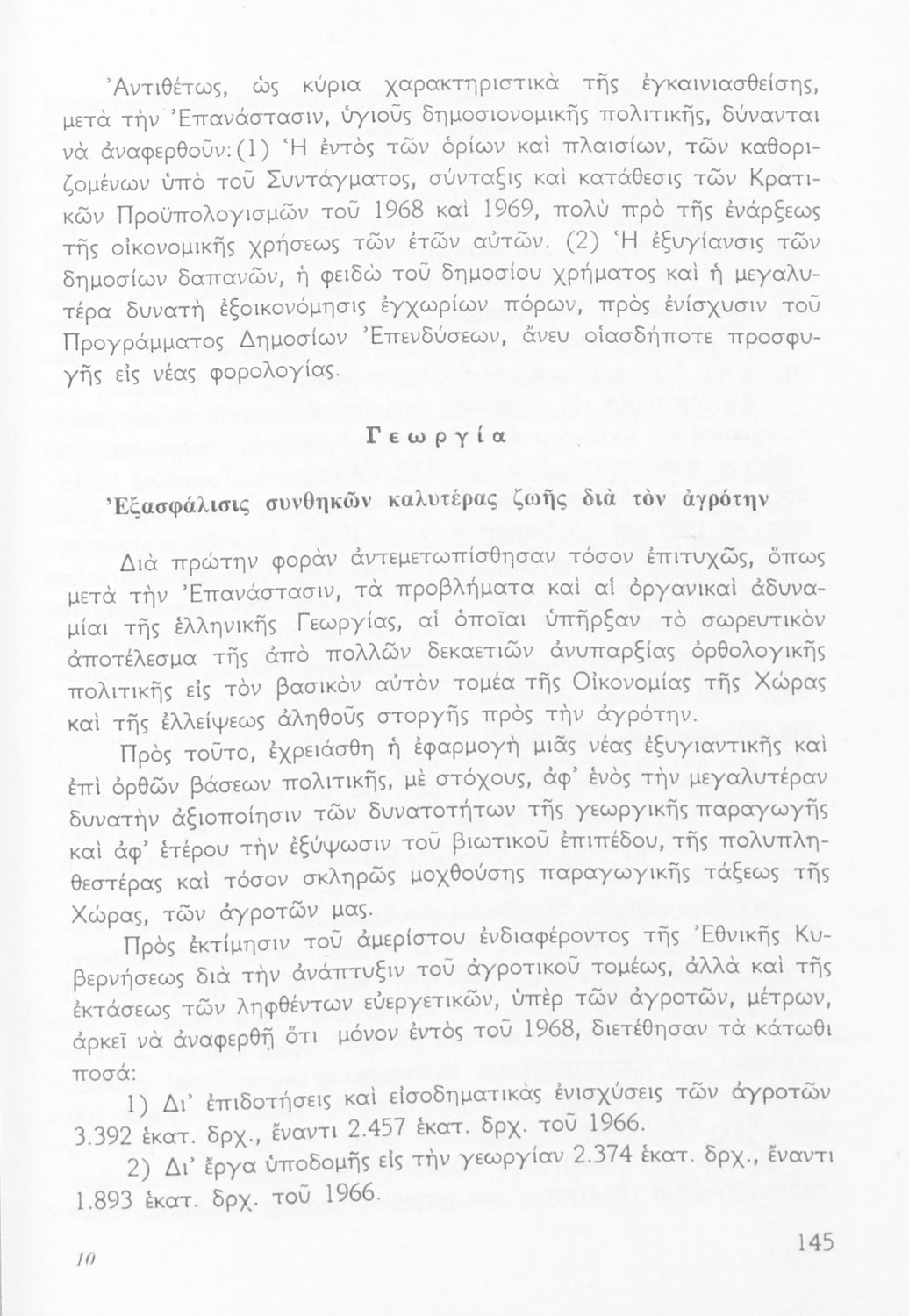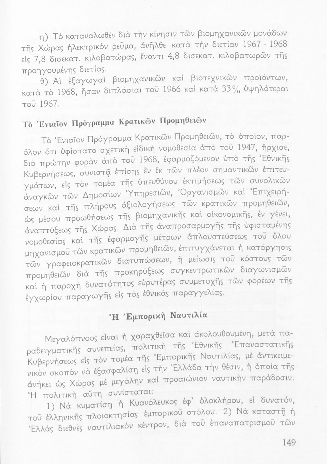 Σχολικό εγχειρίδιο Γεωγραφίας Ε' Γυμνασίου που περιλαμβάνει εισαγωγή στην ανθρωπογεωγραφία και εστιάζει στην οικονομική παραγωγή της Ελλάδας και τη σχέση της με την ΕΟΚ. Περιέχει ειδική αναφορά στα "οικονομικά και κοινωνικά επιτεύγματα της Εθνικής Κυβερνήσεως". Φέρει το σύμβολο της δικτατορίας.