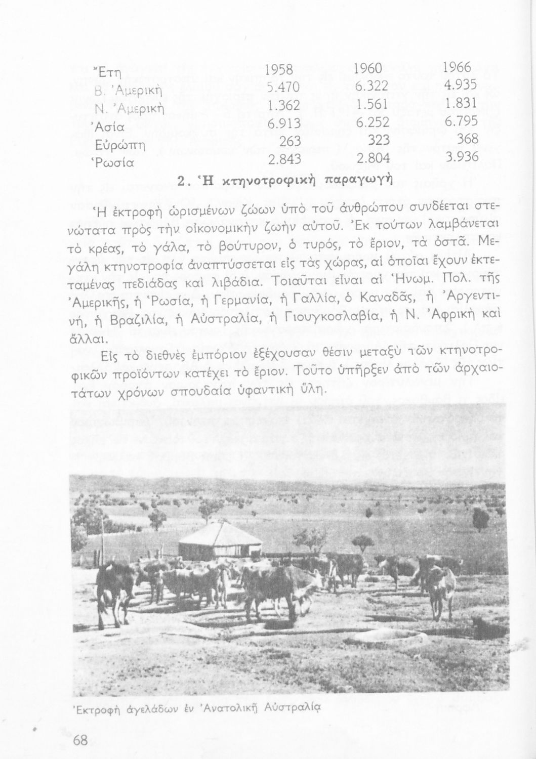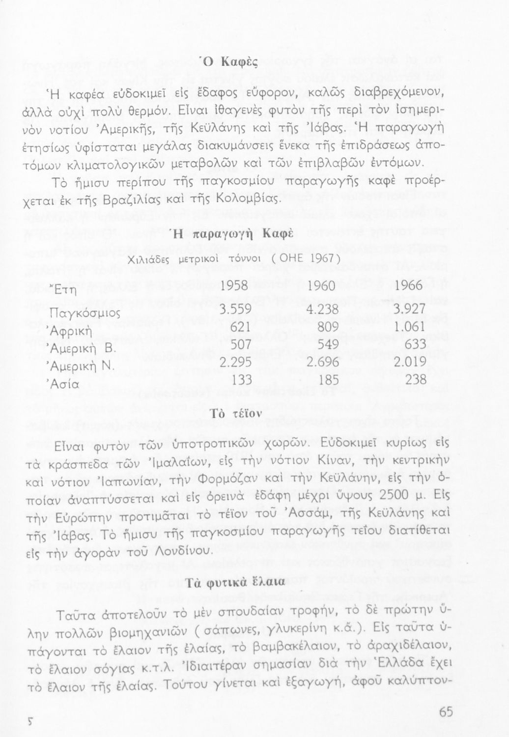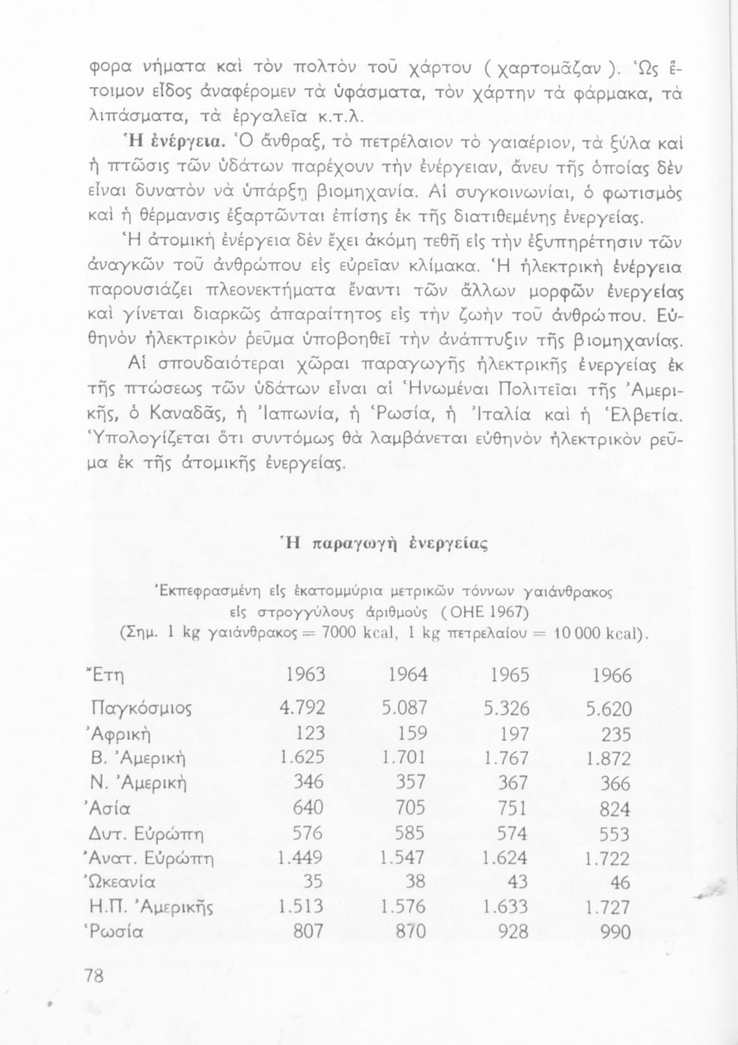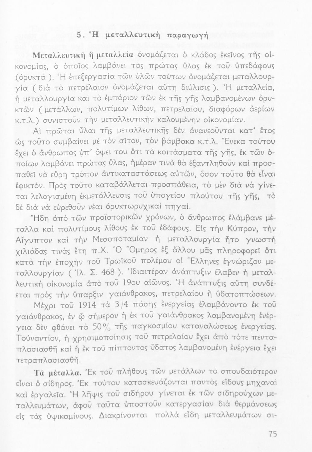 Σχολικό εγχειρίδιο Γεωγραφίας Ε' Γυμνασίου που περιλαμβάνει εισαγωγή στην ανθρωπογεωγραφία και εστιάζει στην οικονομική παραγωγή της Ελλάδας και τη σχέση της με την ΕΟΚ. Περιέχει ειδική αναφορά στα "οικονομικά