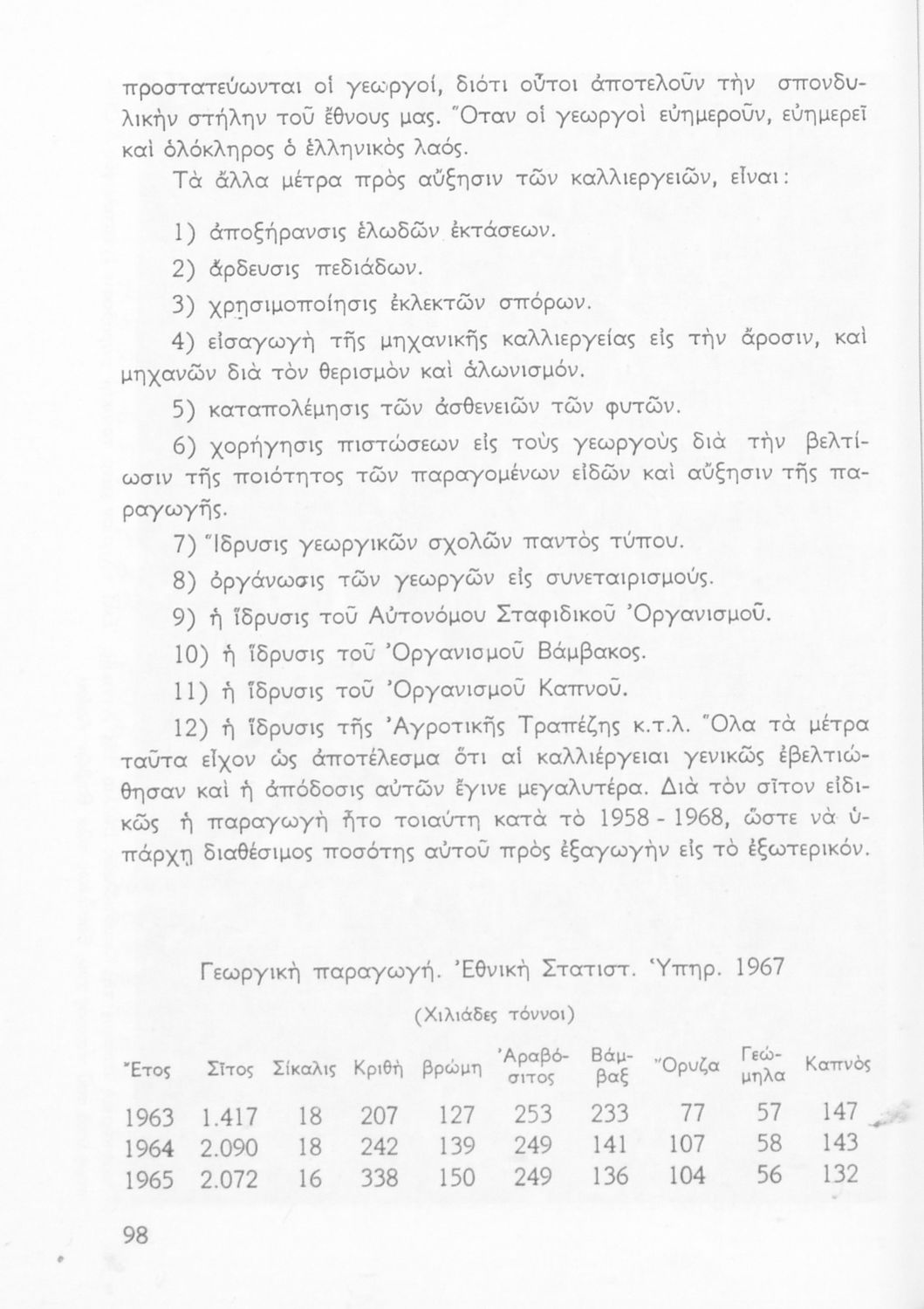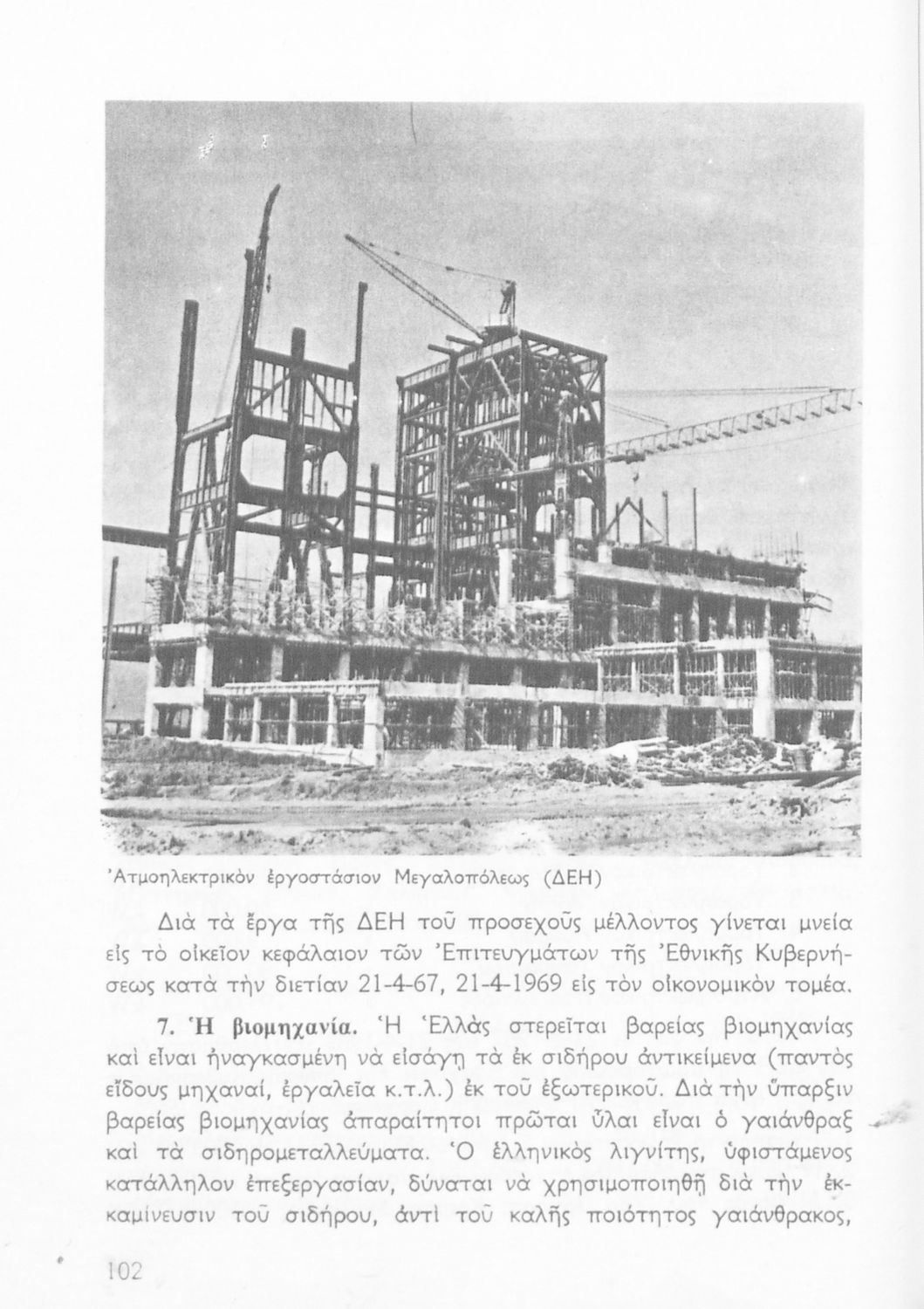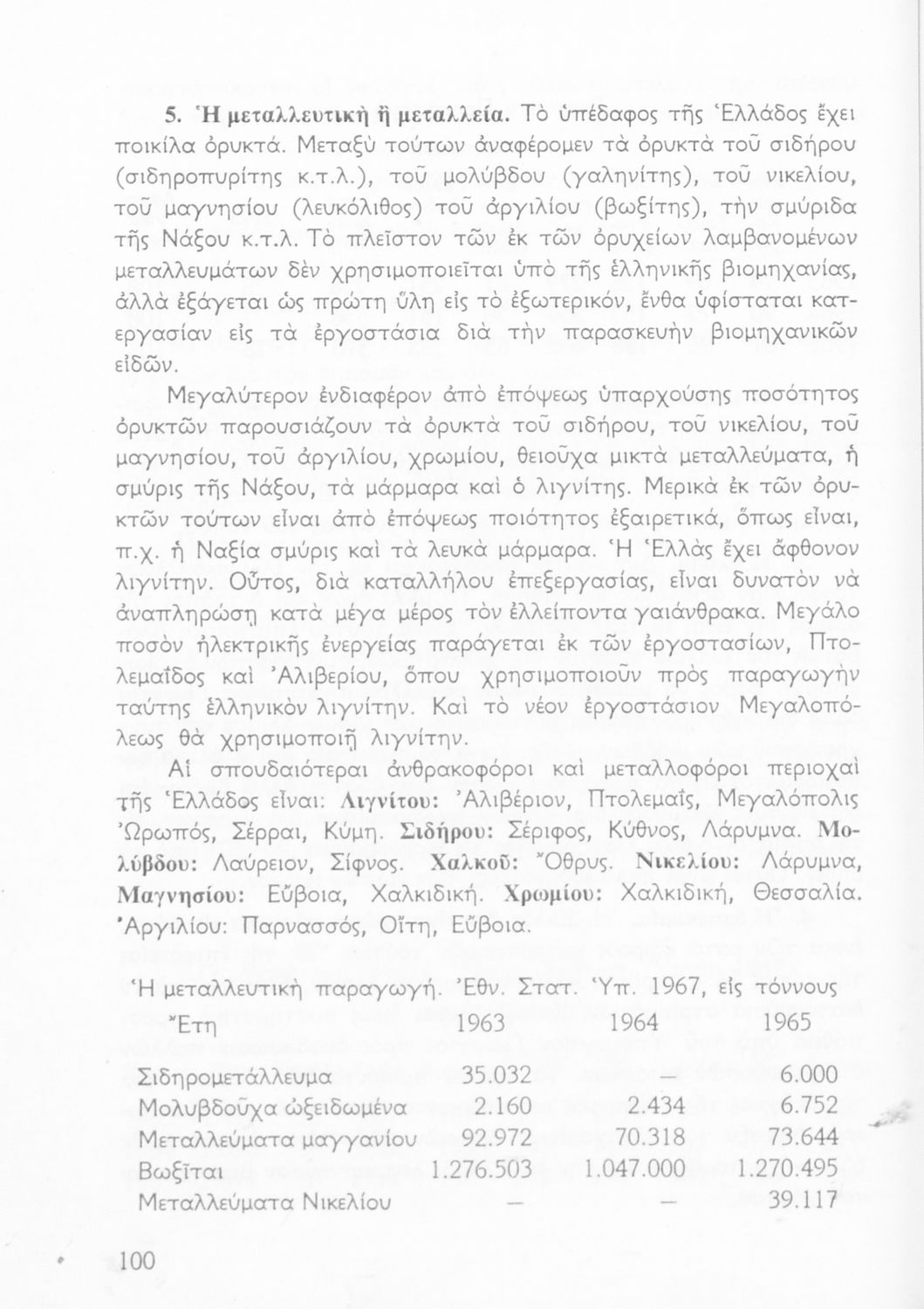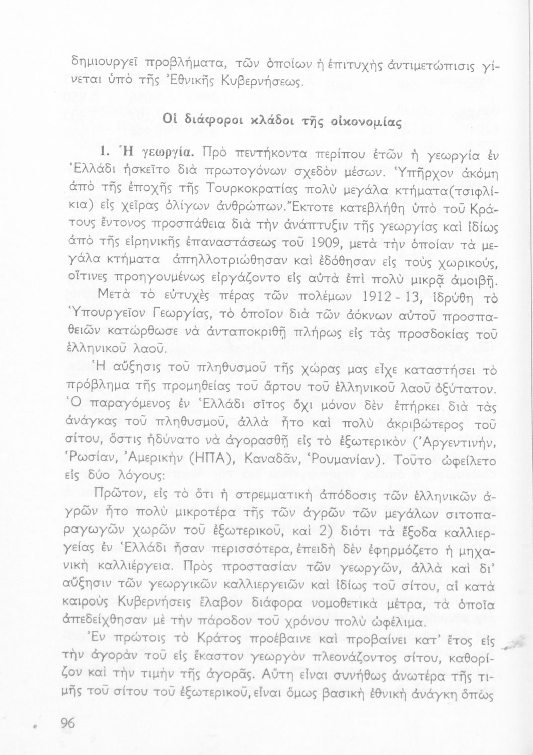 Σχολικό εγχειρίδιο Γεωγραφίας Ε' Γυμνασίου που περιλαμβάνει εισαγωγή στην ανθρωπογεωγραφία και εστιάζει στην οικονομική παραγωγή της Ελλάδας και τη σχέση της με την ΕΟΚ. Περιέχει ειδική αναφορά στα "οικονομικά και κοινωνικά επιτεύγματα της Εθνικής Κυβερνήσεως". Φέρει το σύμβολο της δικτατορίας.
